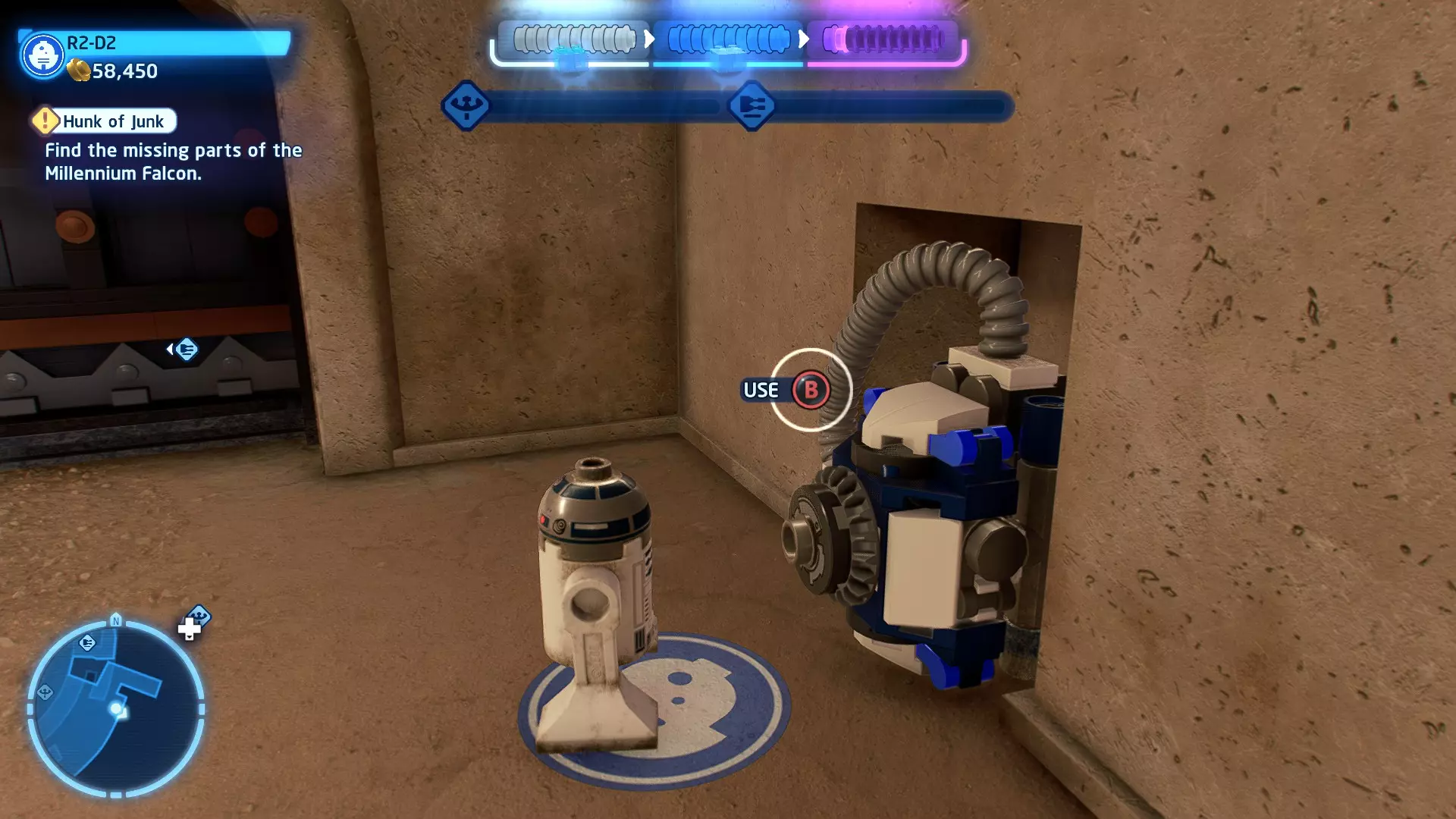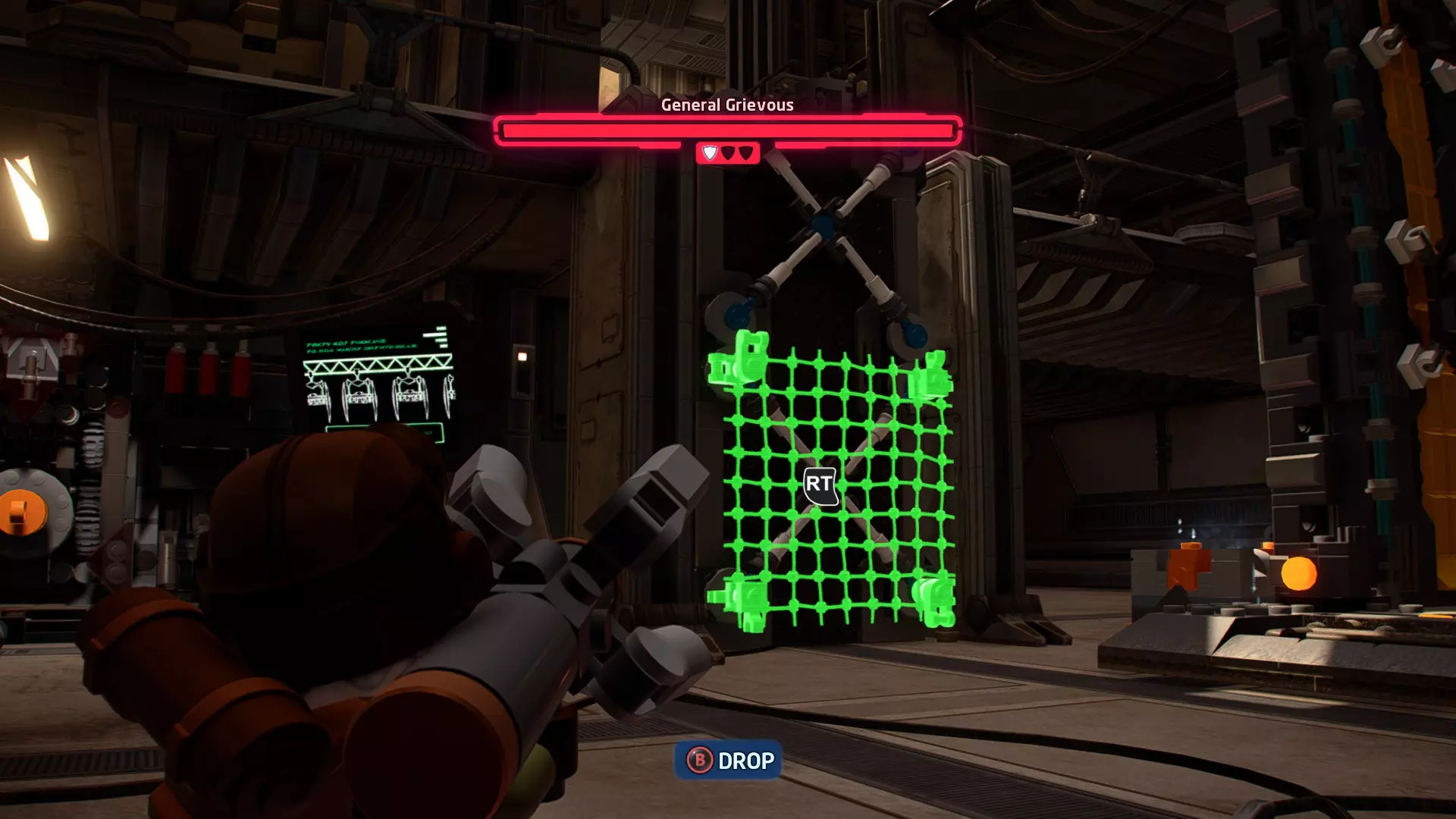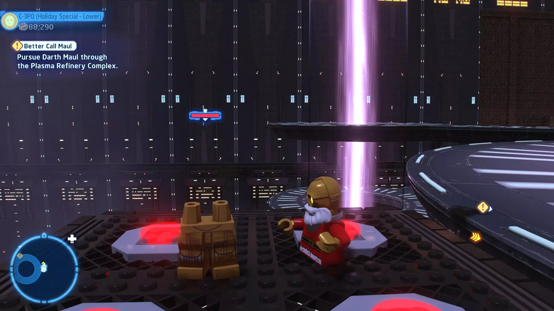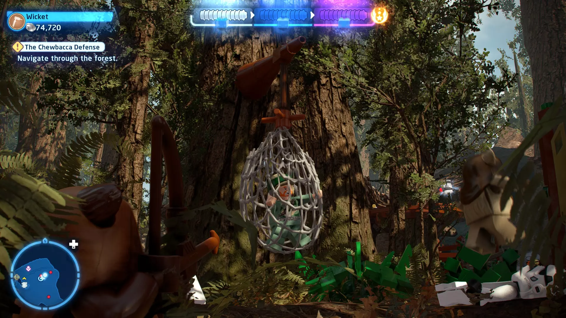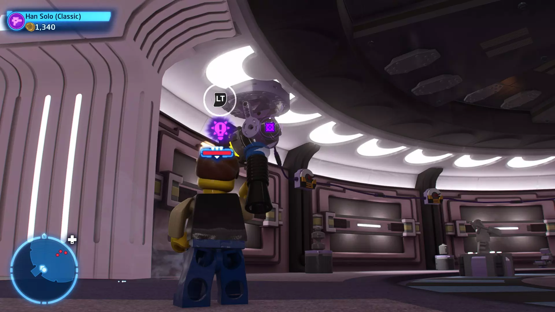 摧毁第一队西斯士兵右侧的黄金发电机,以获得乐高积木。将它们组装成这个迷你套件。 迷你套件3 - 无法束缚我