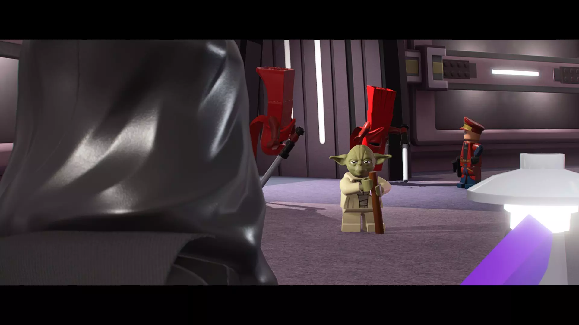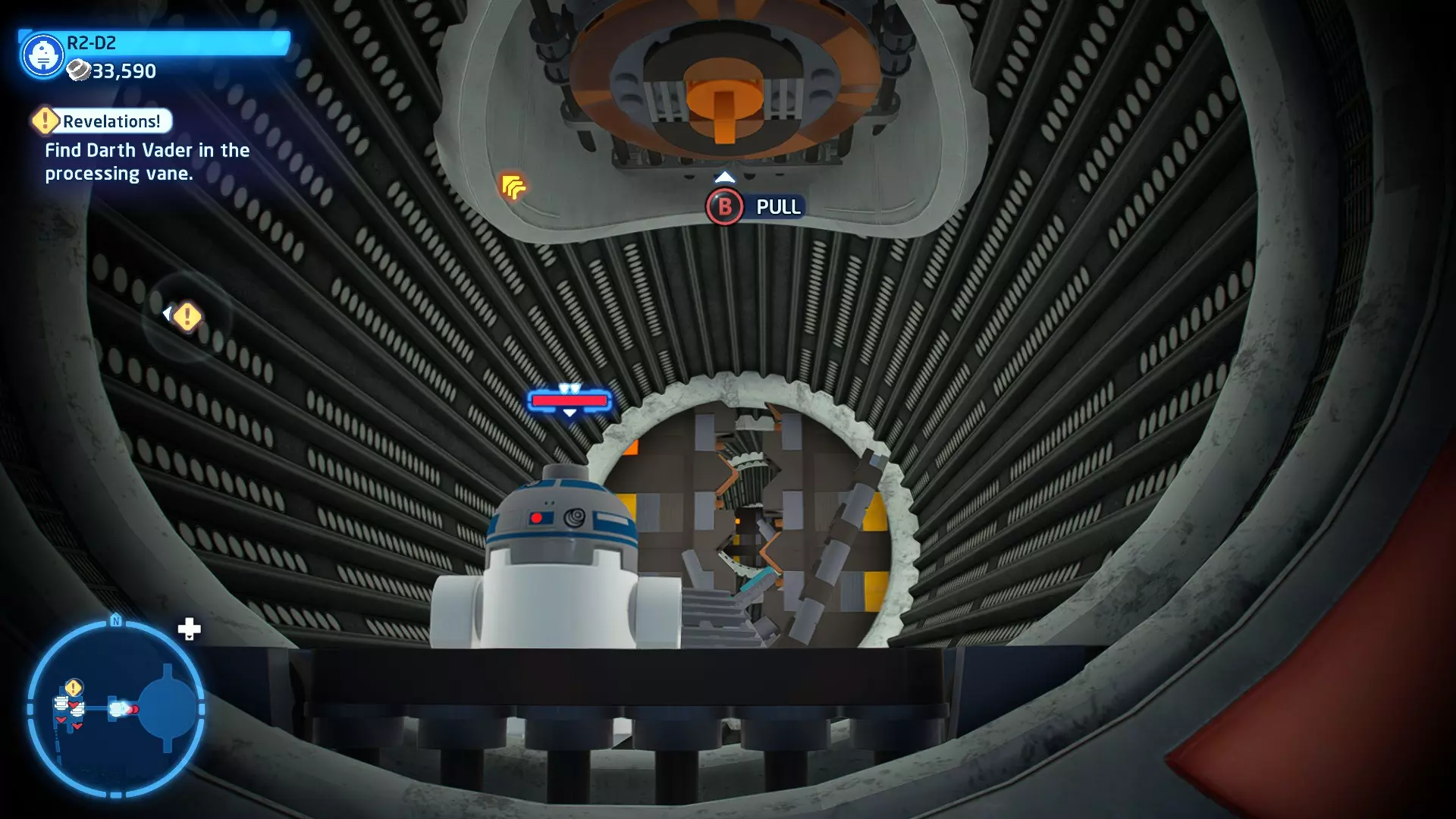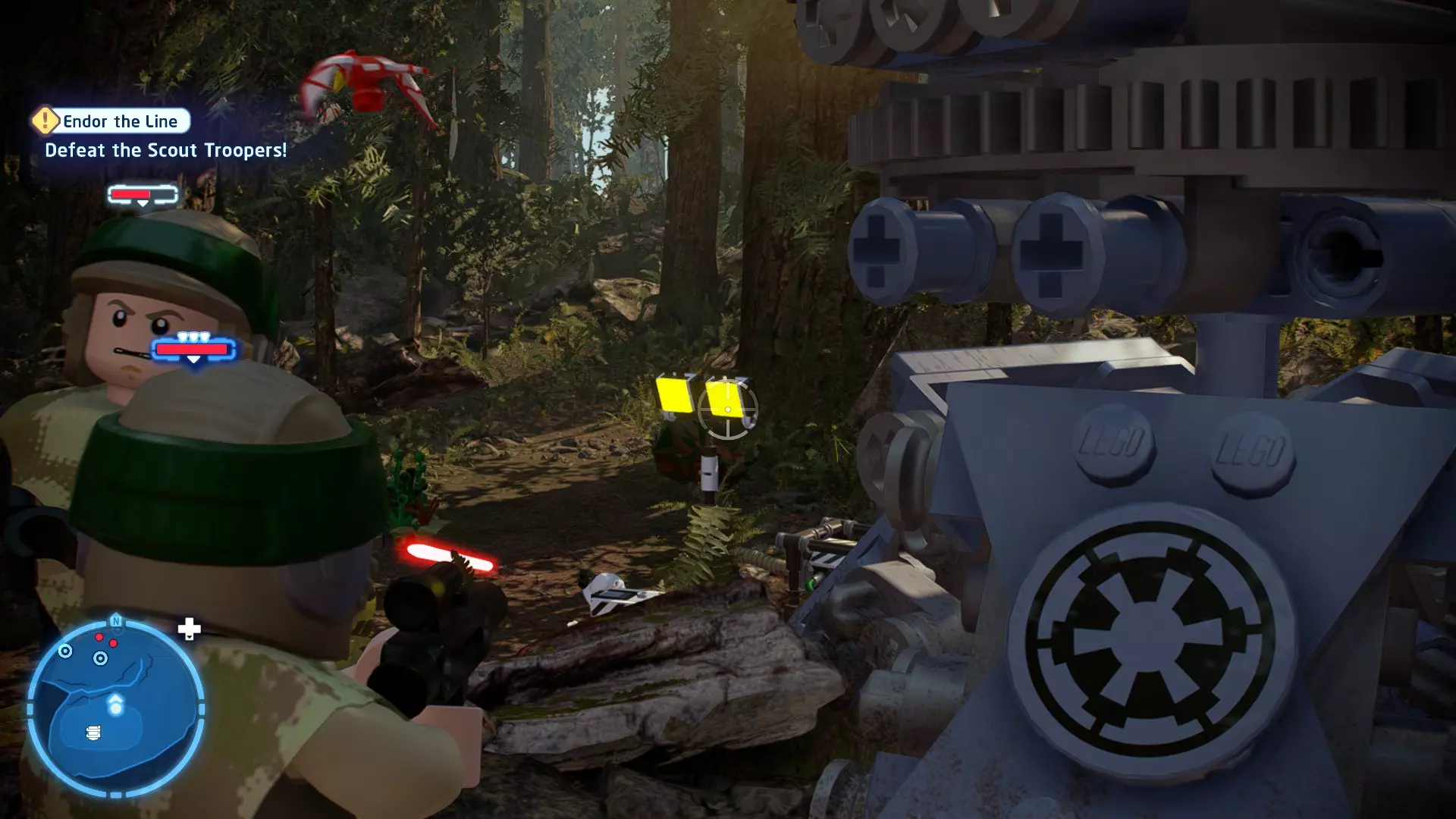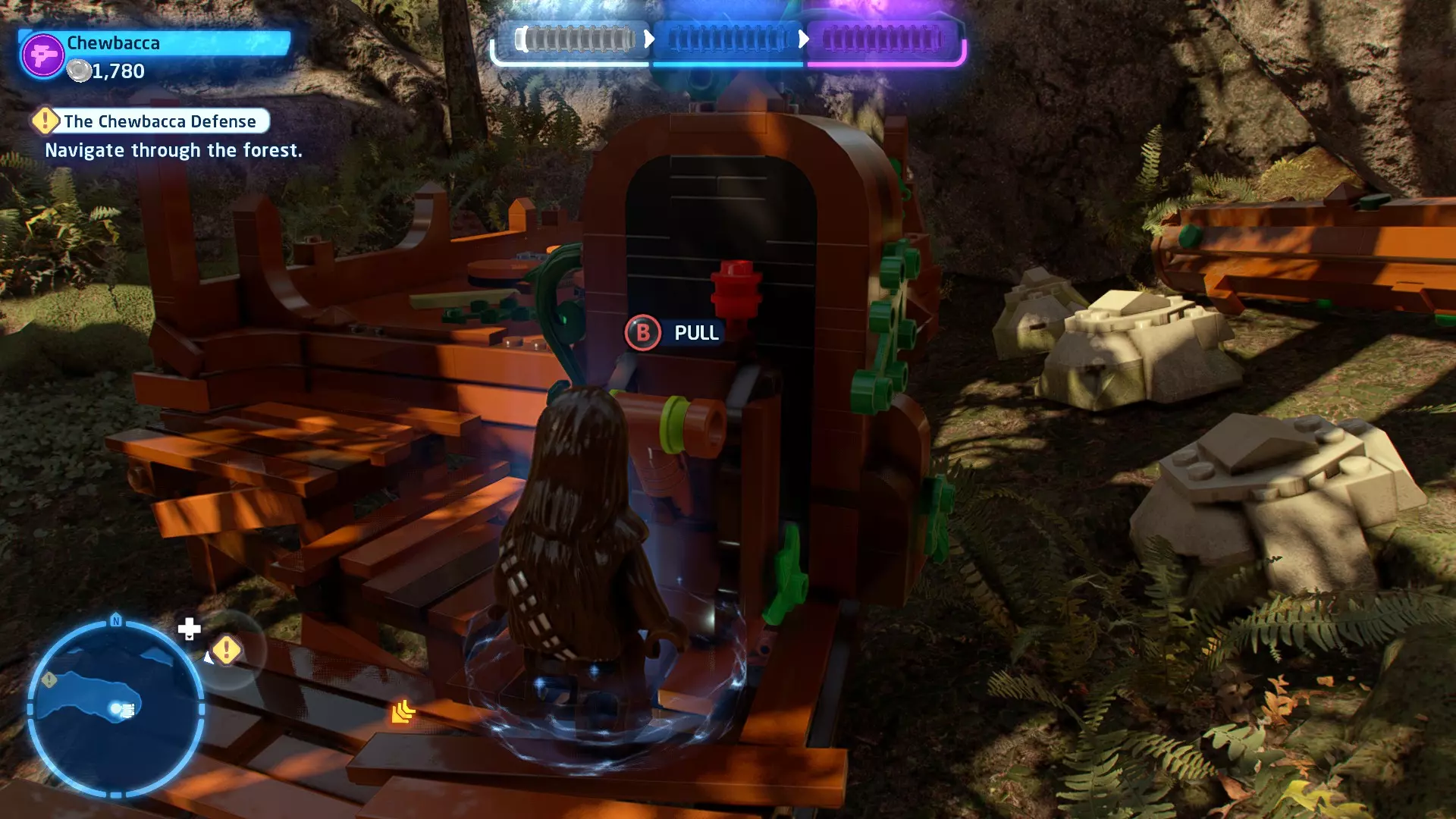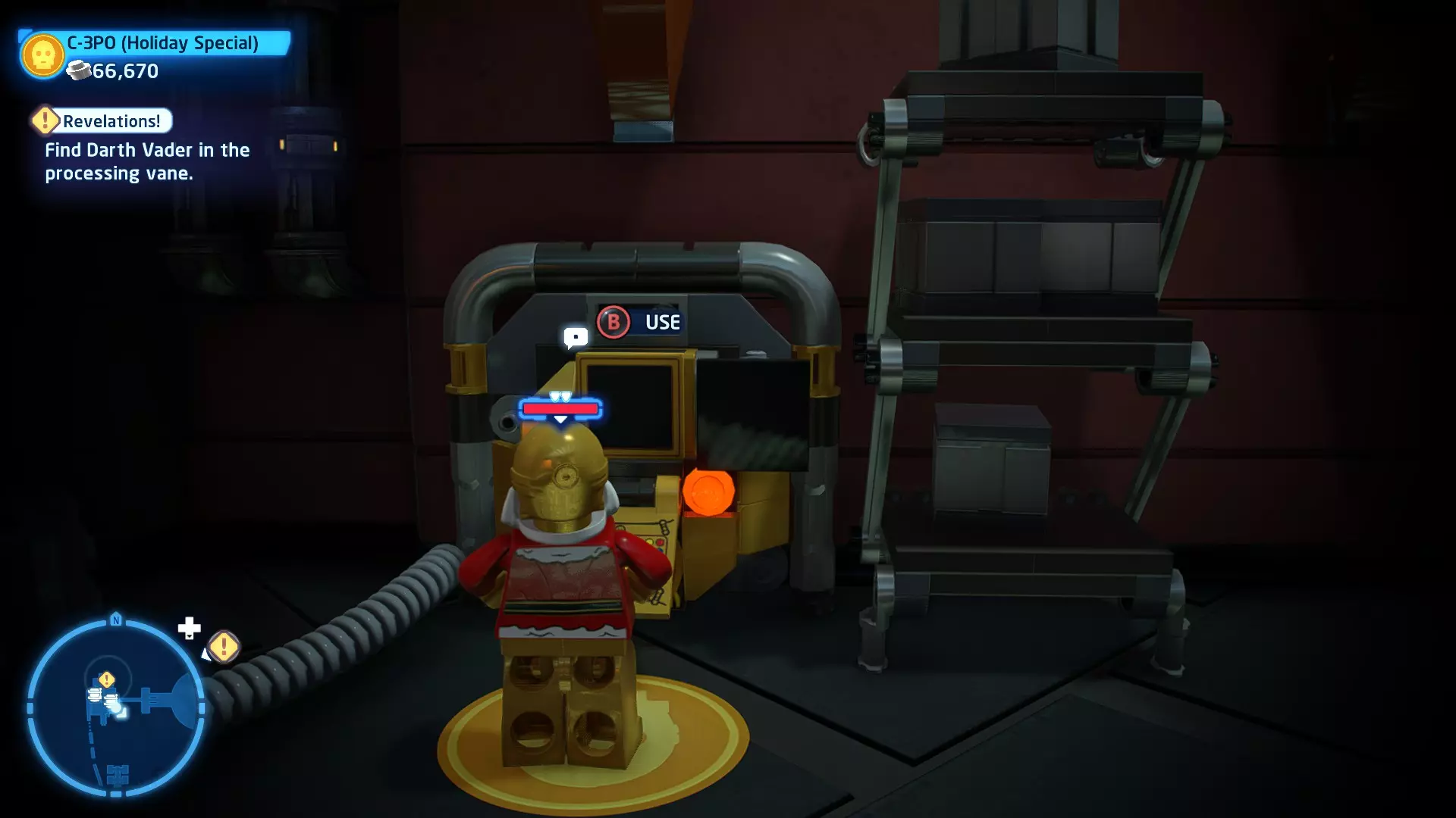 摧毁第一队西斯士兵右侧的黄金发电机,以获得乐高积木。将它们组装成这个迷你套件。 迷你套件3 - 无法束缚我