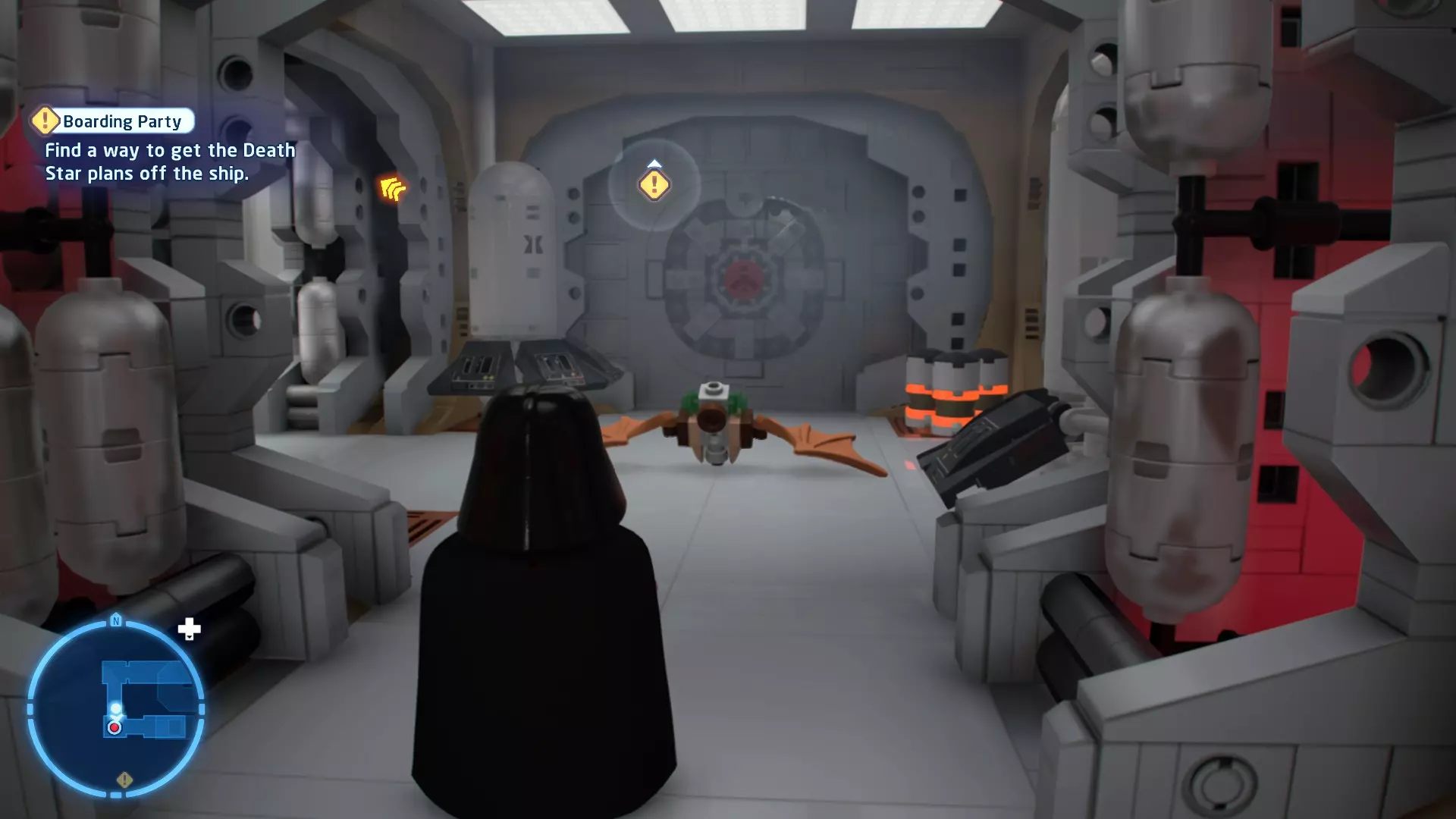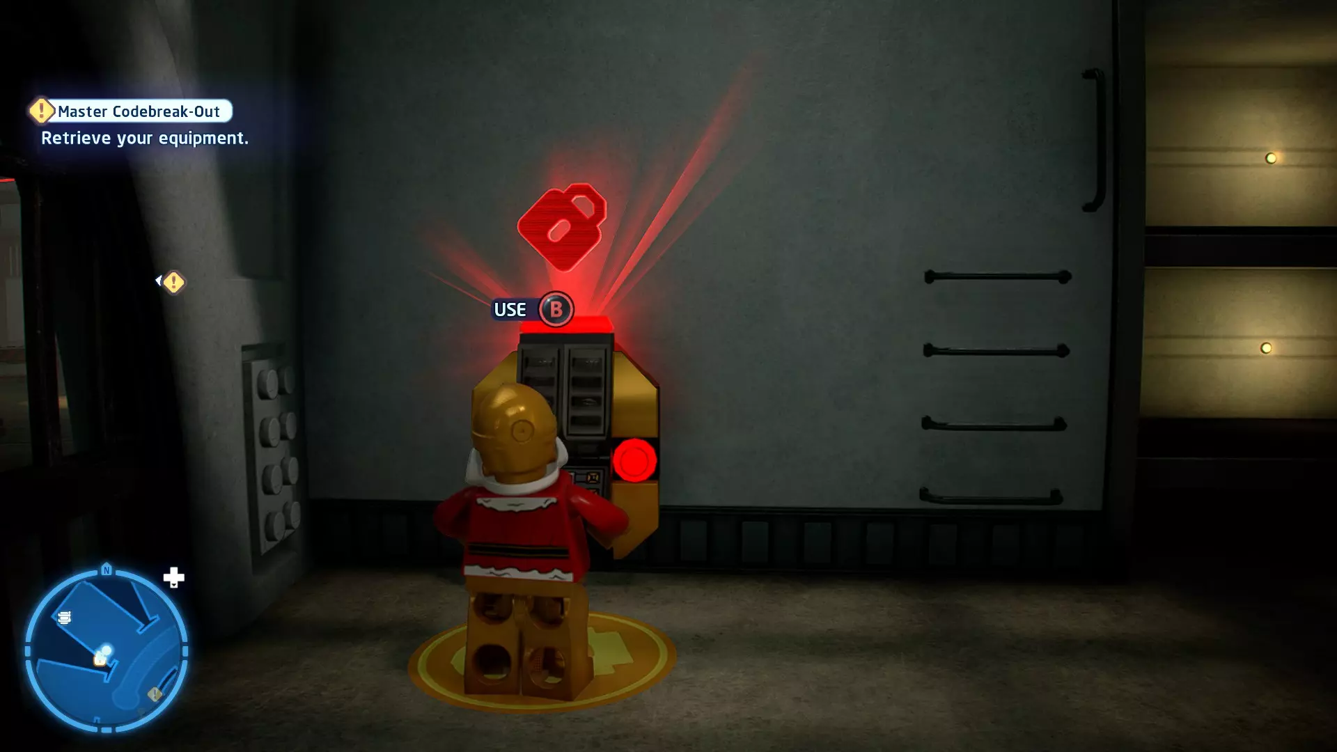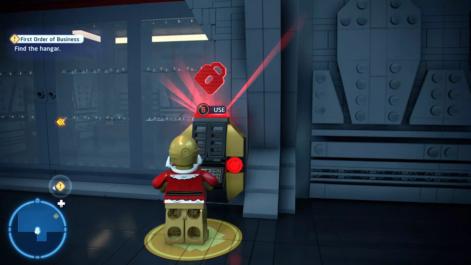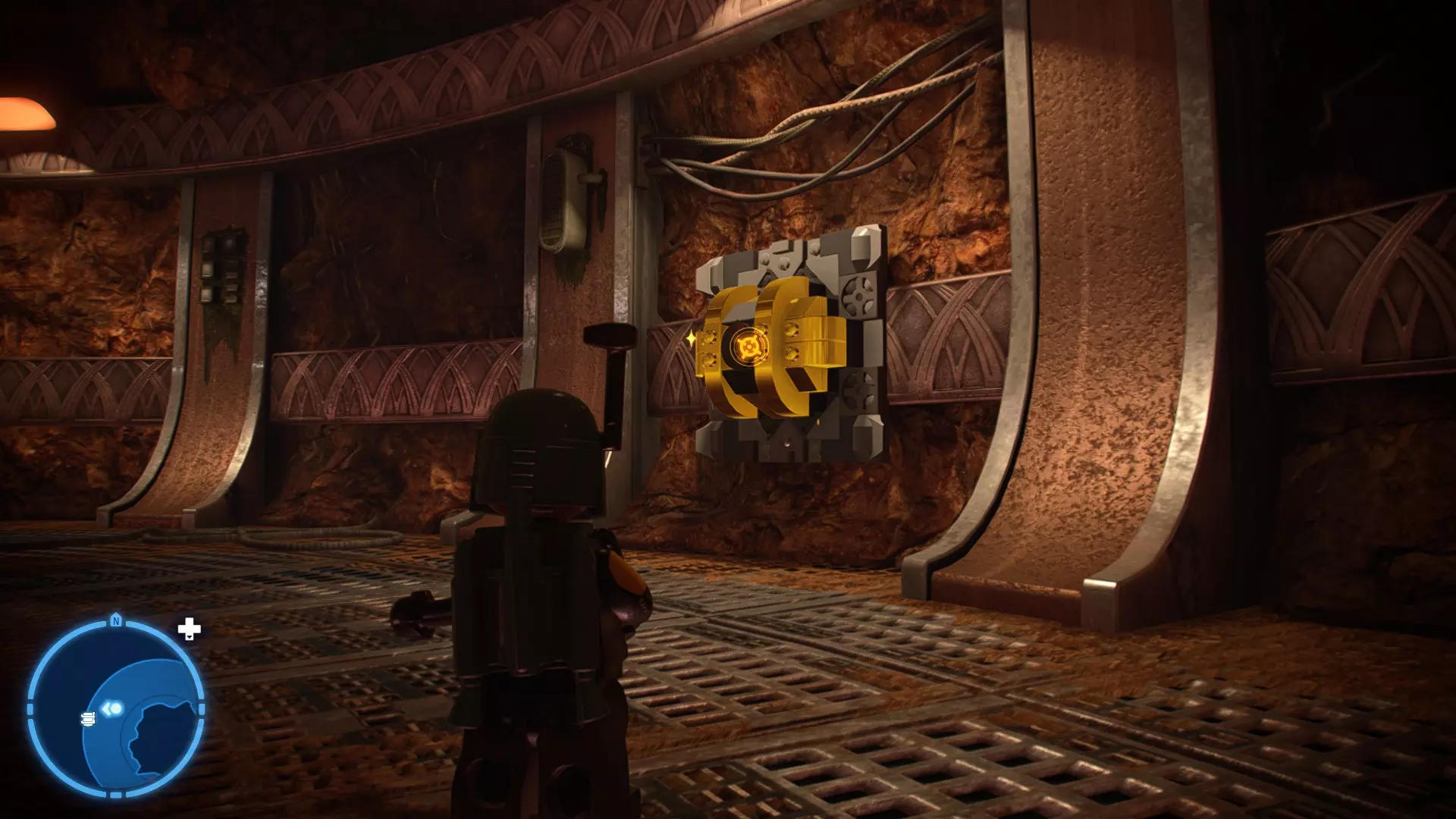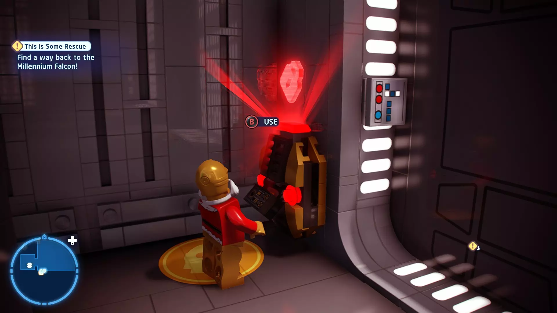 不要使用宇航技工机器人接口来打开死星的出口门,而是查看门的上方,你会发现一些金色碎片。