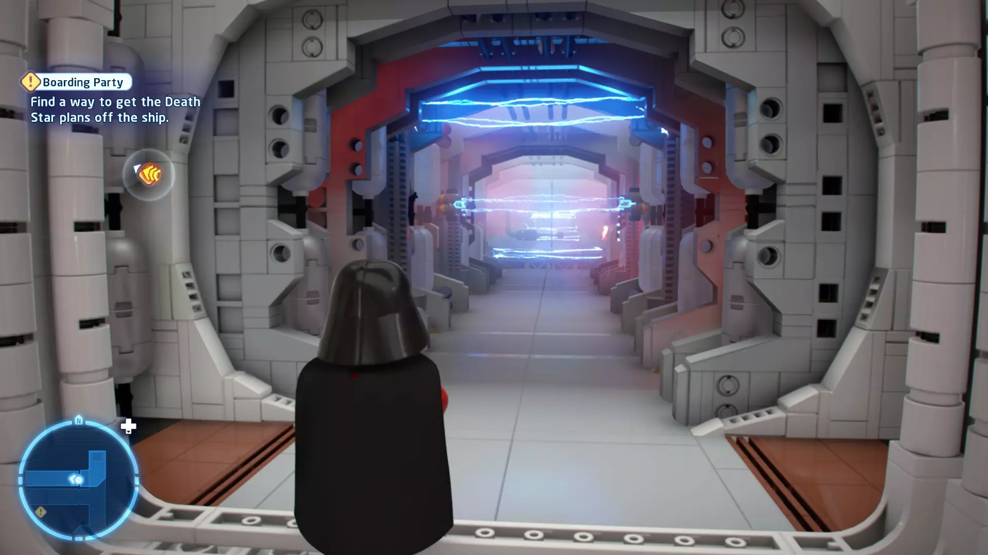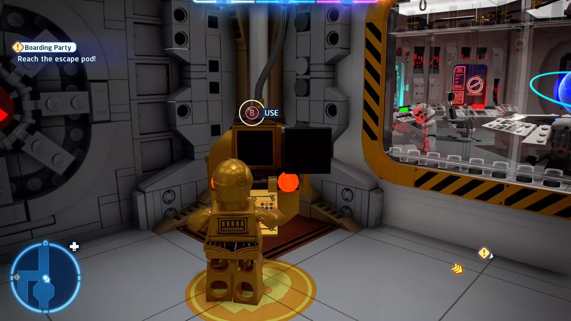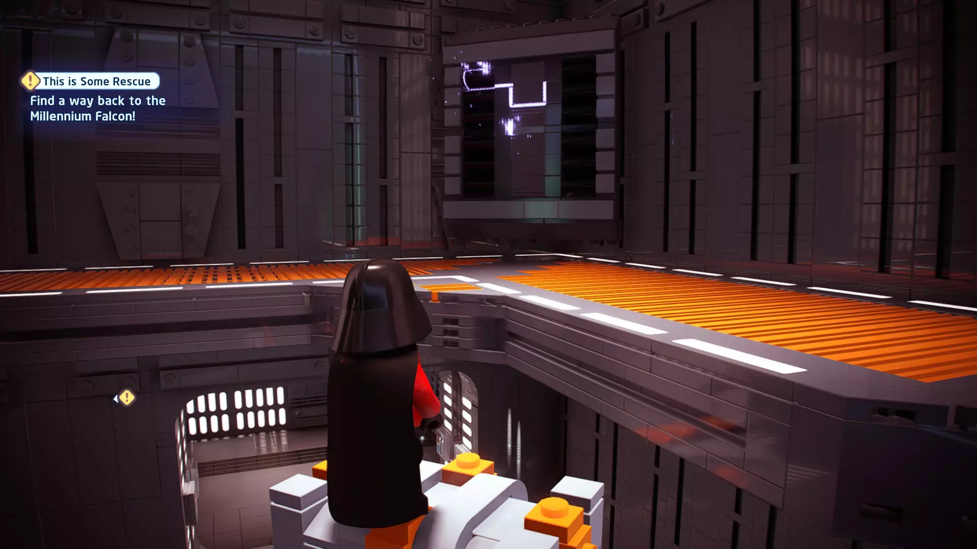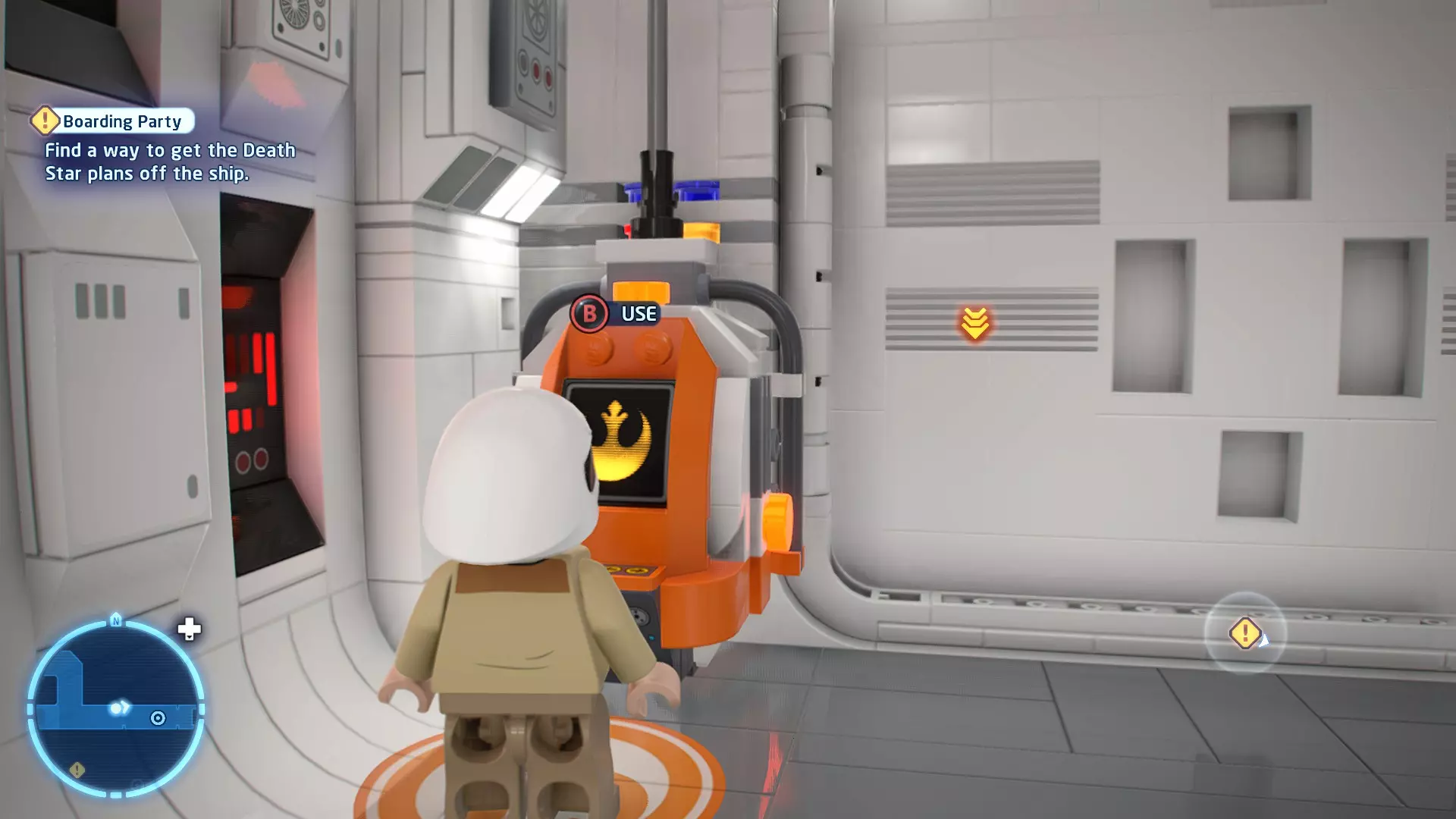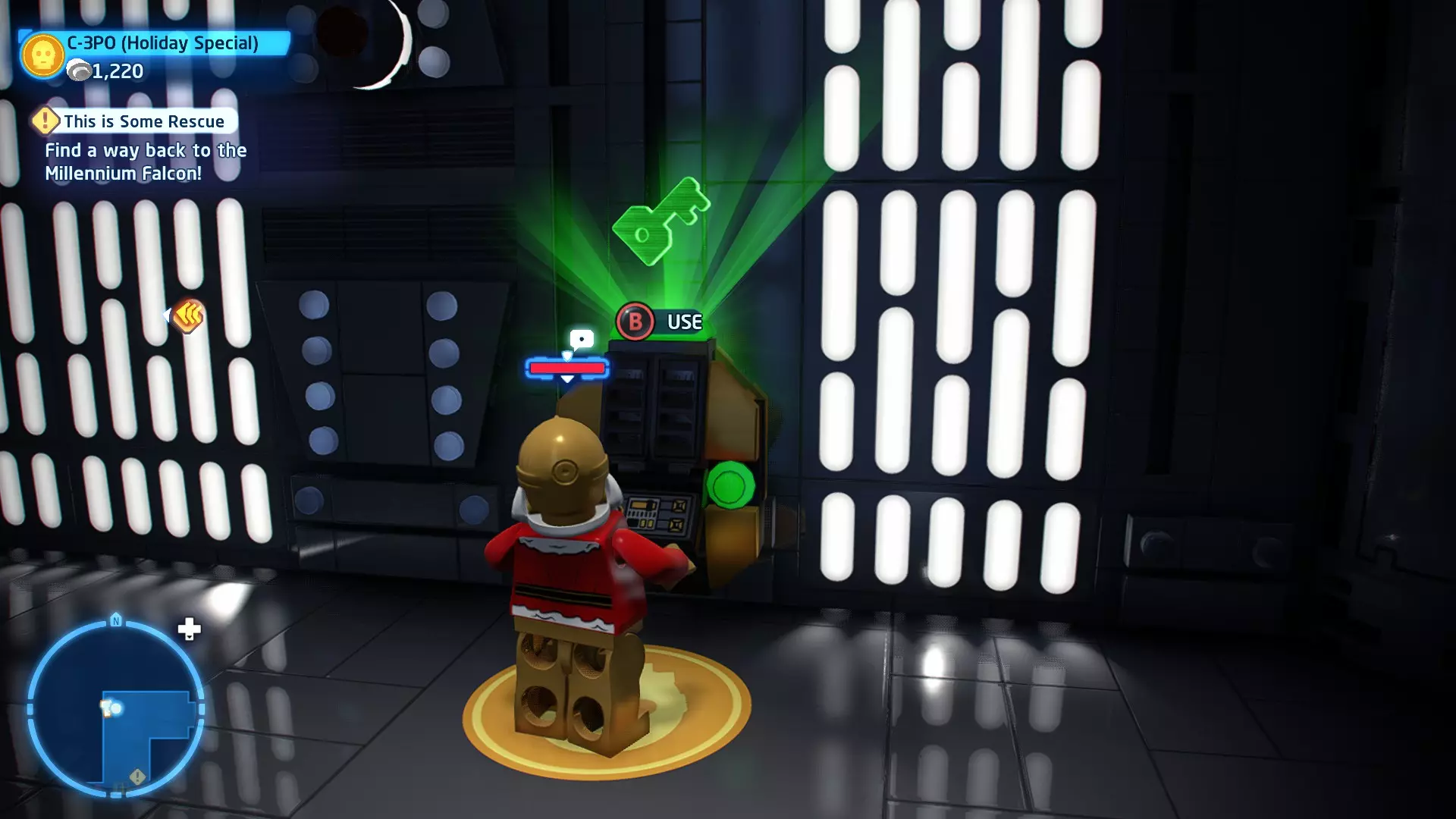 不要使用宇航技工机器人接口来打开死星的出口门,而是查看门的上方,你会发现一些金色碎片。