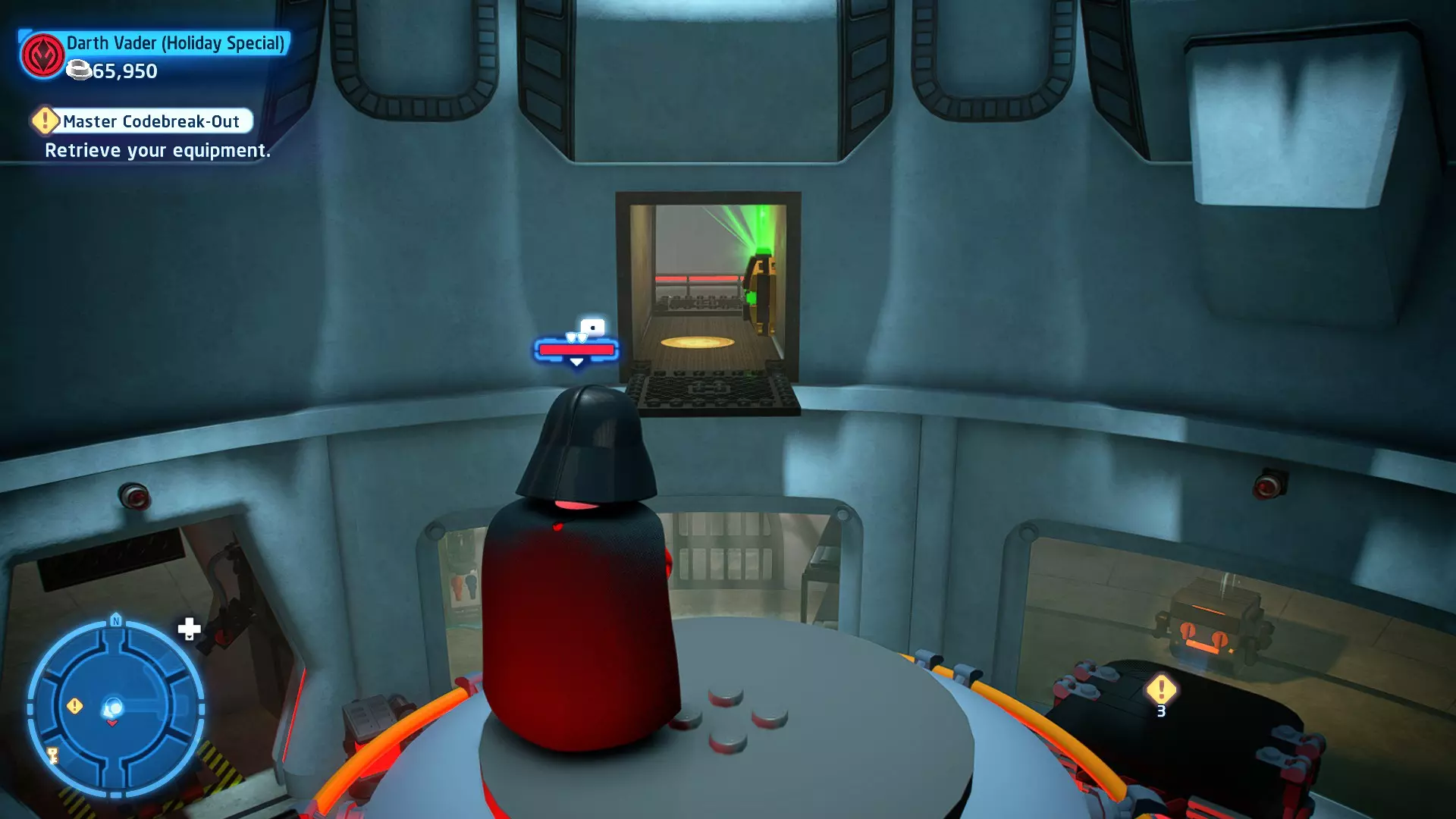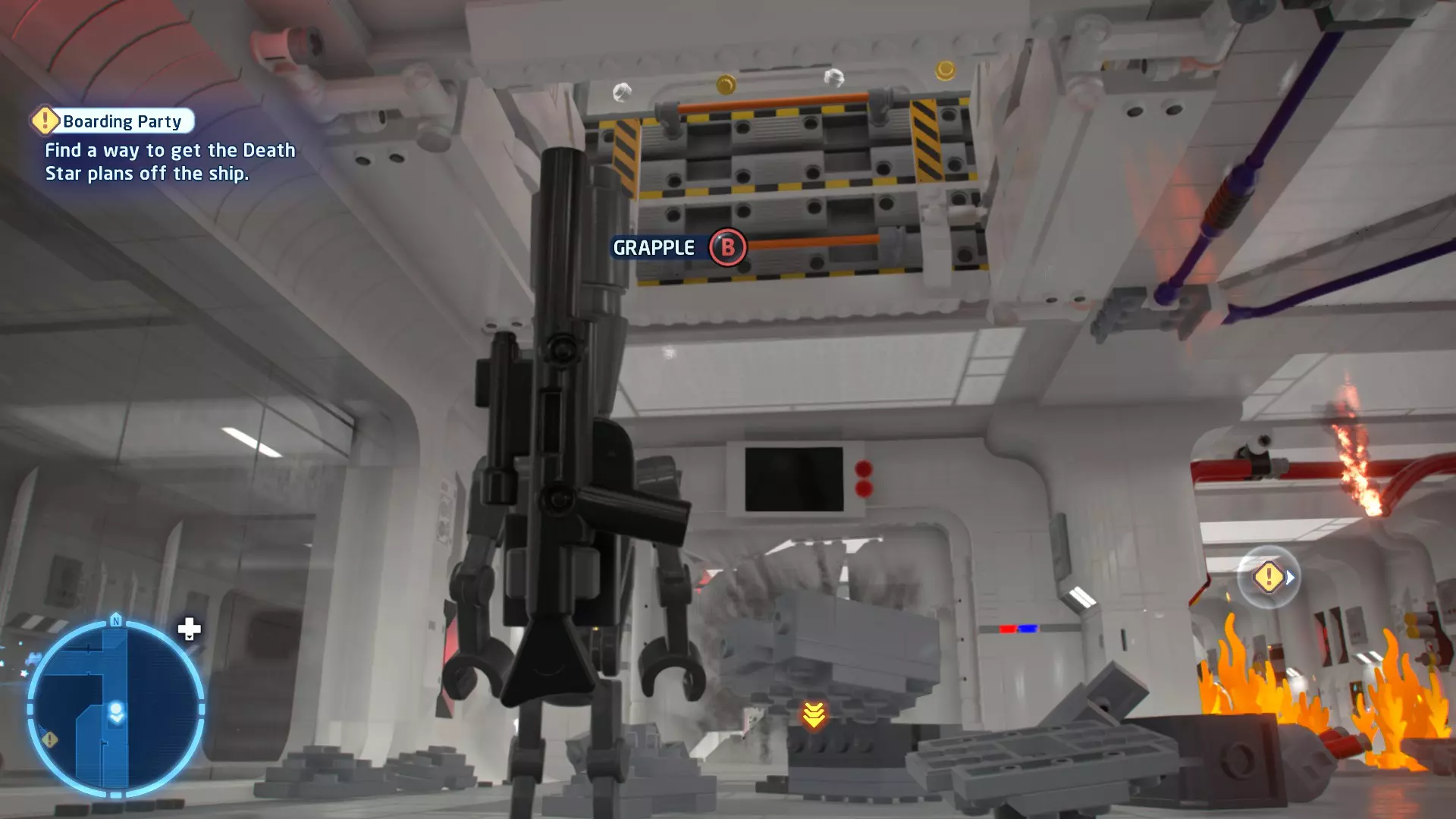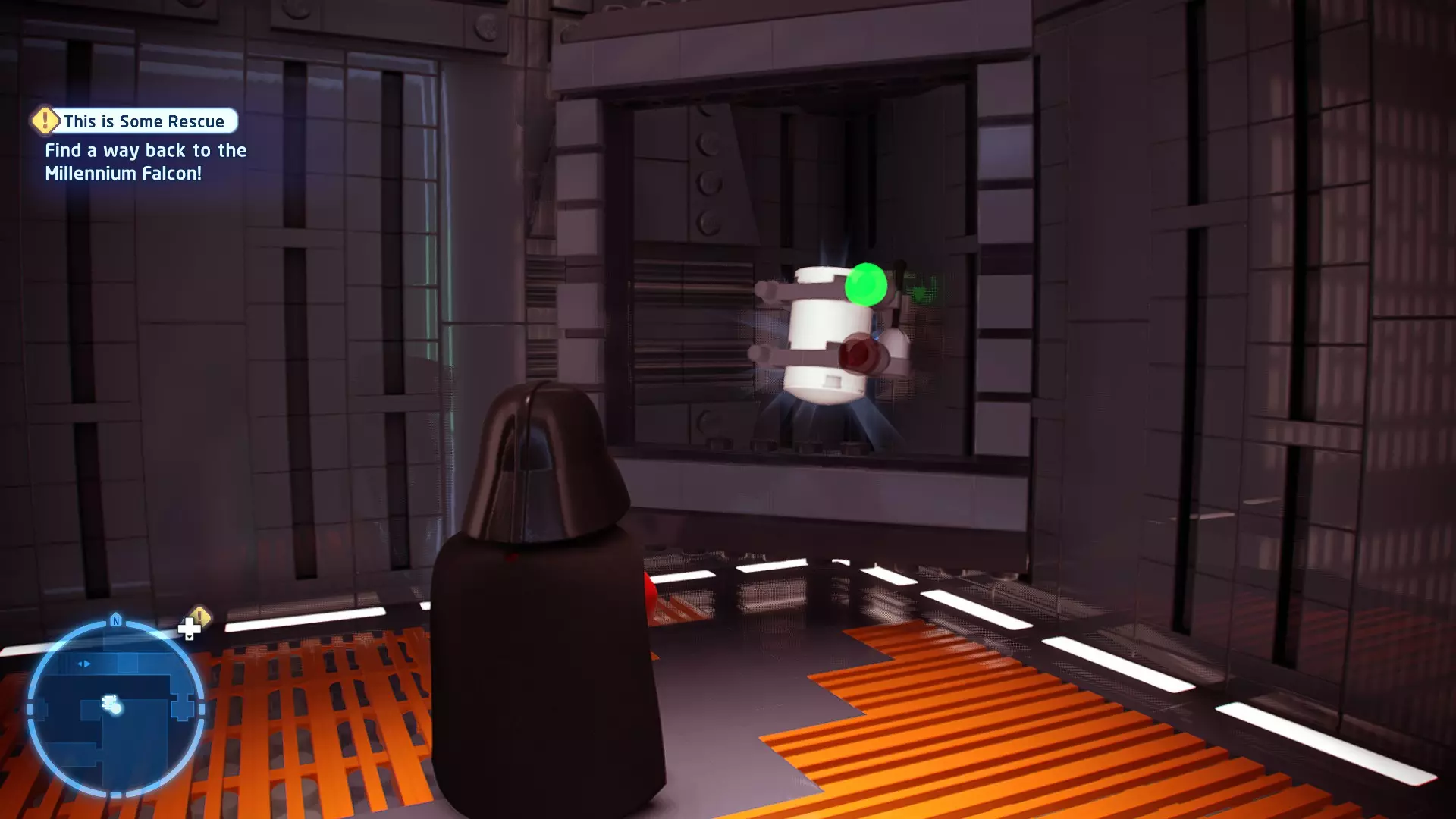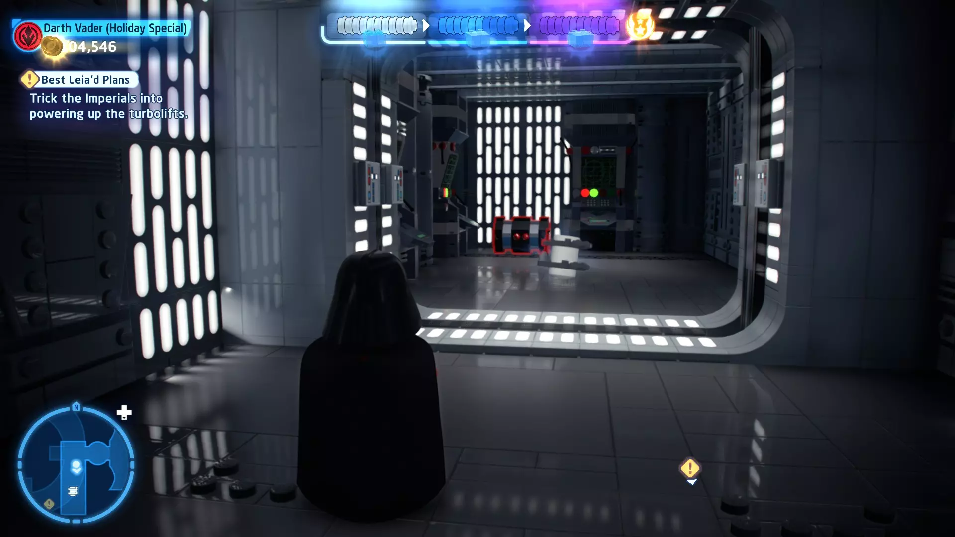 不要使用宇航技工机器人接口来打开死星的出口门,而是查看门的上方,你会发现一些金色碎片。