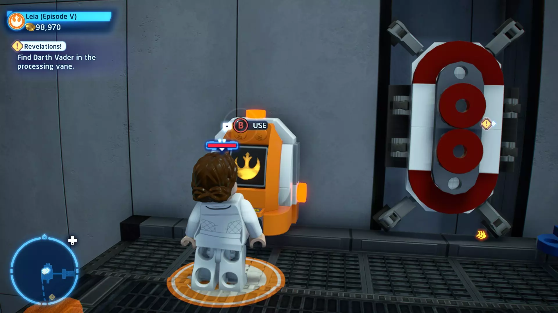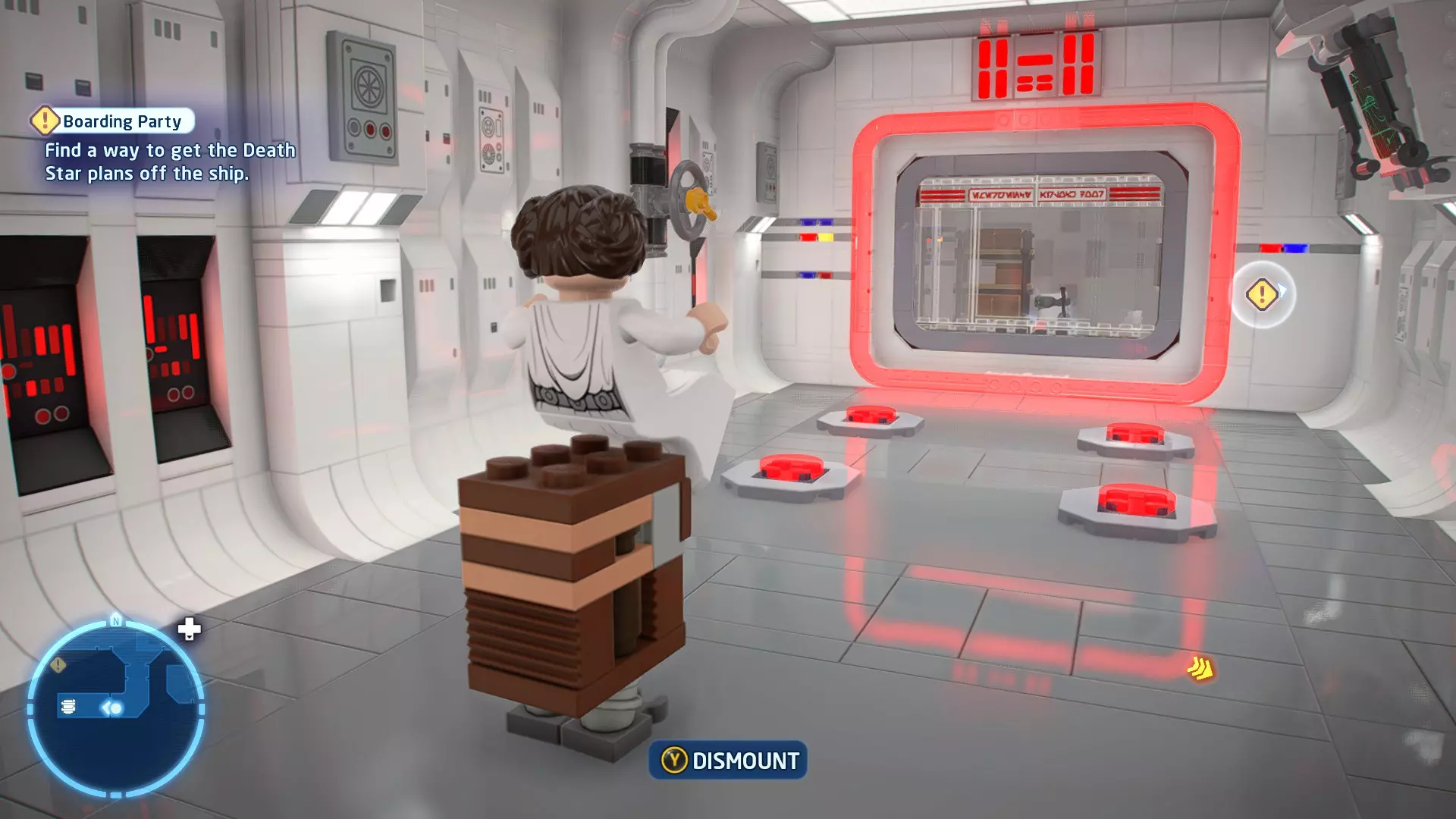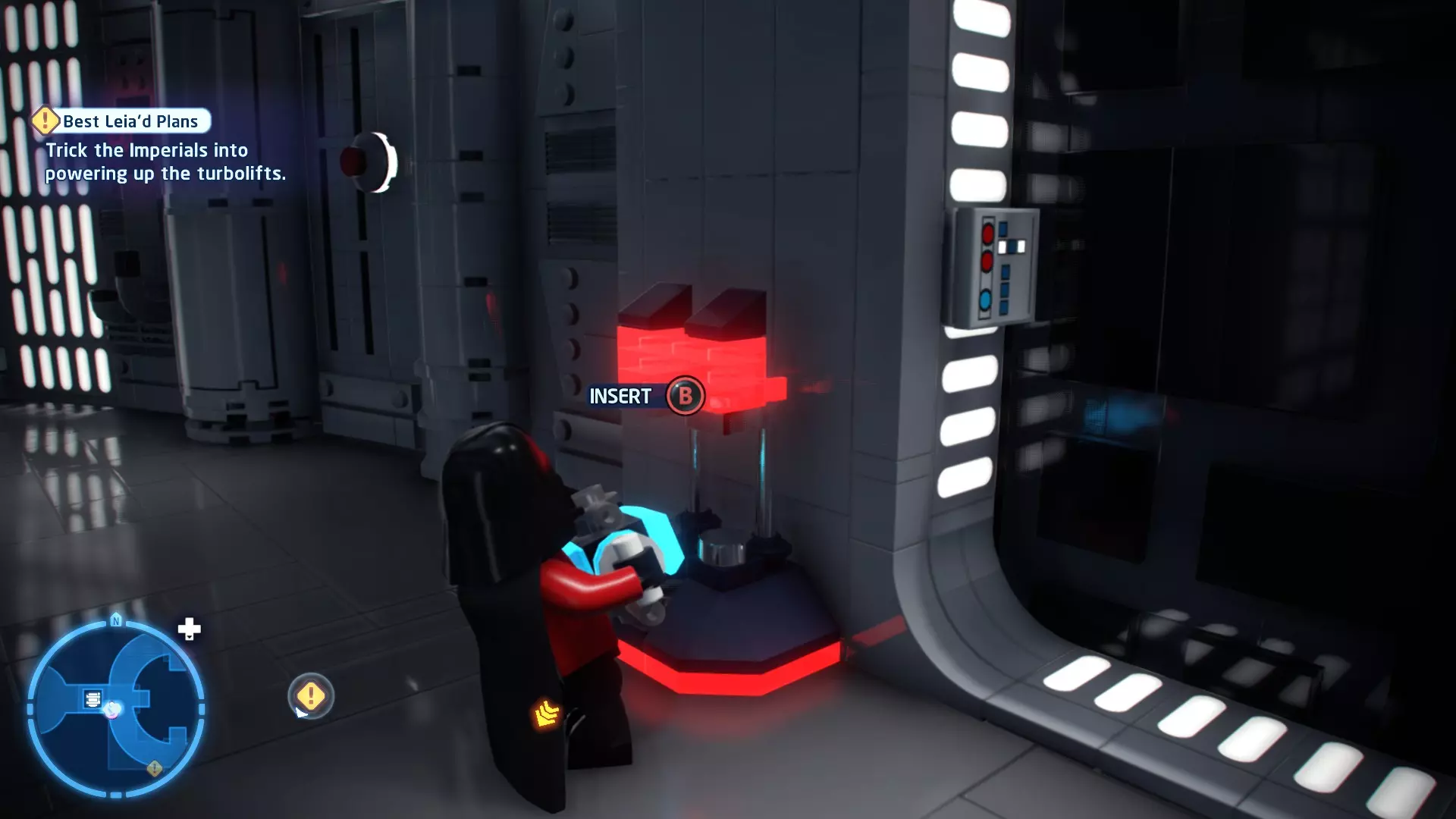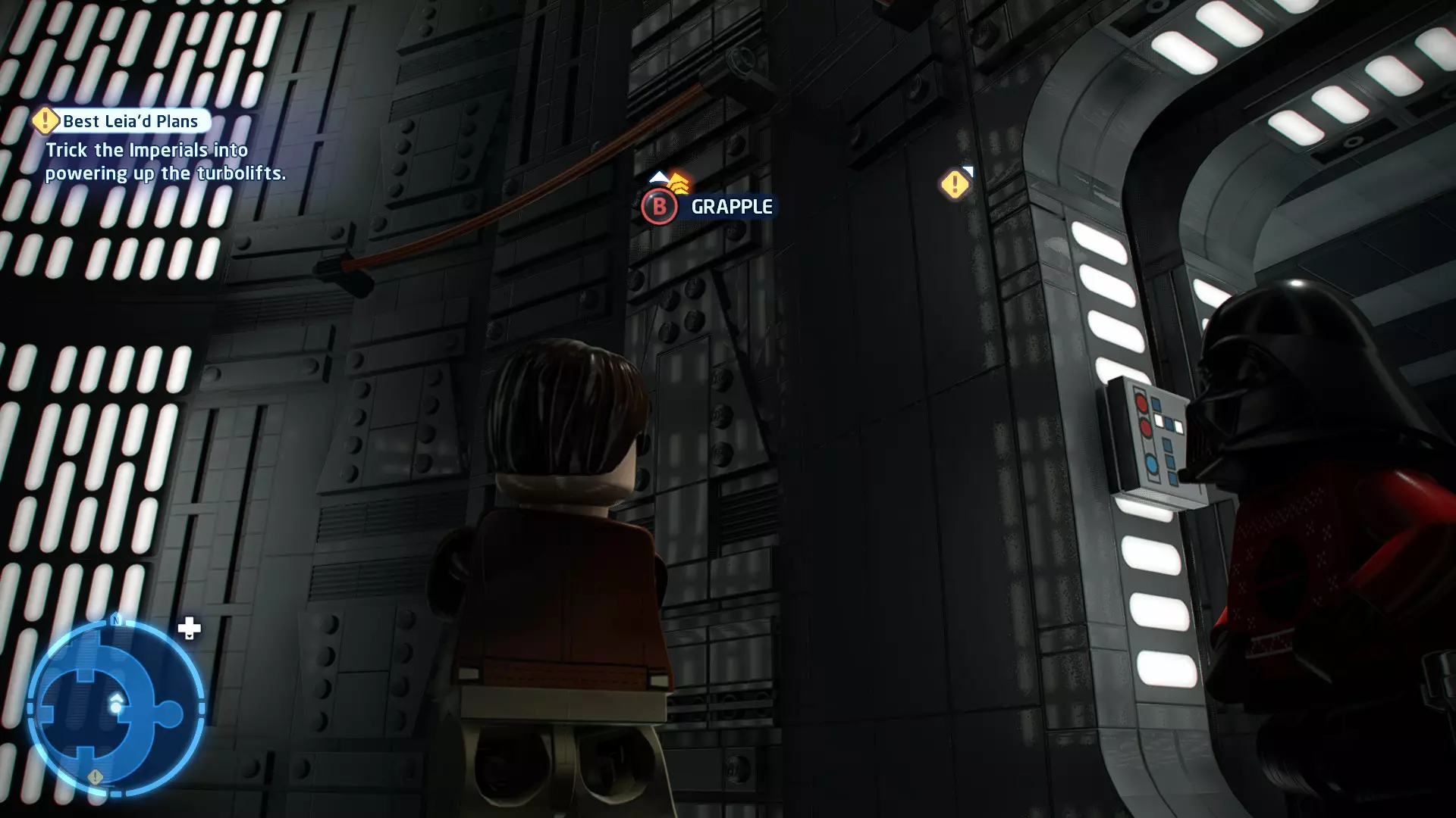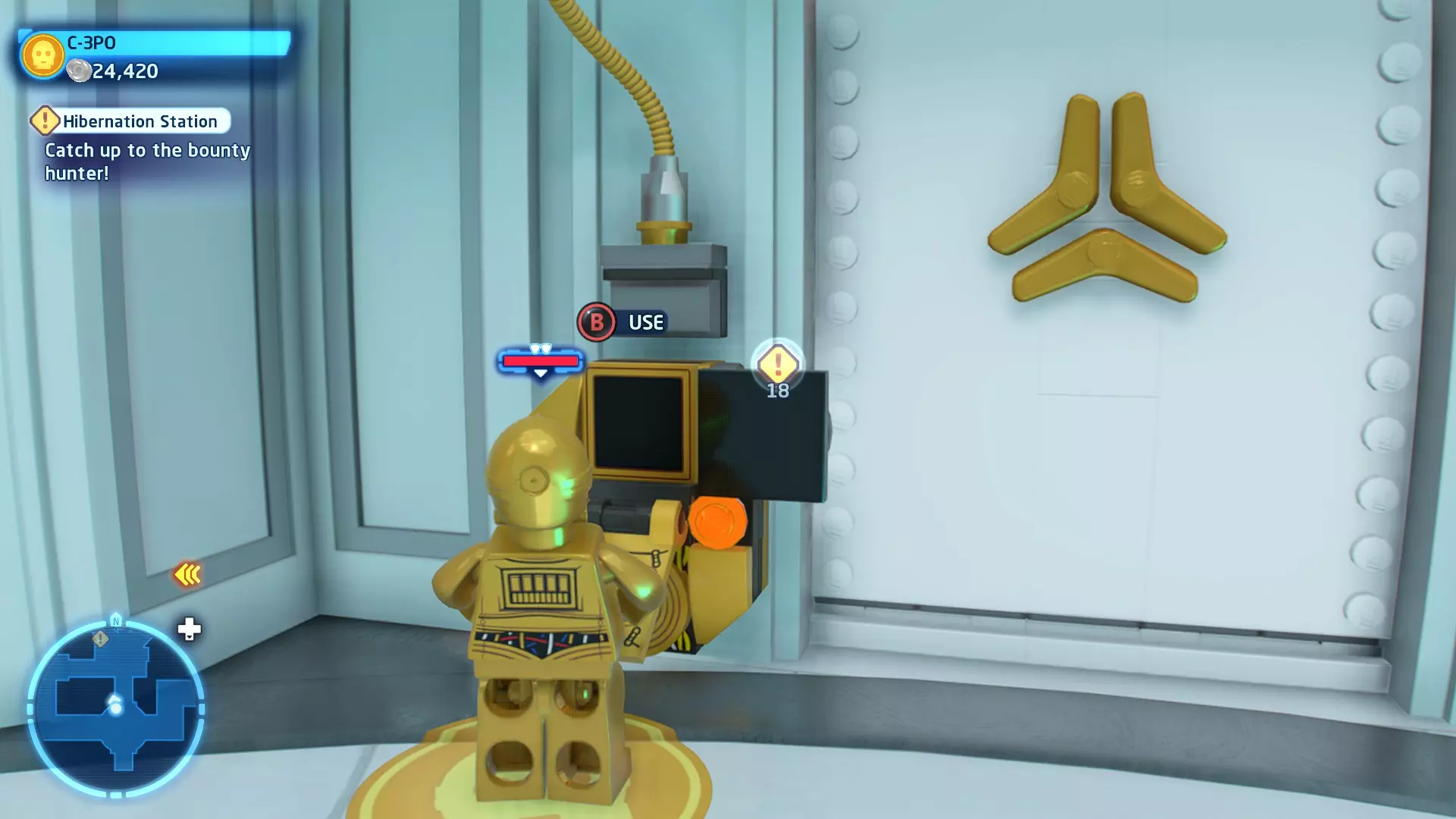 不要使用宇航技工机器人接口来打开死星的出口门,而是查看门的上方,你会发现一些金色碎片。