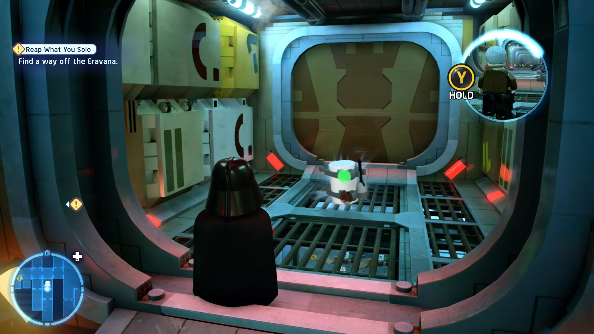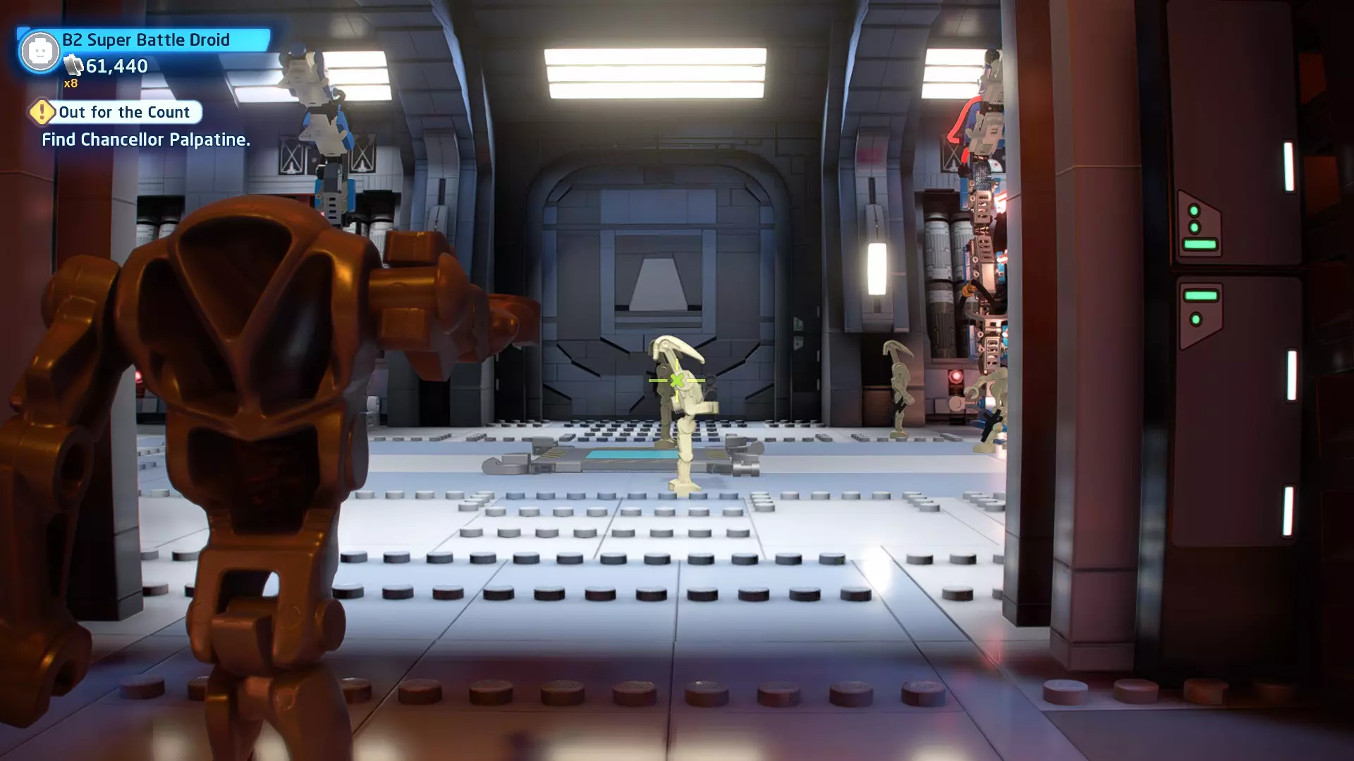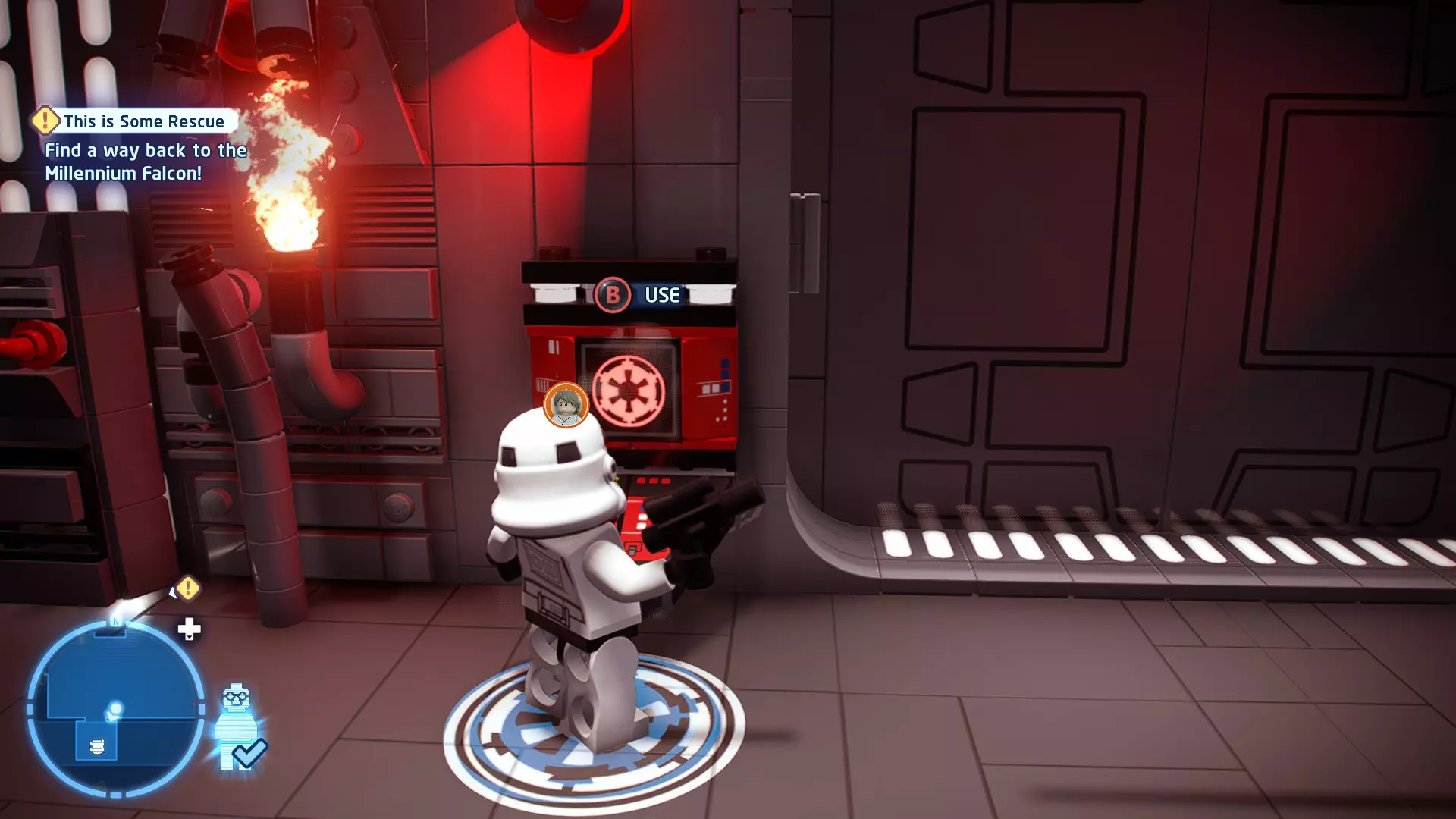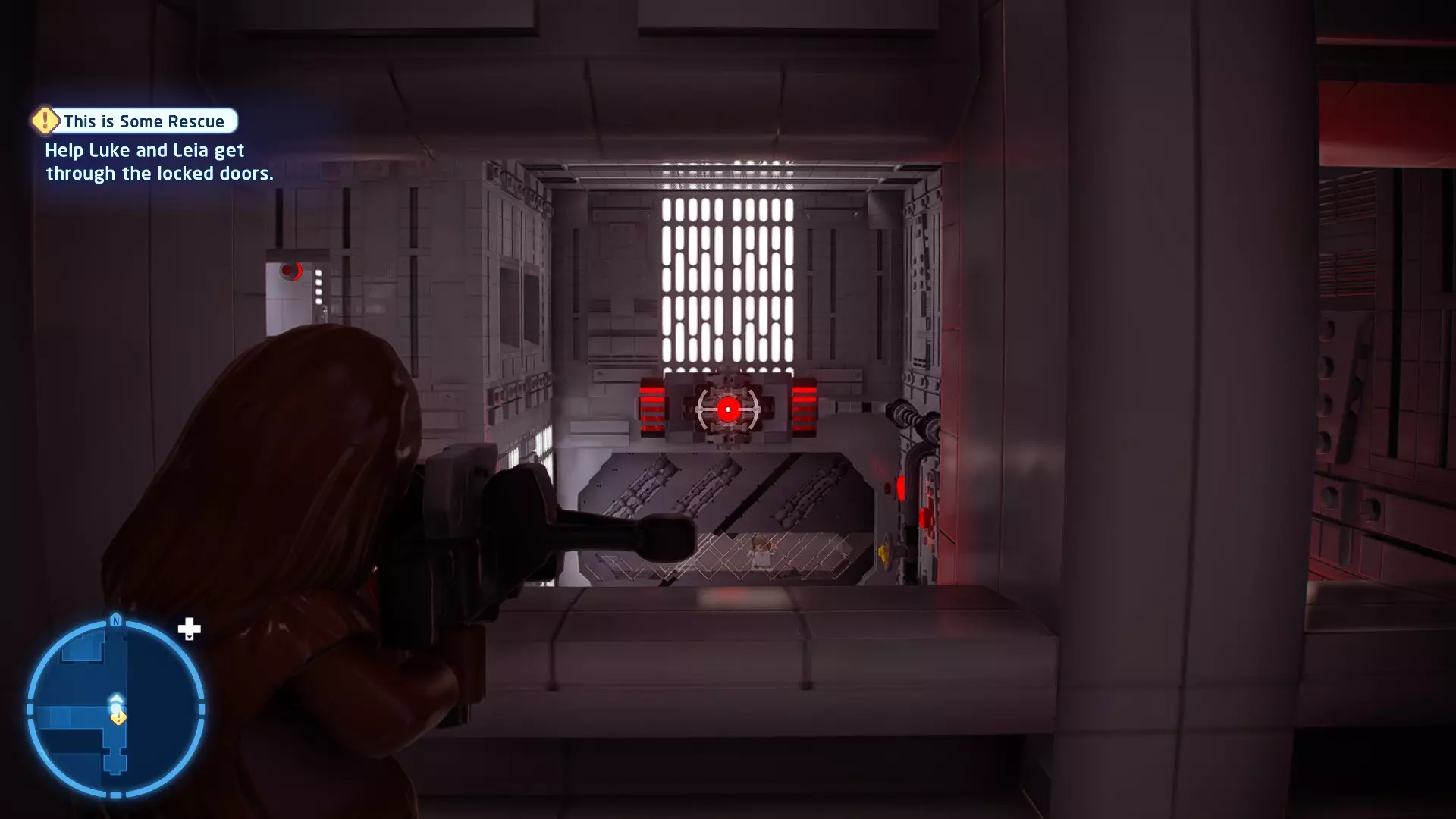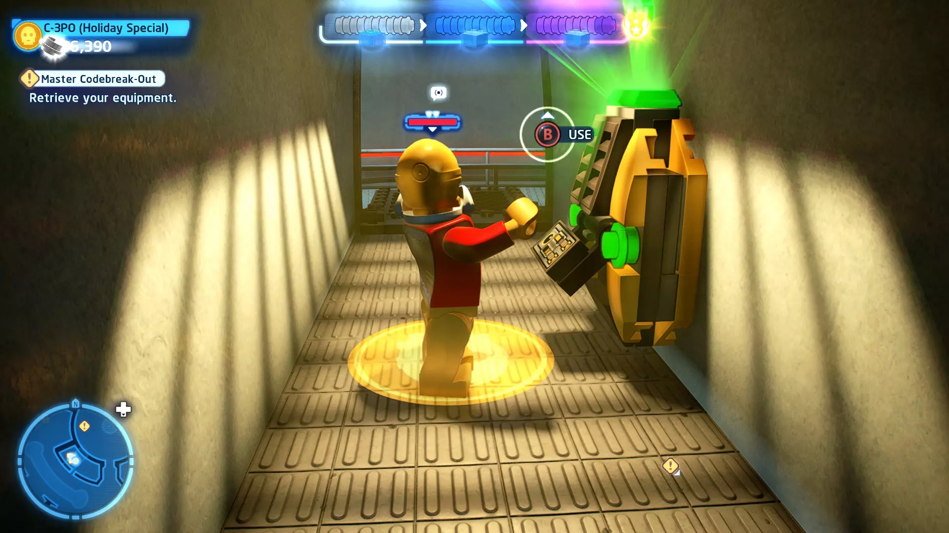 不要使用宇航技工机器人接口来打开死星的出口门,而是查看门的上方,你会发现一些金色碎片。