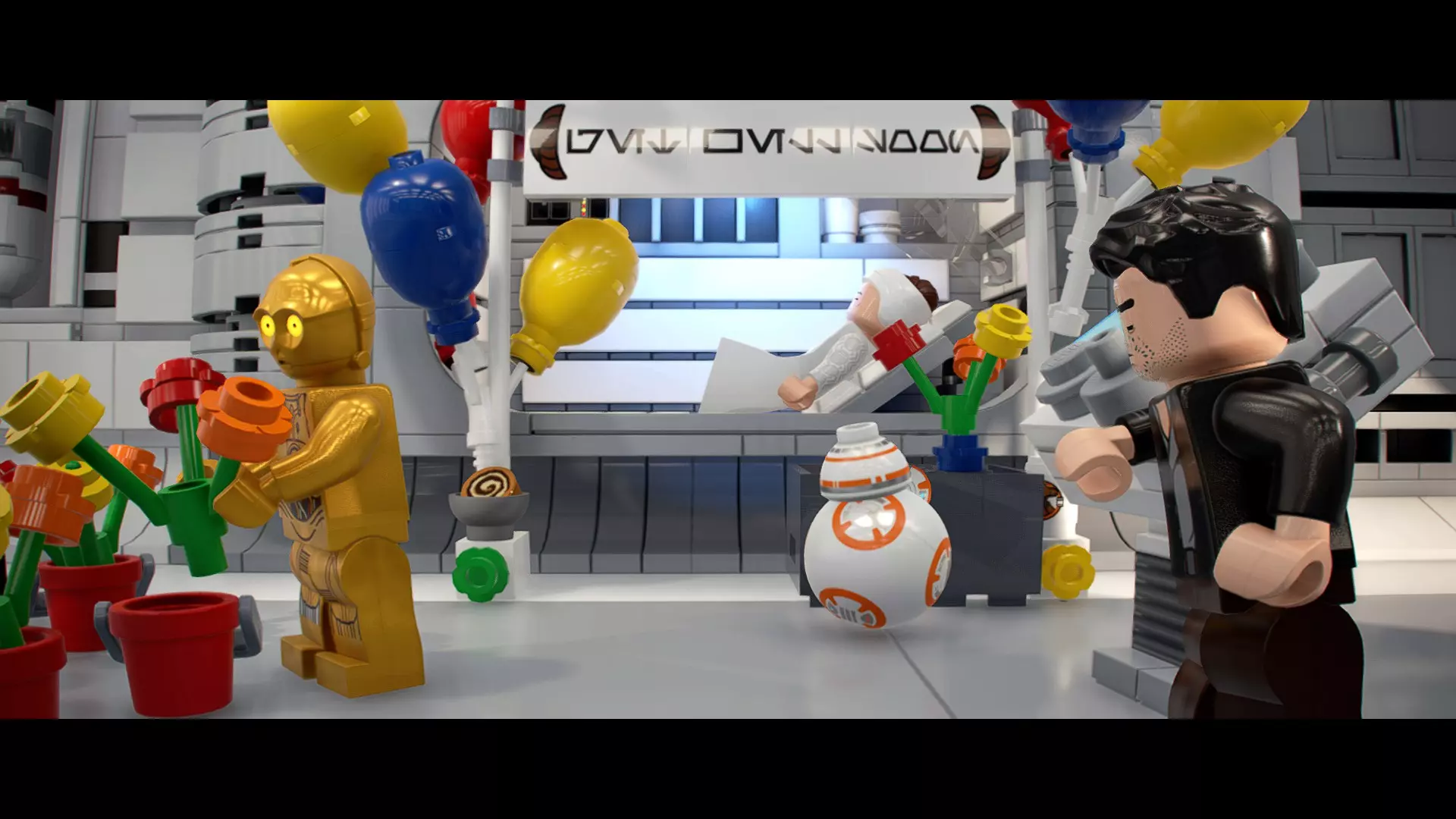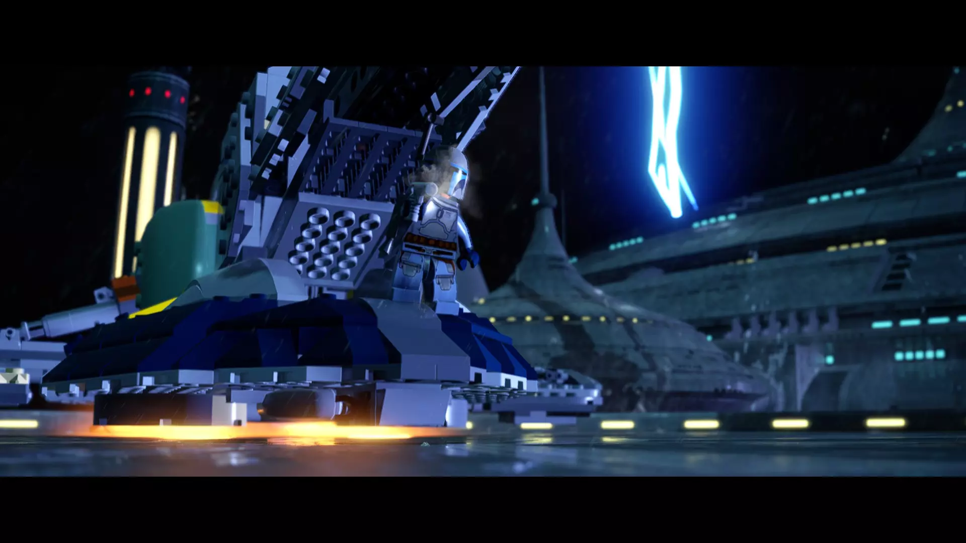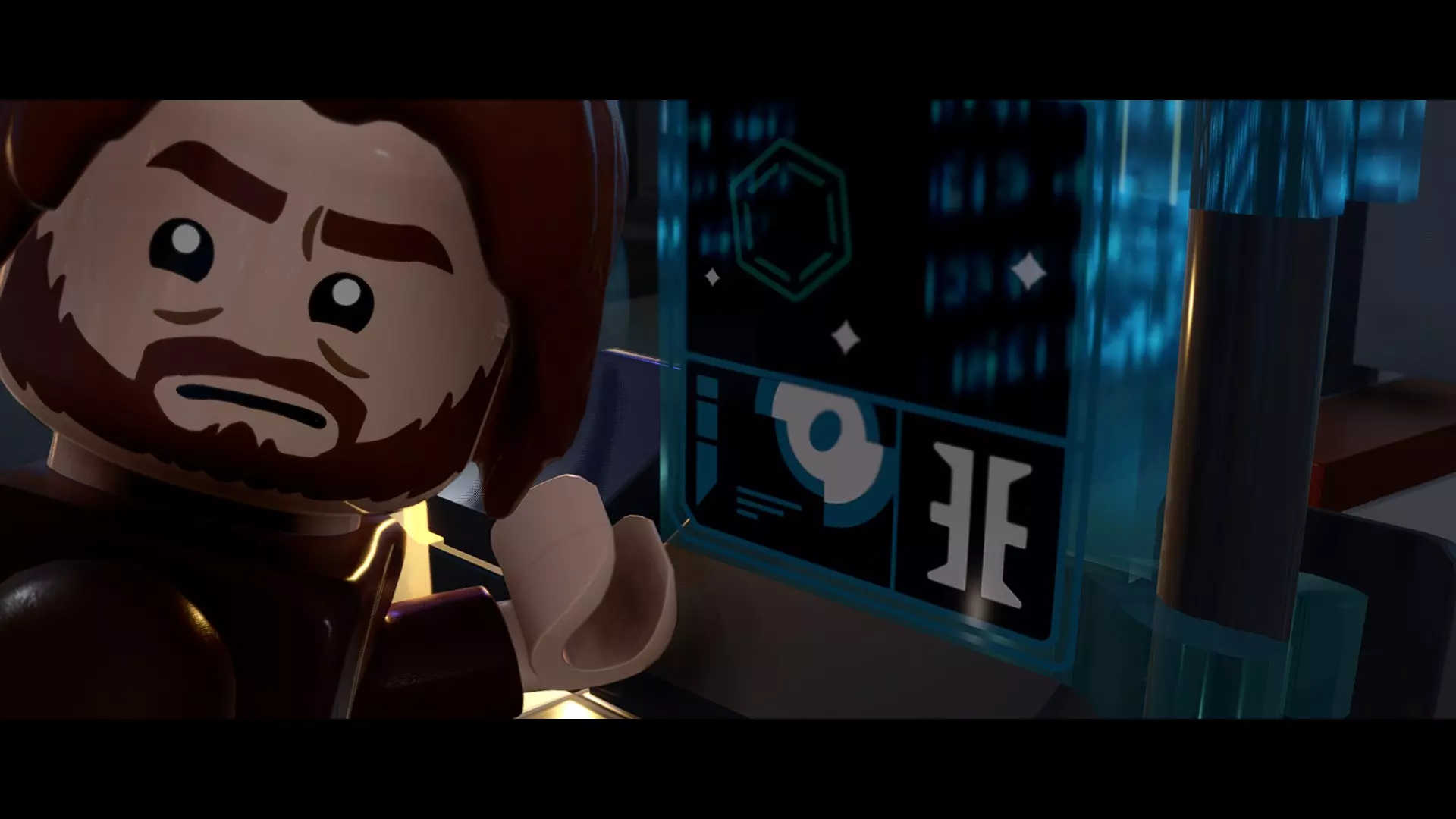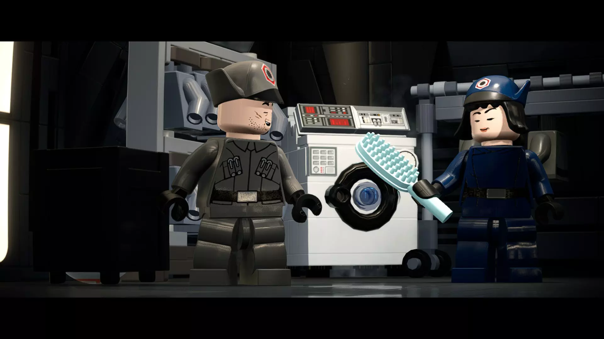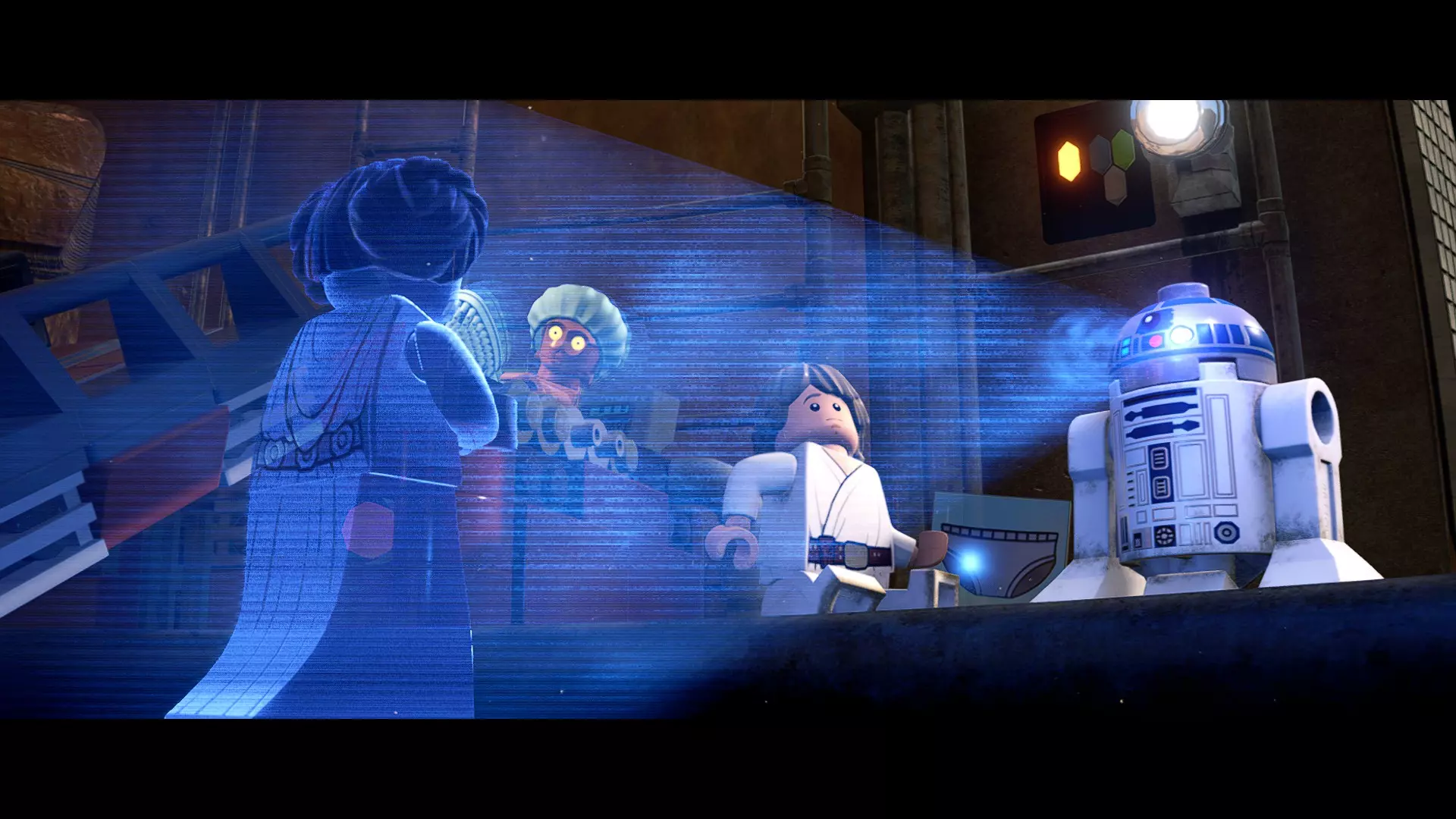本关卡中有数台UA-TT步行机,每台都配备了探照灯。射击探照灯使其失效,即可完成此挑战。 幕间插曲 - 伍基人的救援 灾难降临!蕾伊意外使用原力闪电摧毁了丘巴卡的运输船后,丘巴卡和西斯匕首似乎都已遗失。幸运的是,关键的西斯铭文仍存在C-3PO的记忆中。 为了翻译西斯语言,波·达默龙带他们前往基吉米星球,寻求传奇机器人技师巴布·弗里克的帮助。 这位可爱的修补匠成功了,C-3PO为了获取寻路者的位置,光荣地牺牲了自己的记忆。 哦对了,丘巴卡还活着……角色:芬恩(第九部)、波·达默龙(第九部)、蕾伊(第九部) 当前任务:登上坚定号 是时候去营救丘伊了!飞向坚定号并降落在机库。 新任务:寻找丘巴卡 一路战斗穿过飞船,沿着标记穿过走廊。最终,你会到达一个安检站。对里面的士兵使用【心灵控制】技能,然后抓住拉杆打开门,这样你就能继续前进了。 继续沿着走廊前进,找到标记以继续剧情。