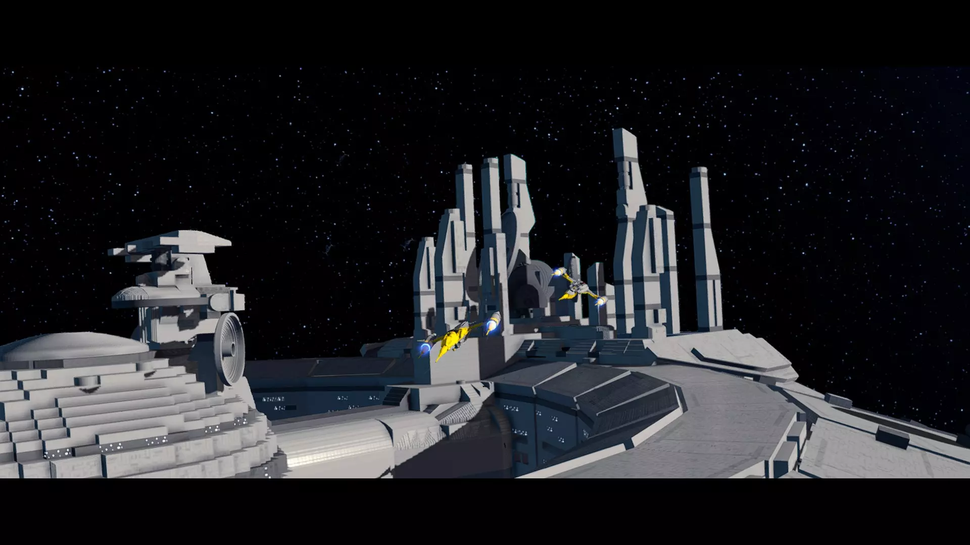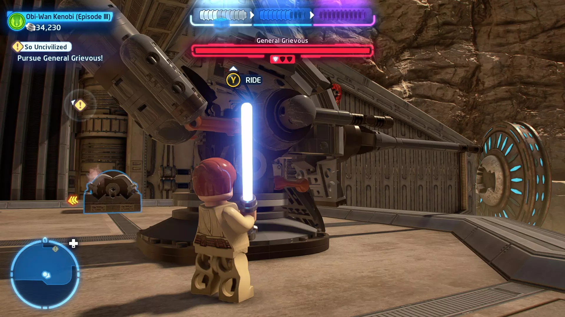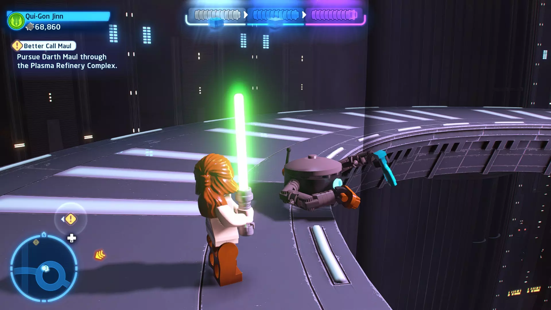 角色:魁刚·金(带披风)、欧比旺·克诺比(《星球大战I》) 当前任务:登上贸易联盟战舰 飞向贸易联盟战舰,然后在机库内着陆。 新任务:与TC-14对话 着陆后,前往TC-14处并与她对话。 新任务:跟随TC-14 跟随TC-14穿过走廊,前往会议室。 新任务:等待贸易联盟总督 等待期间,我们不妨整理一下房间!你会发现房间里有三把椅子没有放在桌子旁边。使用原力将它们归位。 新任务:逃离贸易联盟战舰! 看来计划有变。一路战斗穿过走廊,跟随标记前往机库。很遗憾,门会当着你的面关上。用你的光剑在门上切开一个洞,这样你就能进入机库了。前往MTT(多 troop 运输艇)寻找继续故事的标记。 已解锁载具:共和国巡洋舰 序章 - 警告纳布星