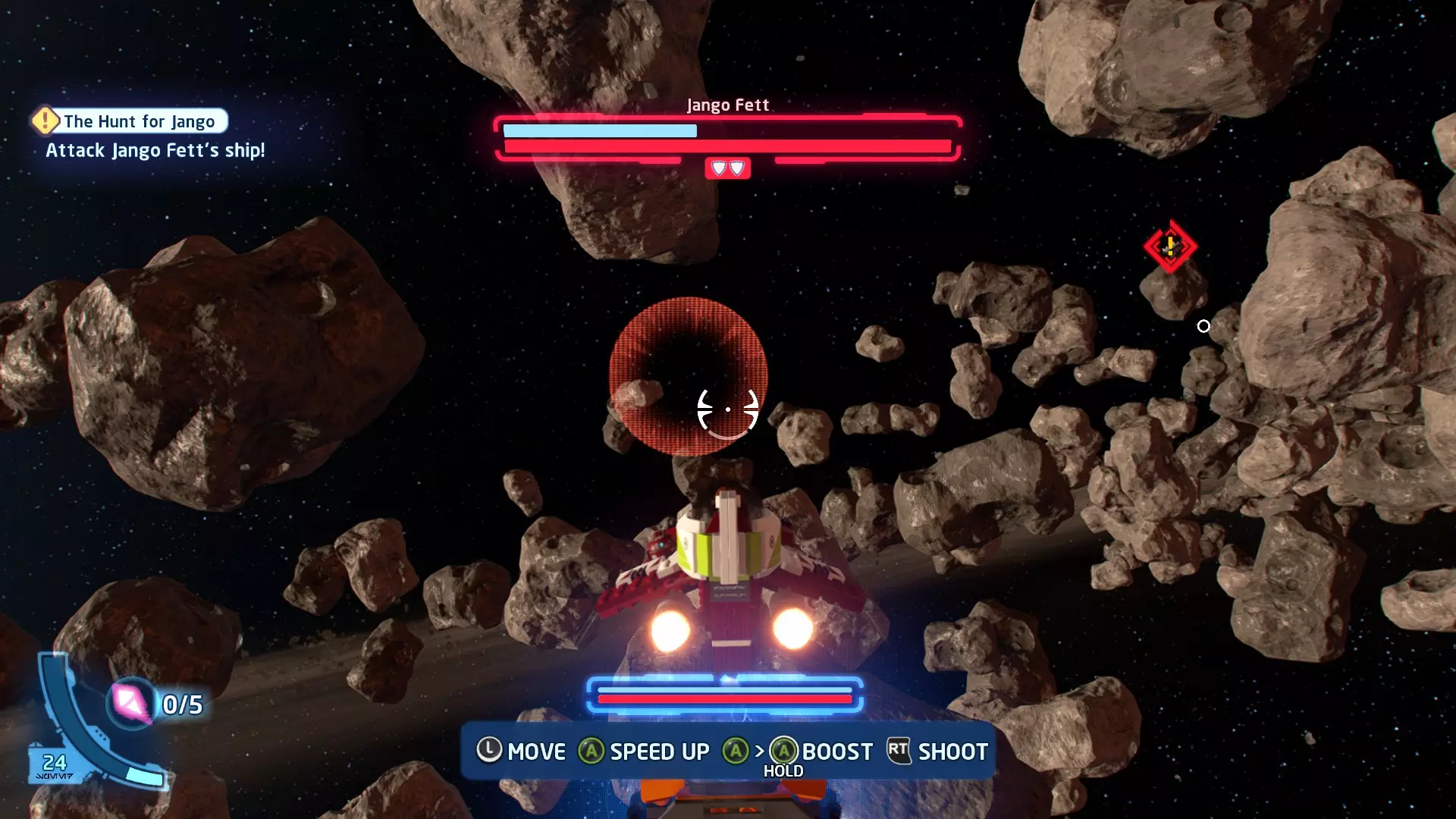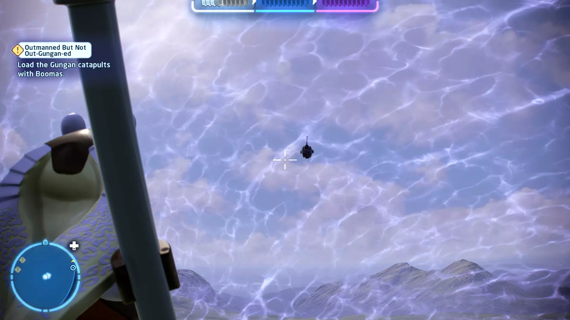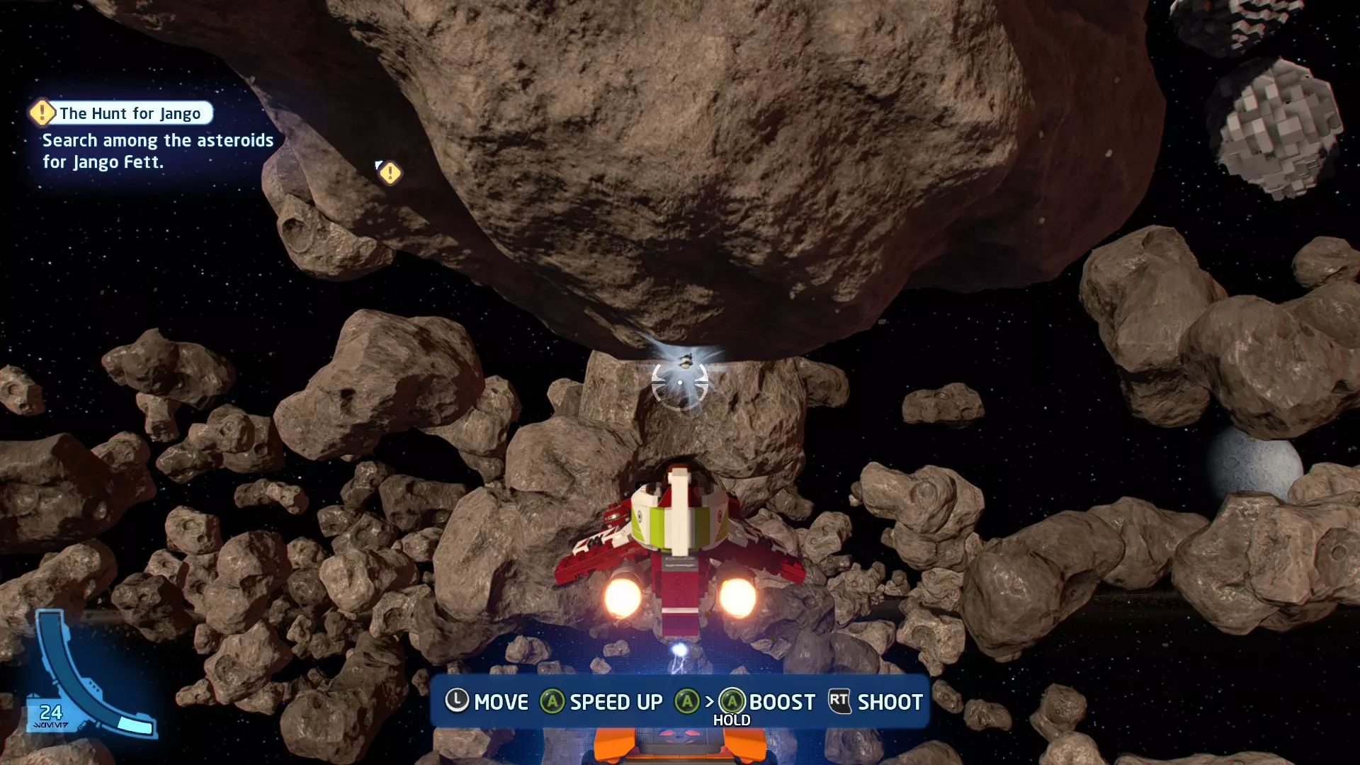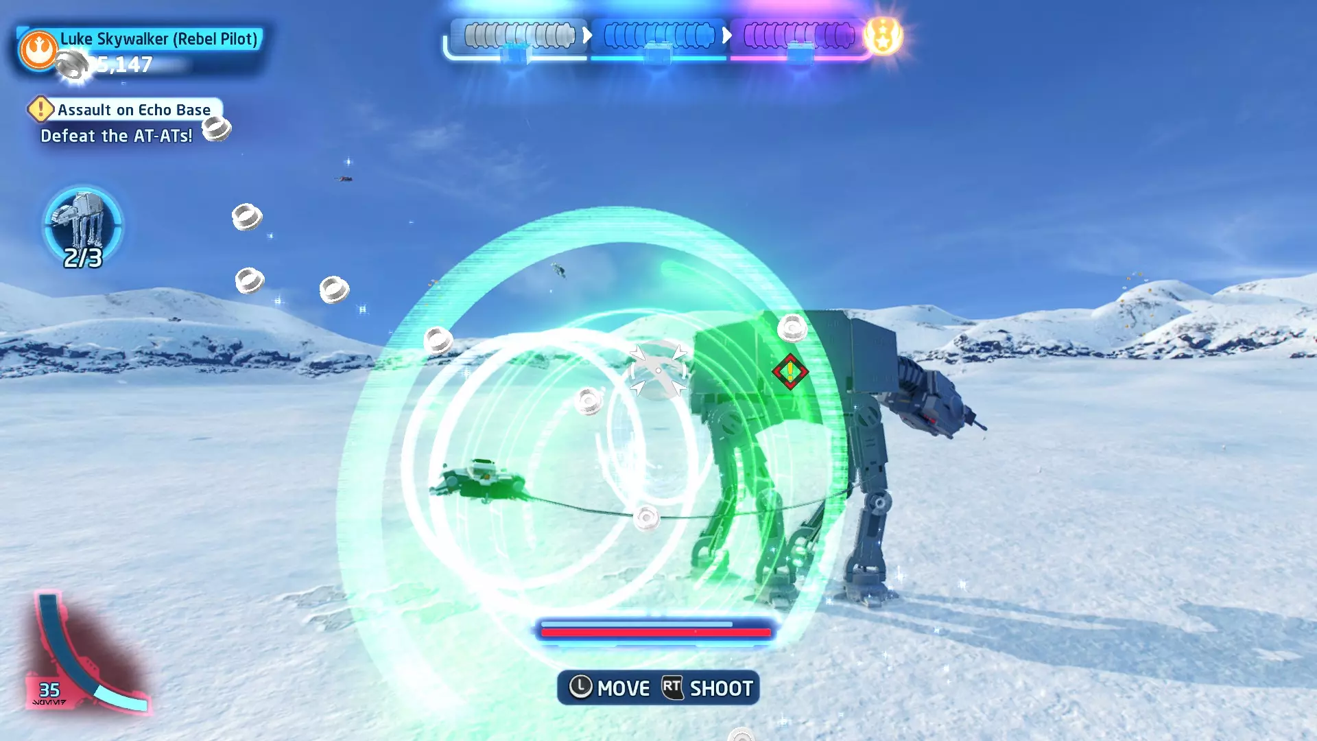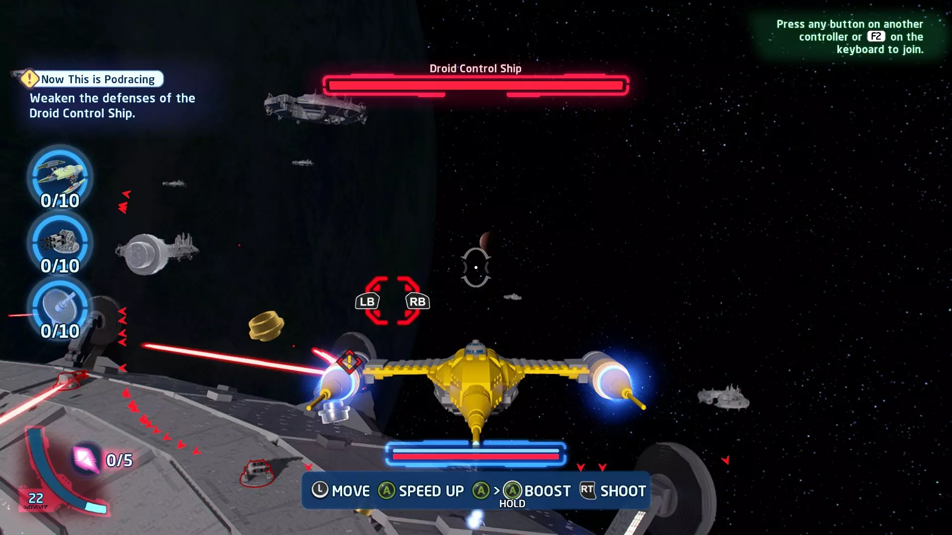 新任务:前往三泡邦戈船坞 过场动画结束后,贾巴·宾克斯将加入队伍。跟随标记前往邦戈船坞,在那里你会找到一个英雄终端。 新任务:寻找打开邦戈船坞入口的方法 让贾巴·宾克斯使用英雄终端降下屏障,这样你就能进入内部。 新任务:驾驶邦戈潜艇穿越星球核心 进入内部,找到开始第一个故事关卡的标记。 解锁角色:贾巴·宾克斯 A Bigger Fish - 故事模式