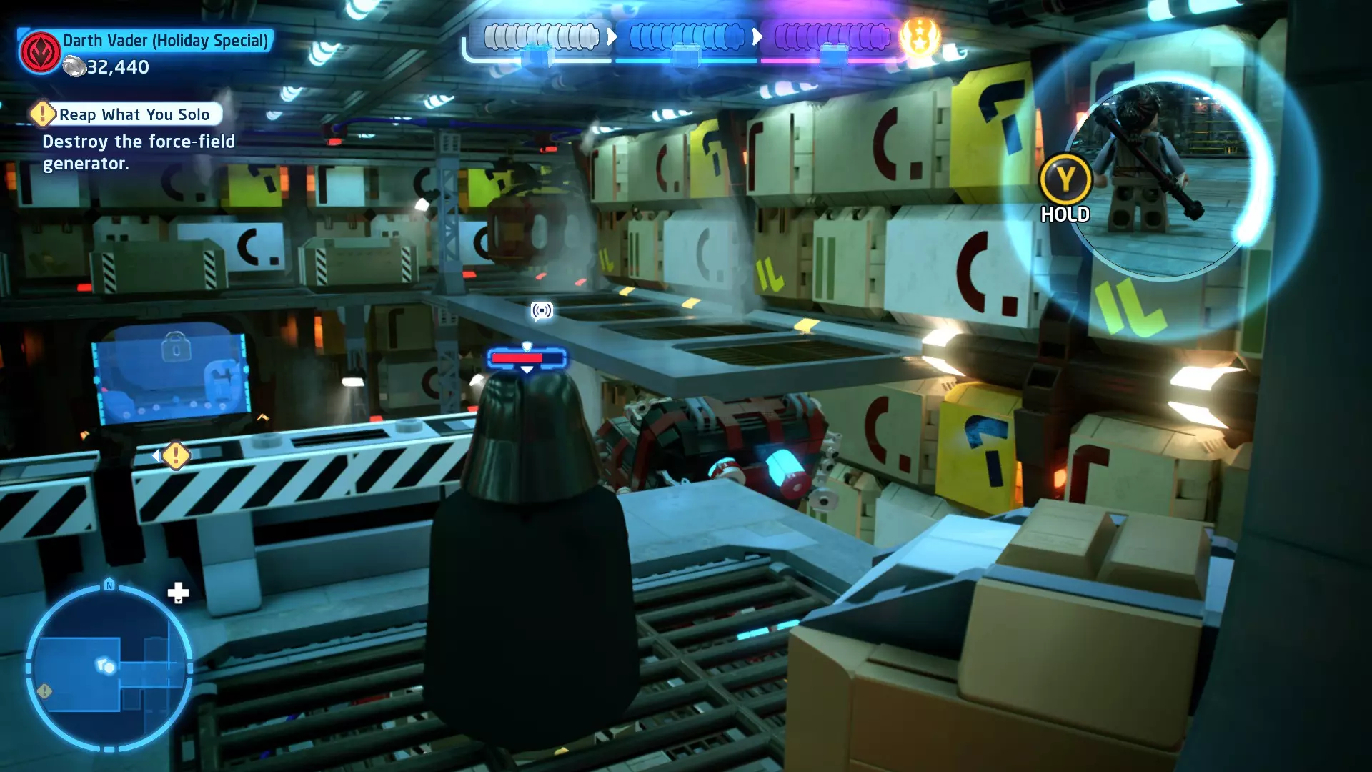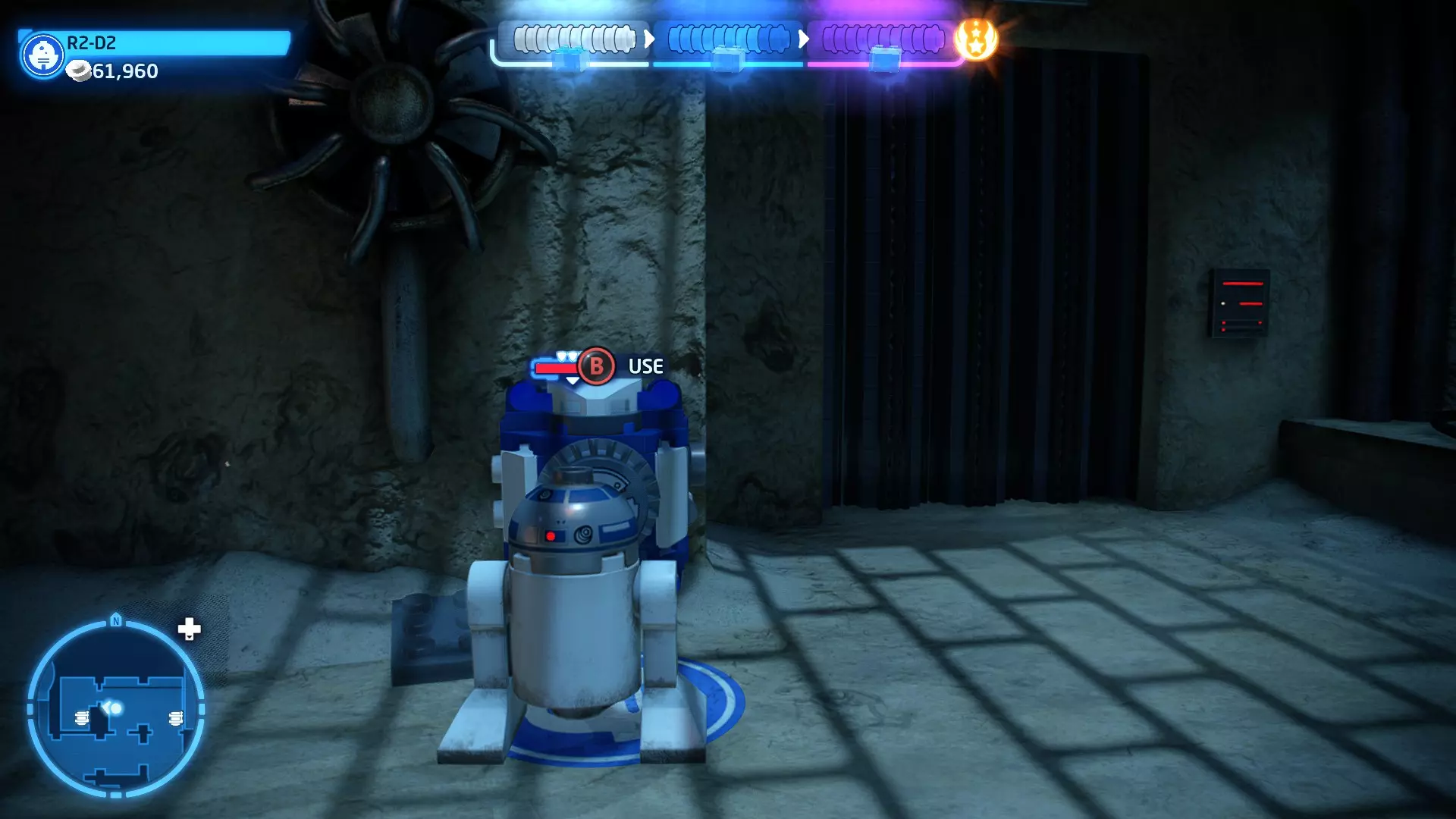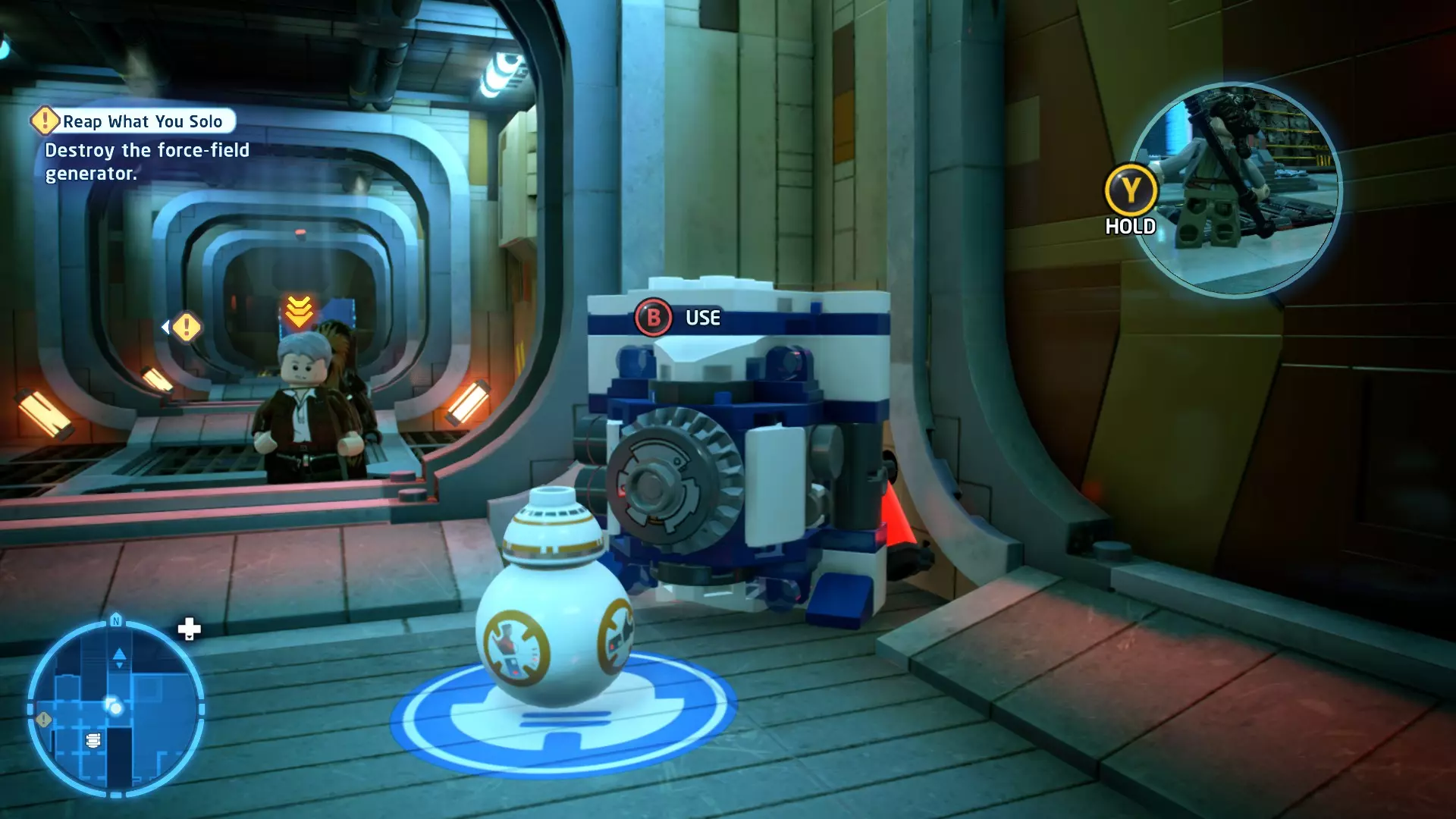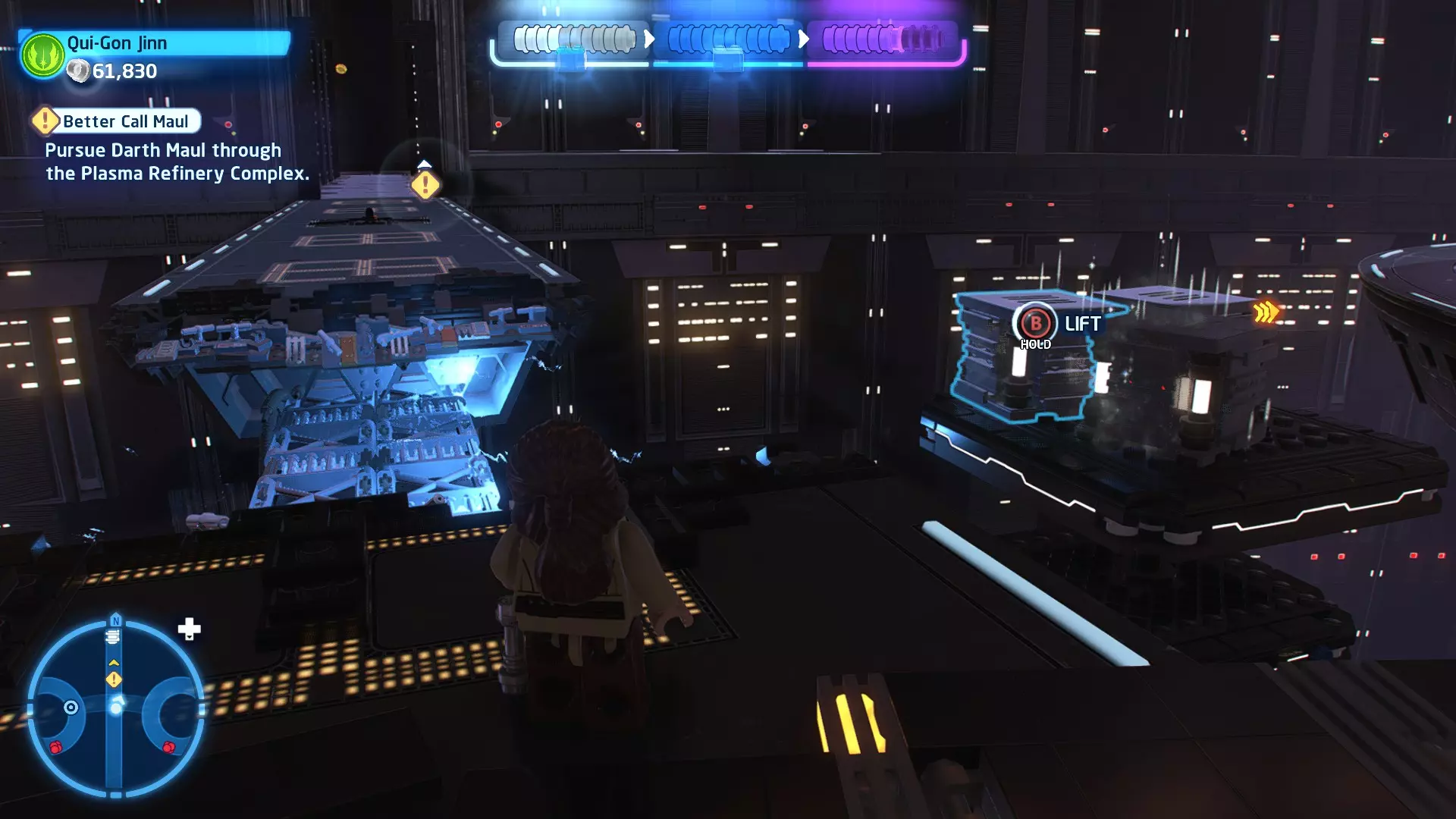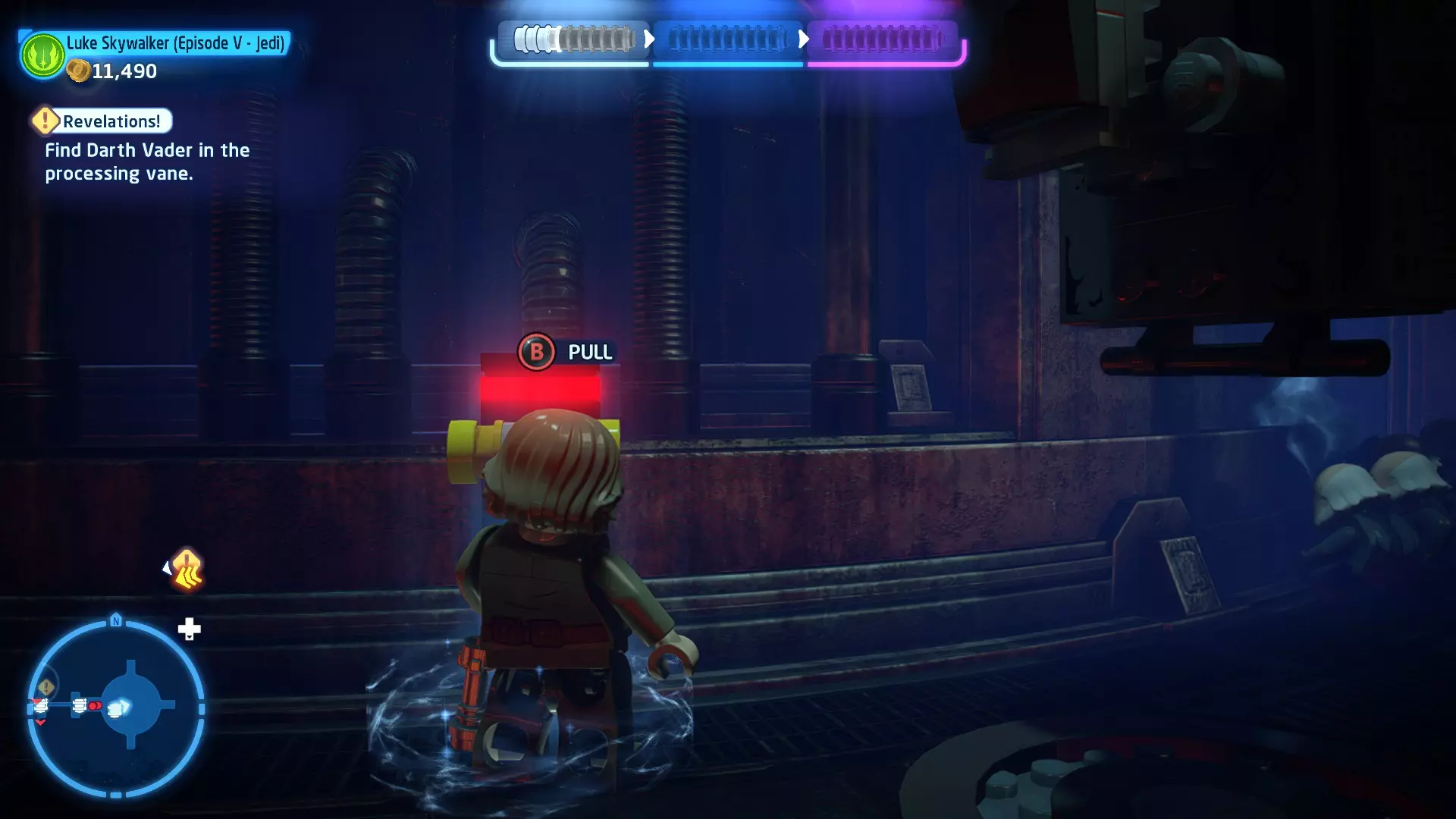拥有此能力的角色可以使用原力与物体互动。可被原力影响的物体会有与你角色光/暗面阵营相对应的彩色轮廓。按住【特殊】键拿起物品,然后再次按下【特殊】键放下物品(或按RT键投掷!)。物品在空中时,你也可以使用方向键移动它们。