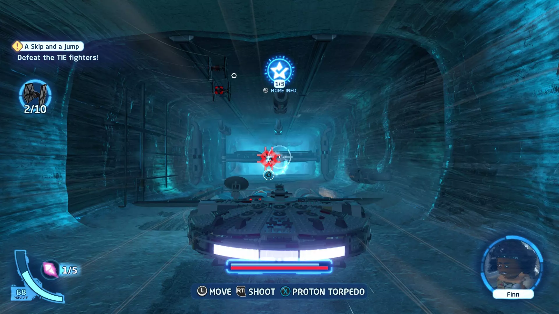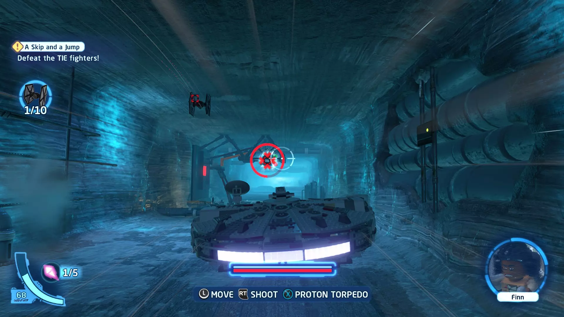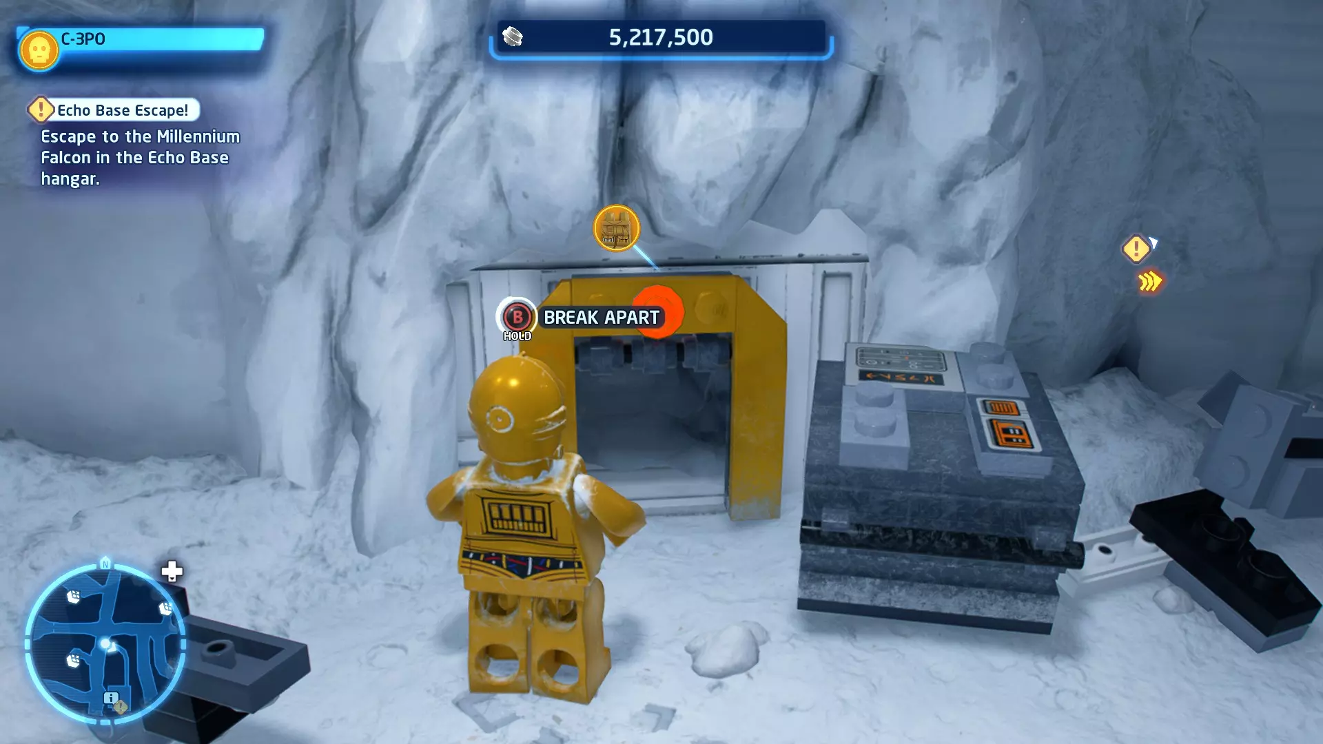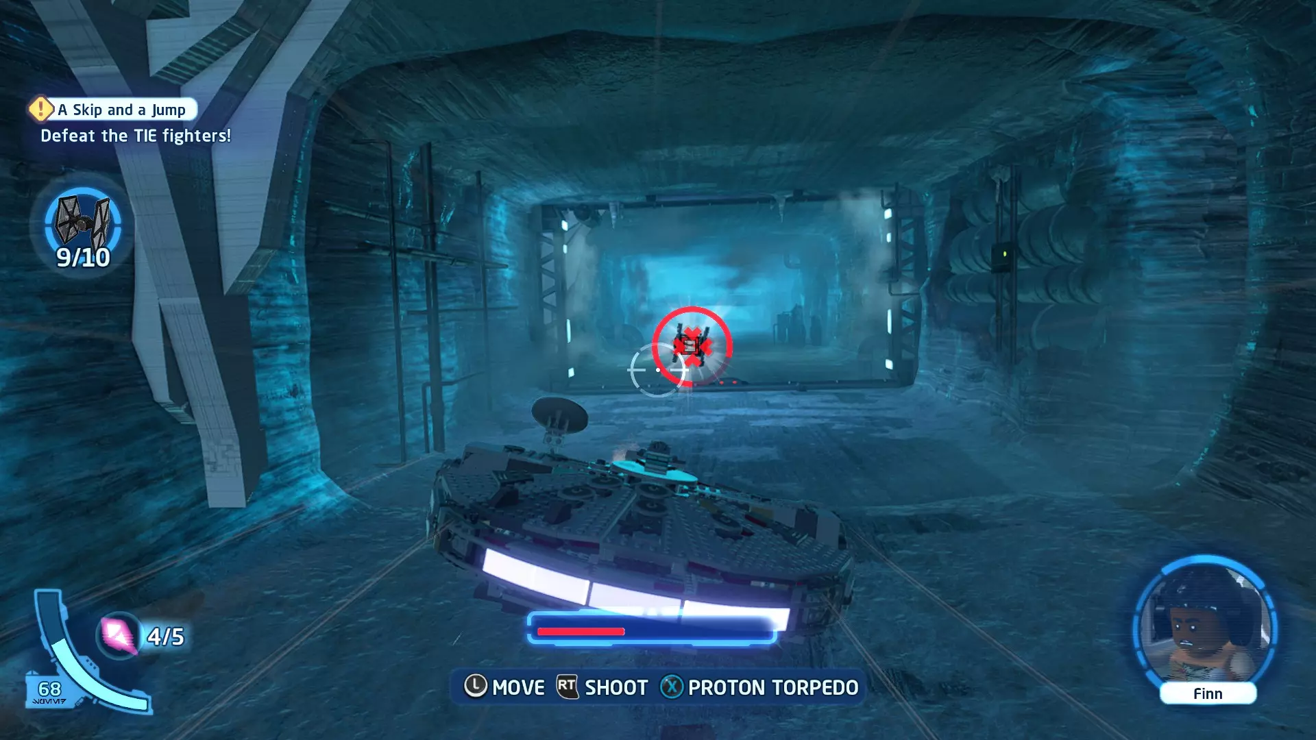 敌人:第一秩序TIE战斗机 初始角色:波·达默龙(第九部)、芬恩(第九部) 初始载具:千年隼号(第九部) 真绝地值:100,000 第一部分 - 逃离辛塔冰川殖民地 当前任务目标:摧毁TIE战斗机! 为了带着布利奥的消息 escape,我们需要击败来袭的TIE战斗机。摧毁10架TIE战斗机,任务目标将更新。 新任务目标:击落起重机! 继续飞行时,你会发现前方有三个标记目标。射击这些目标以击落起重机,并用巨石砸向TIE战斗机! 新任务目标:逃离第一秩序! 大部分TIE战斗机已被消灭,是时候进行光速跳跃了!按照出现的按钮提示操作以躲避TIE战斗机,完成本关卡。已解锁角色:芬恩(第九部)、波·达默龙(第九部)、布利奥(100,000) 已解锁载具:千年隼(第九部) 一小跳 - 迷你套件 注意:这些迷你套件会随机出现在关卡各处,与你选择飞行的隧道无关。每个迷你套件都会被标记为目标(周围有红色方框),以便你更容易发现它们 迷你套件1 - 起重机与收获