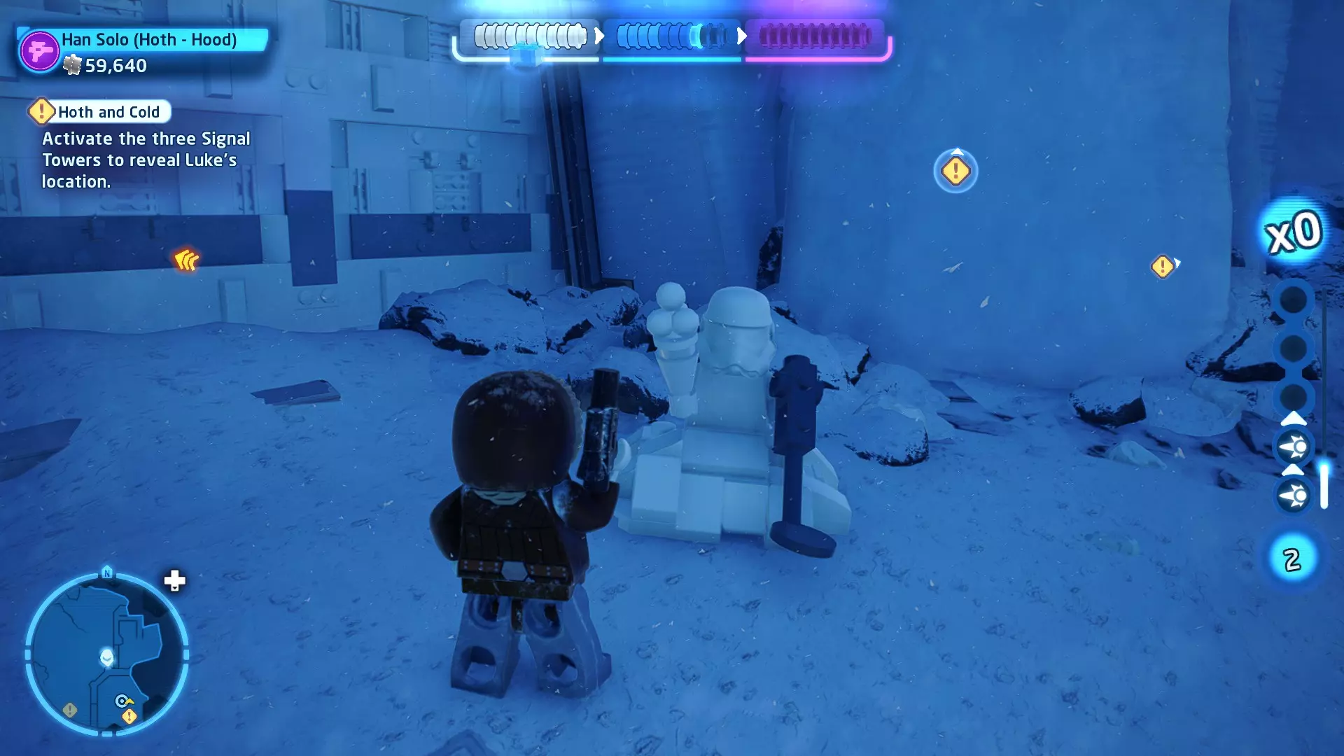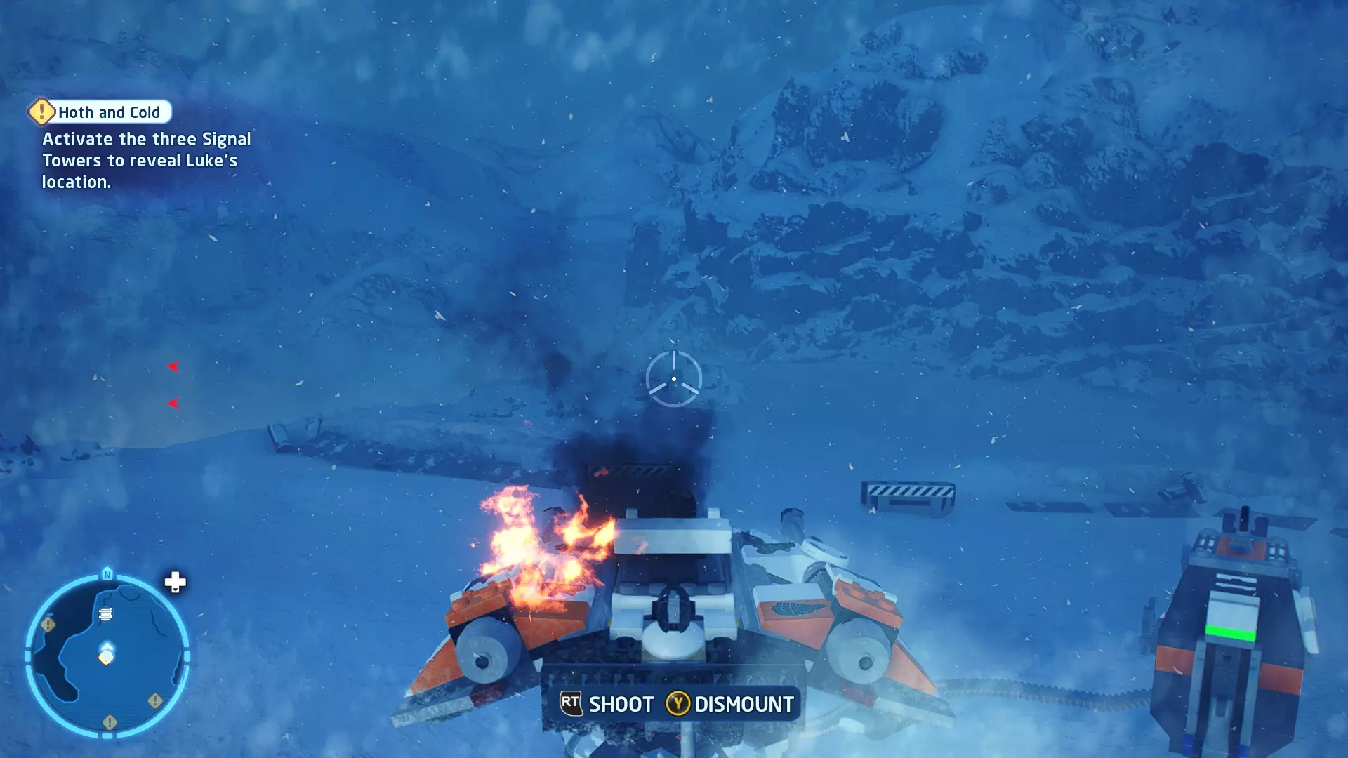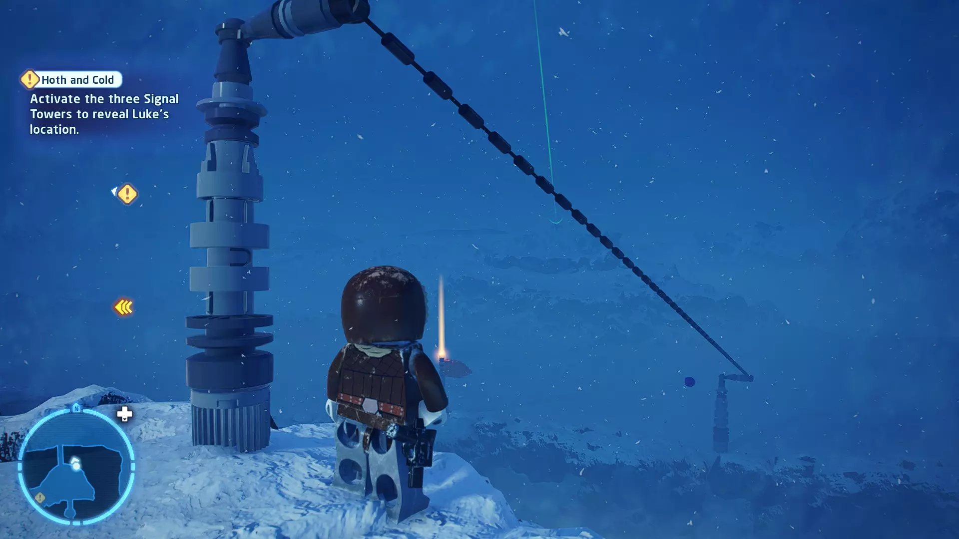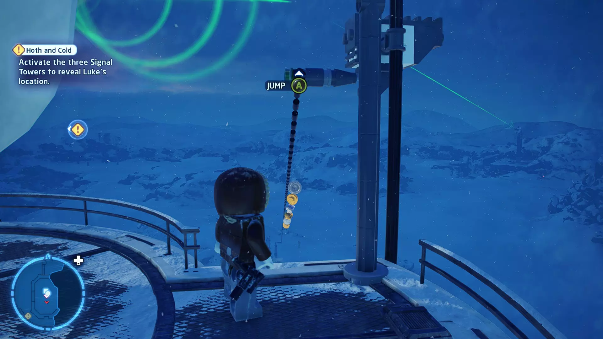 敌人:第一秩序TIE战斗机 初始角色:波·达默龙(第九部)、芬恩(第九部) 初始载具:千年隼号(第九部) 真绝地值:100,000 第一部分 - 逃离辛塔冰川殖民地 当前任务目标:摧毁TIE战斗机! 为了带着布利奥的消息 escape,我们需要击败来袭的TIE战斗机。摧毁10架TIE战斗机,任务目标将更新。 新任务目标:击落起重机! 继续飞行时,你会发现前方有三个标记目标。射击这些目标以击落起重机,并用巨石砸向TIE战斗机! 新任务目标:逃离第一秩序! 大部分TIE战斗机已被消灭,是时候进行光速跳跃了!按照出现的按钮提示操作以躲避TIE战斗机,完成本关卡。已解锁角色:芬恩(第九部)、波·达默龙(第九部)、布利奥(100,000) 已解锁载具:千年隼(第九部) 一小跳 - 迷你套件 注意:这些迷你套件会随机出现在关卡各处,与你选择飞行的隧道无关。每个迷你套件都会被标记为目标(周围有红色方框),以便你更容易发现它们 迷你套件1 - 起重机与收获