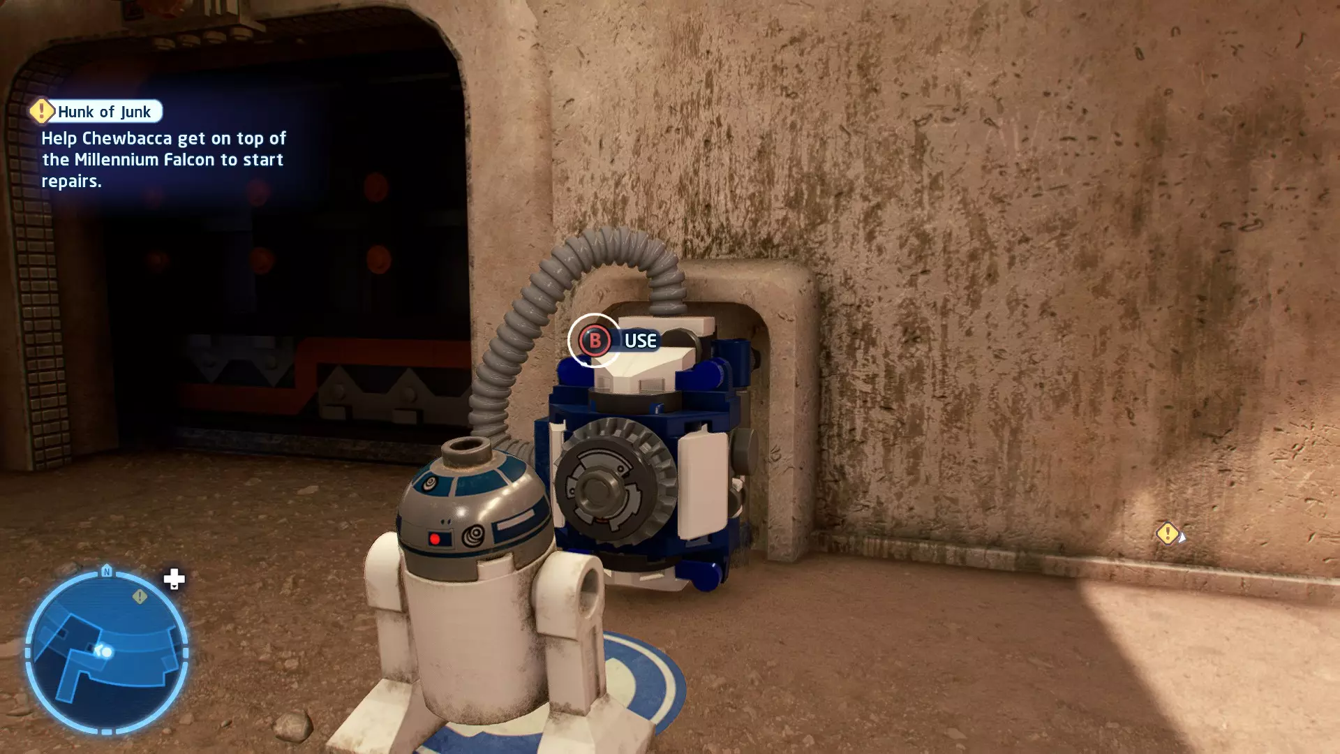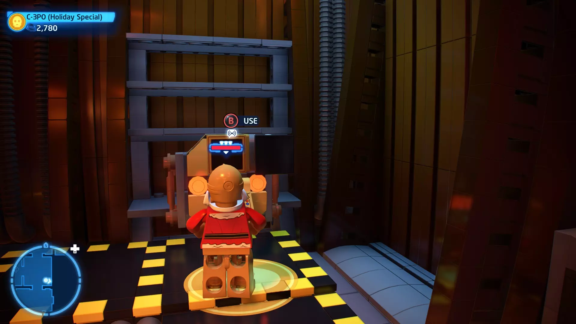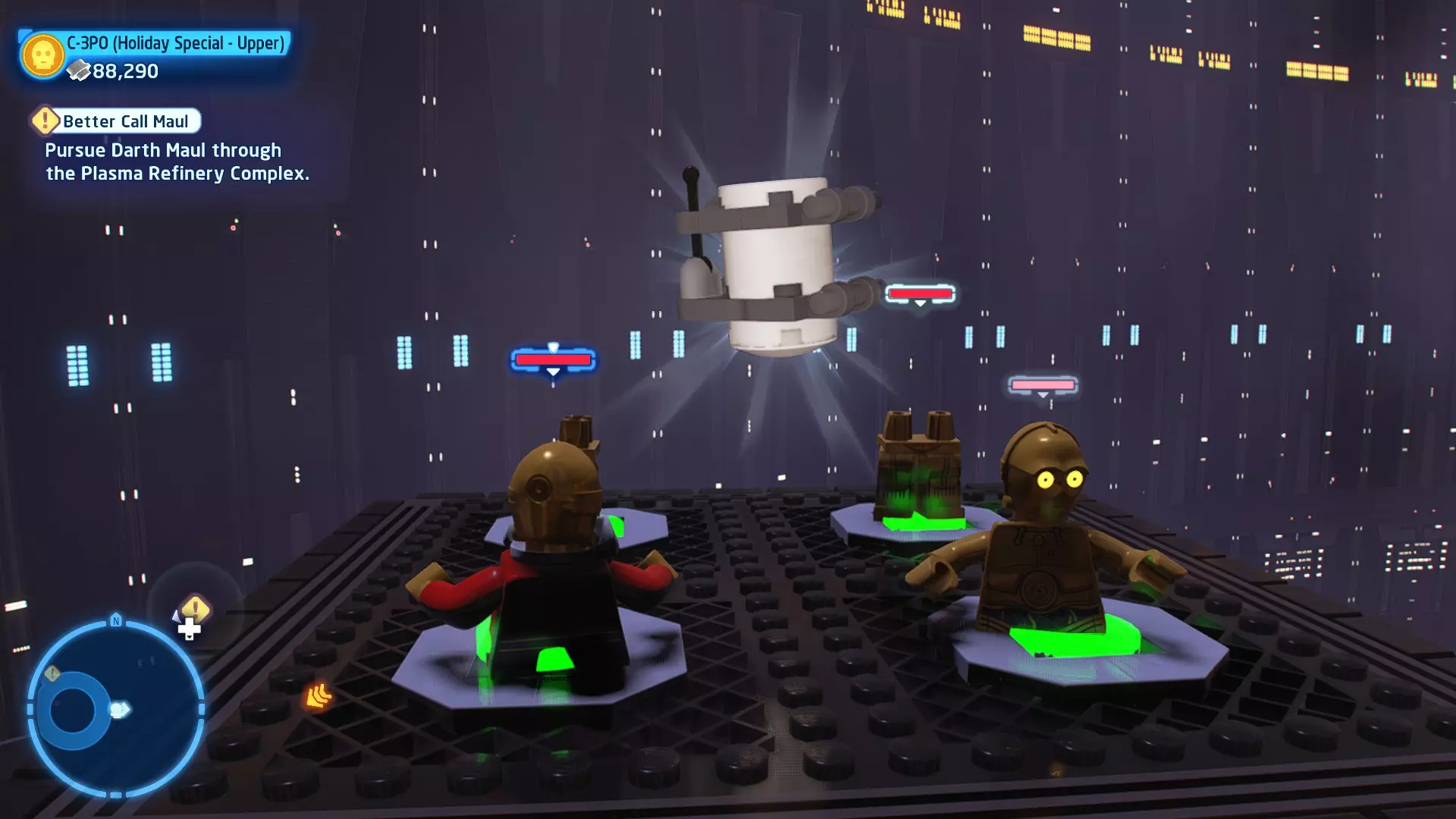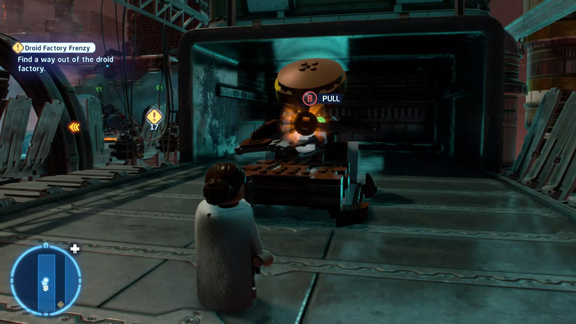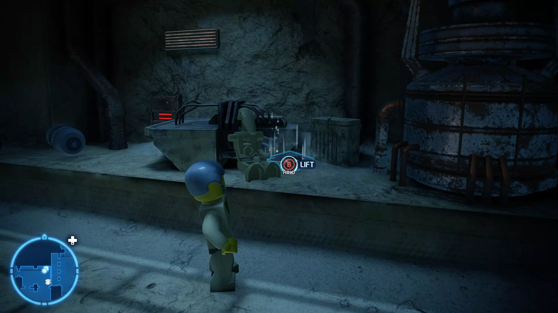 敌人:基吉米恶棍、第一秩序寒地突击士兵、第一秩序军官(基吉米) 初始角色:芬恩(基吉米外套)、蕾伊(基吉米外套)、C-3PO(基吉米外套) 真绝地分数:90,000 第一部分 - 基吉米城 当前目标:跟随波穿过基吉米的街道 跟随波沿街前行,你会遇到第一秩序的巡逻队。短暂过场后,波会着手开门。但电源已被切断,你需要想办法恢复电力。 幸运的是,在附近的小巷(UA-TT步行机所在的 ledge 下方)可以找到一个能量核心。拿起能量核心并放入插槽中打开门,即可继续前进。继续沿街走,你会遇到更多士兵。新目标:找到通过上锁大门的方法 你会遇到两名第一秩序士兵,波会指示你悄悄靠近其中一人并将其解决。走到一人身后,按照按钮提示将其解决(波会解决另一名士兵)。接下来你需要解决屋顶上的士兵。射击其中一名士兵将其解决(波会解决另一名),然后继续朝大门前进。 这扇大门也被锁住了,我们需要找到另一个能量核心来打开它。返回楼梯下方,摧毁发光的箱子以露出能量核心,然后使用原力将其从插槽中取出。拿起能量核心并带回楼梯上方,接着使用原力堆叠箱子,这样你就能跳上大门上方的 ledge。将能量核心放入插槽以打开大门,这样你就能继续前进。 新目标:跟随波伊穿过基吉米的街道 沿着街道继续前进,你会遭到一些基吉米恶棍的袭击! 新目标:抵御恶棍的攻击! 击败来袭的恶棍后,第一秩序巡逻队将会出现! 新目标:让第一秩序通过或与他们战斗! 随后会有一支第一秩序巡逻队经过该区域。正如你的任务目标所示,你可以选择让士兵通过,或者从藏身之处出来与他们战斗。一旦士兵离开,将会播放一段过场动画。 新目标:找到通过锁着的大门的方法 由佐丽带路,跟随她和波伊走上台阶,朝大门走去。佐丽会拿出一个能量核心,为大门供能。不幸的是,电源将会短路,导致大门无法打开。对大门使用原力,然后按方向键上打开大门,即可继续前进。 新任务目标:尽可能安静地抵达巴布·弗里克的工坊 巴布·弗里克的工坊位于庭院的另一边,有以下几种抵达方式: 1. 战斗 2. 潜行 3. 清理庭院 战斗:你可以直接穿过庭院,疯狂冲向巴布的工坊。虽然这会暴露你的行踪,但却是抵达工坊最简单的方法。如果被士兵发现,你需要先击败庭院内的所有敌人才能进入工坊。 潜行:虽然比其他方法更具挑战性,但也可以悄悄穿过庭院。沿着庭院外围移动,避开黄色圆圈(这些代表士兵的视野范围)。你可以使用潜行攻击来消灭遇到的任何士兵。 清理庭院:你也可以通过清理庭院内的士兵到达巴布的工坊。要做到这一点,你需要激活庭院北侧的反派终端。你可以通过给芬恩穿上伪装(使用本关卡早些时候士兵掉落的盔甲碎片),或者悄悄靠近正在使用面板的军官并对他使用“影响”心灵控制术来完成。 已解锁角色:C-3PO(基吉米外套)、C-3PO(红眼)、芬恩(基吉米外套)、波·达默龙(基吉米外套)、蕾伊(基吉米外套)、佐里·布利斯 C-3P-哦不!- 迷你套件 所需能力:拆解、爆破、原力、抓钩、网发射器 迷你套件1 - 夜晚发出声响的贡克机器人