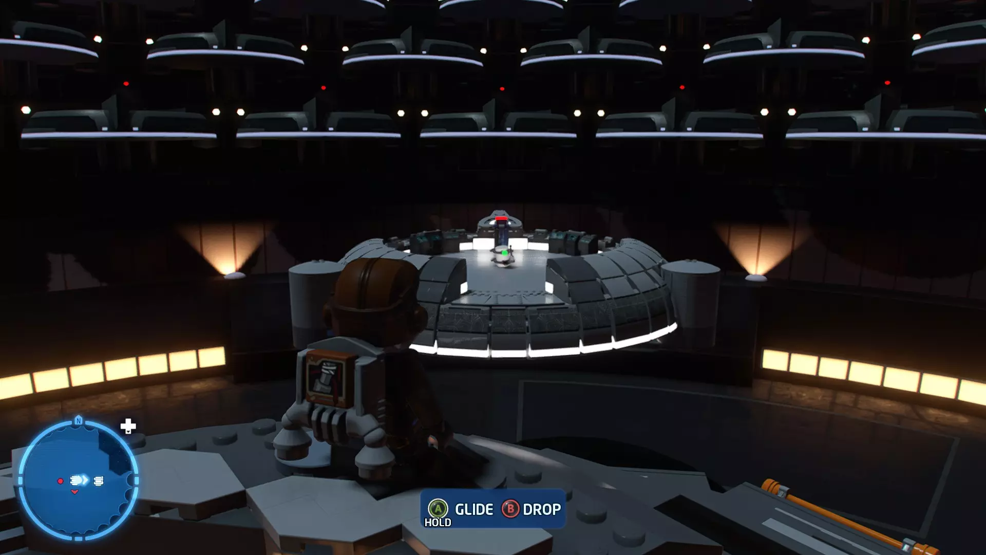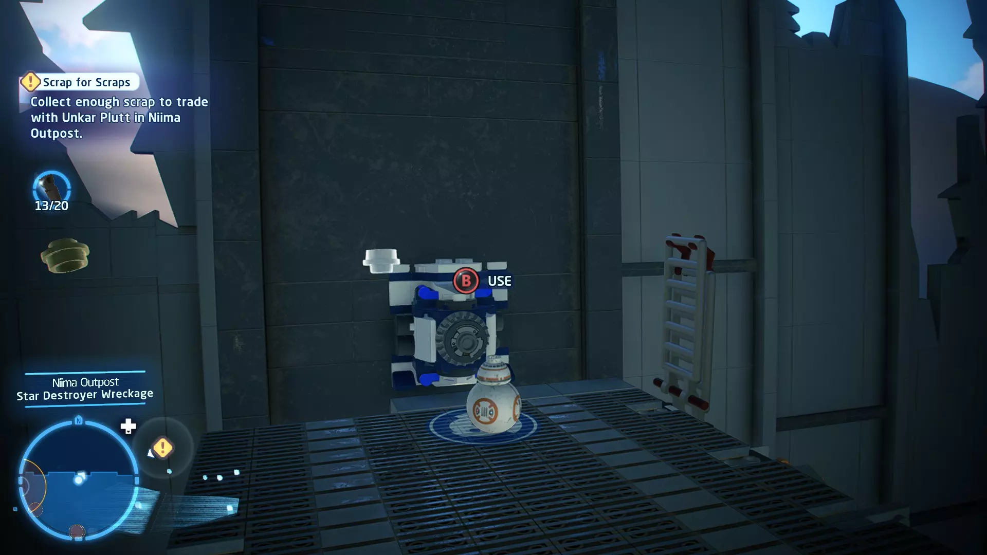 用TIE匕首飞船搭建桥梁后,对驾驶舱使用原力。按下方向键下打开驾驶舱,即可收集该迷你套件。 迷你套件4 - 成功之梯