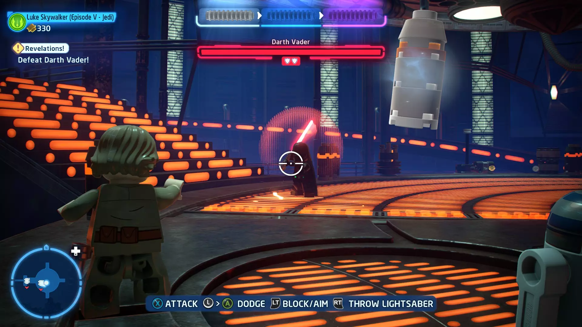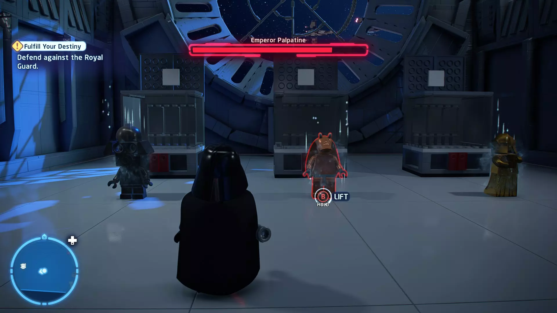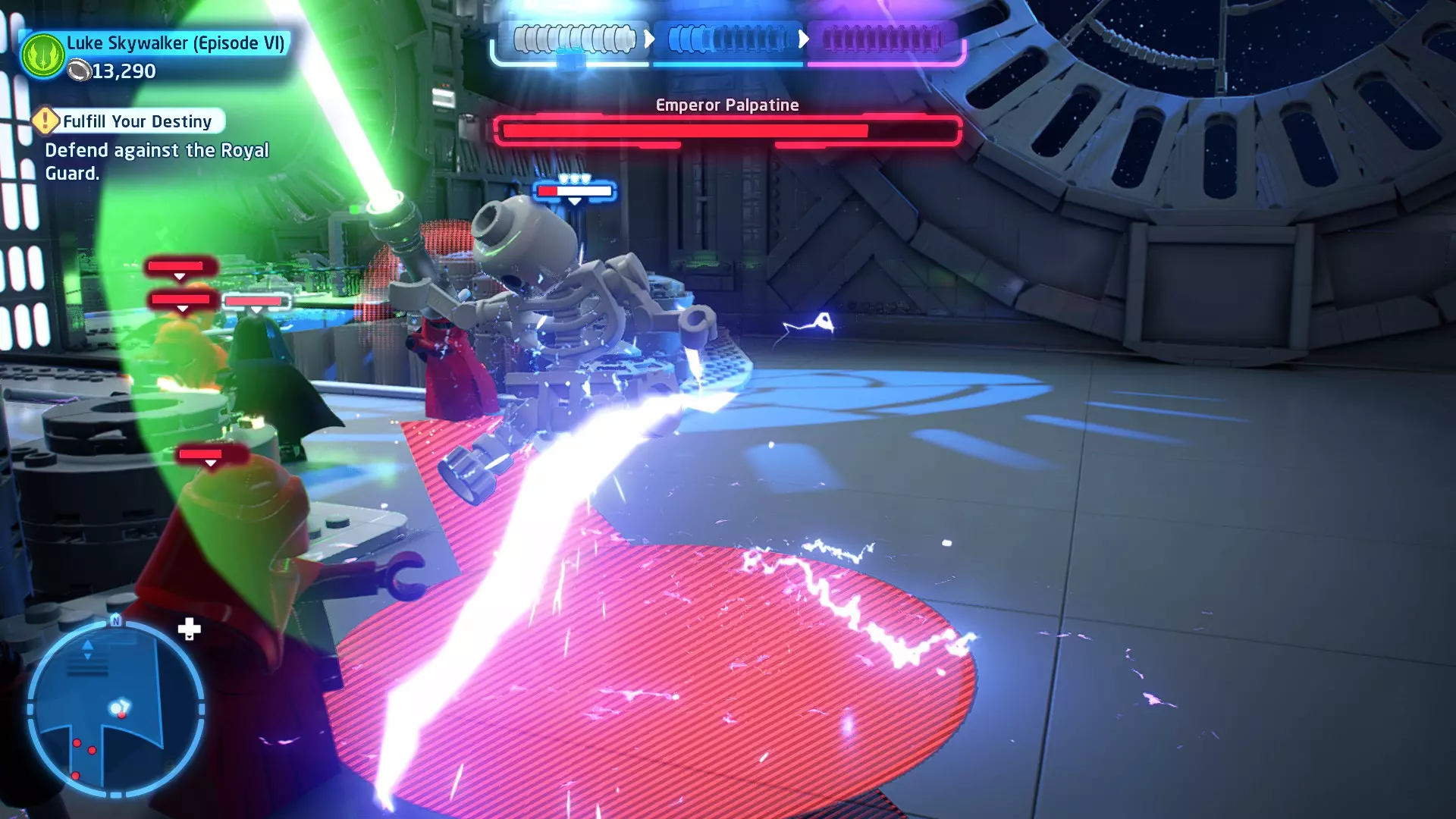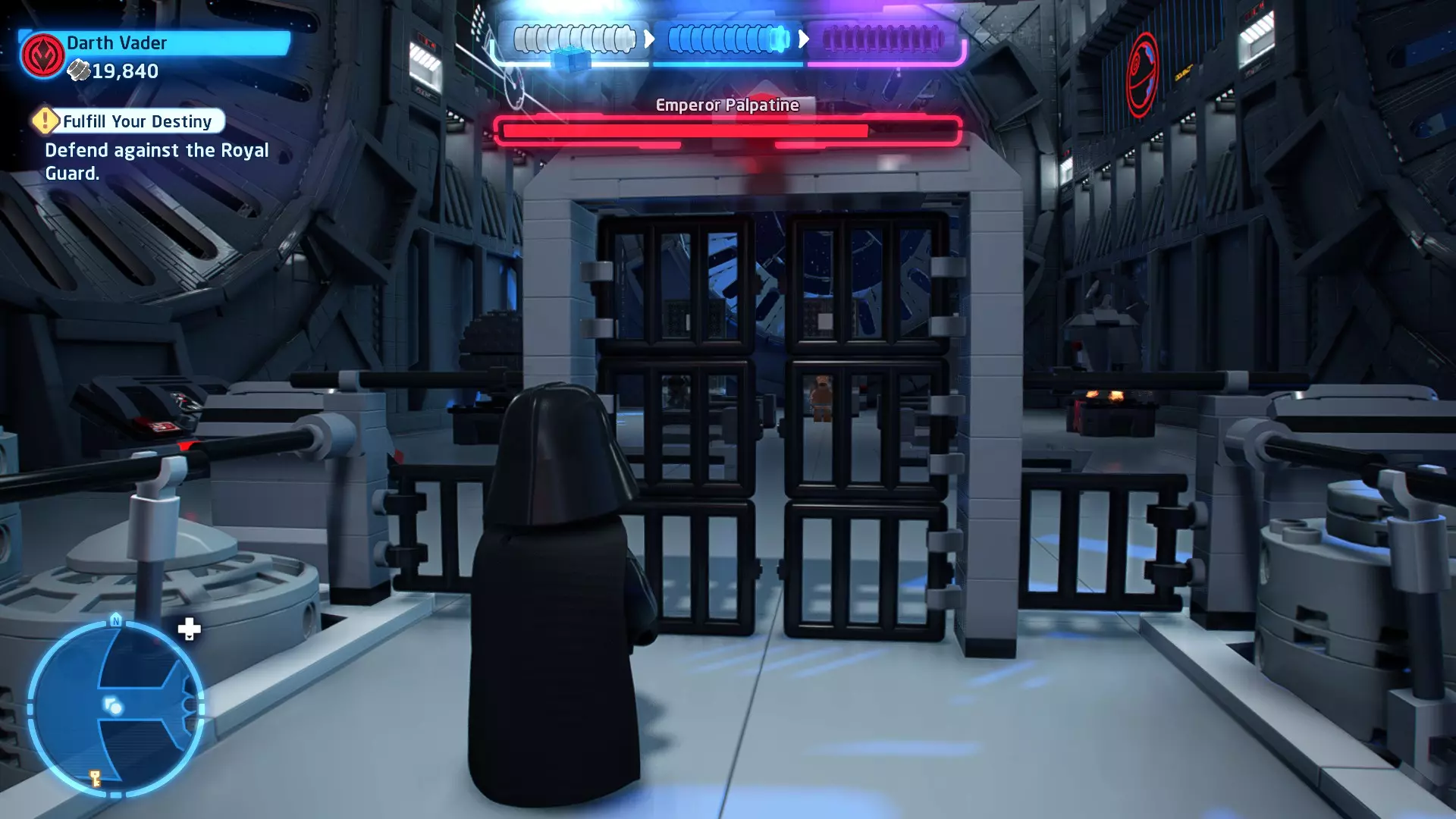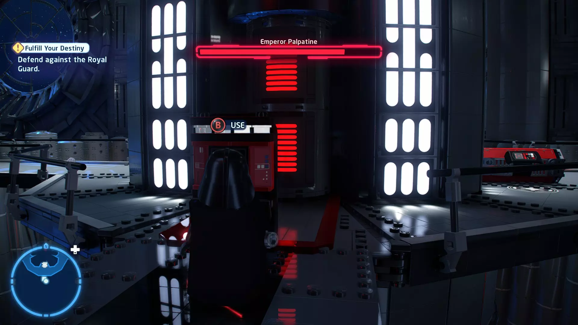 这应该相当简单。确保避开帕尔帕廷的闪电攻击,以及伦武士的重型攻击。最好采取防御性决斗,只在安全时发动攻击。如果对此感到困难,可以考虑从【核心升级】菜单中购买【额外生命值】升级。