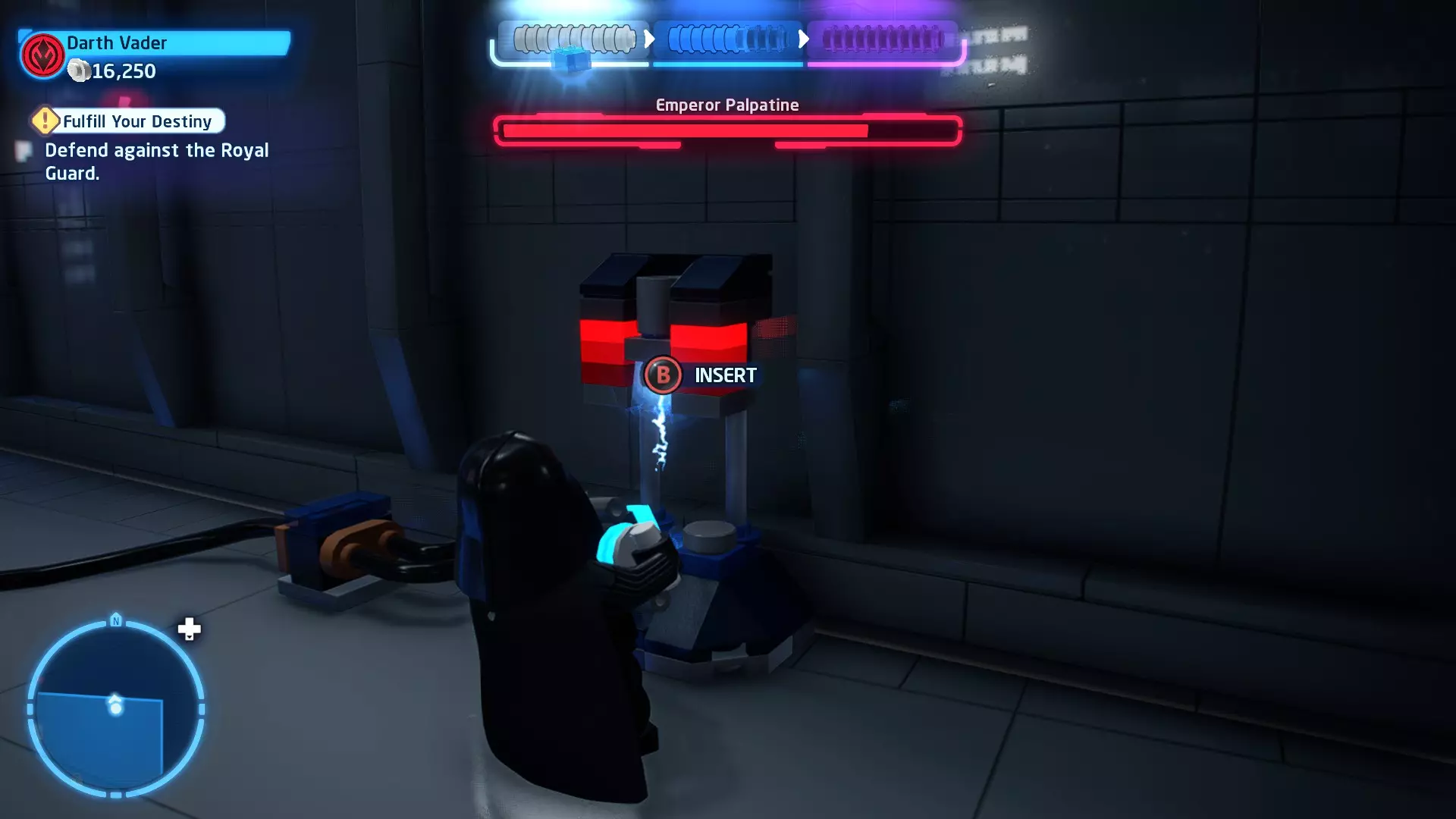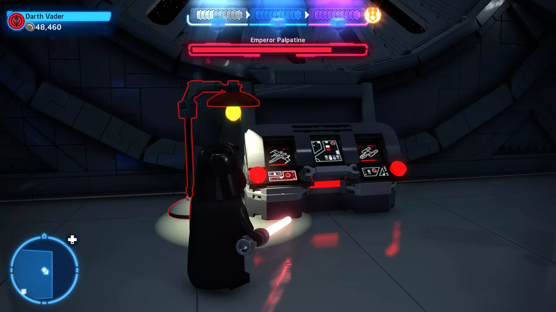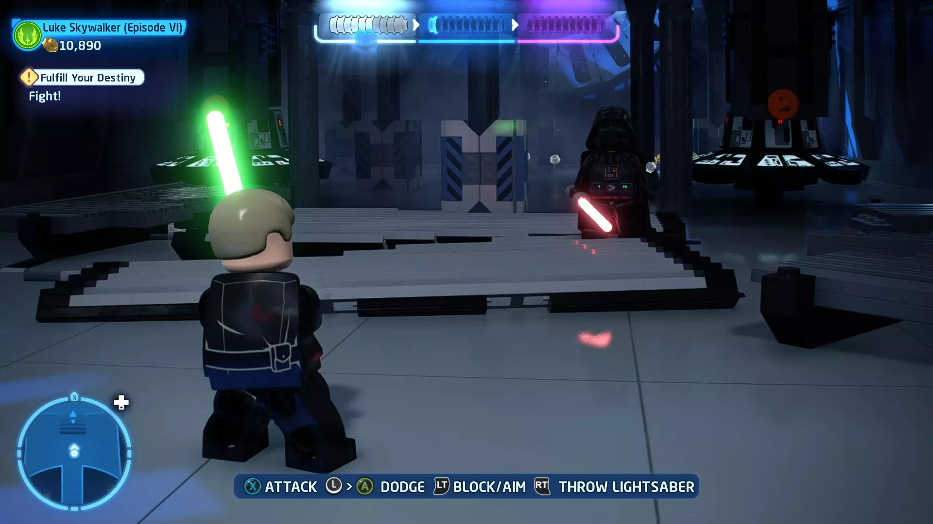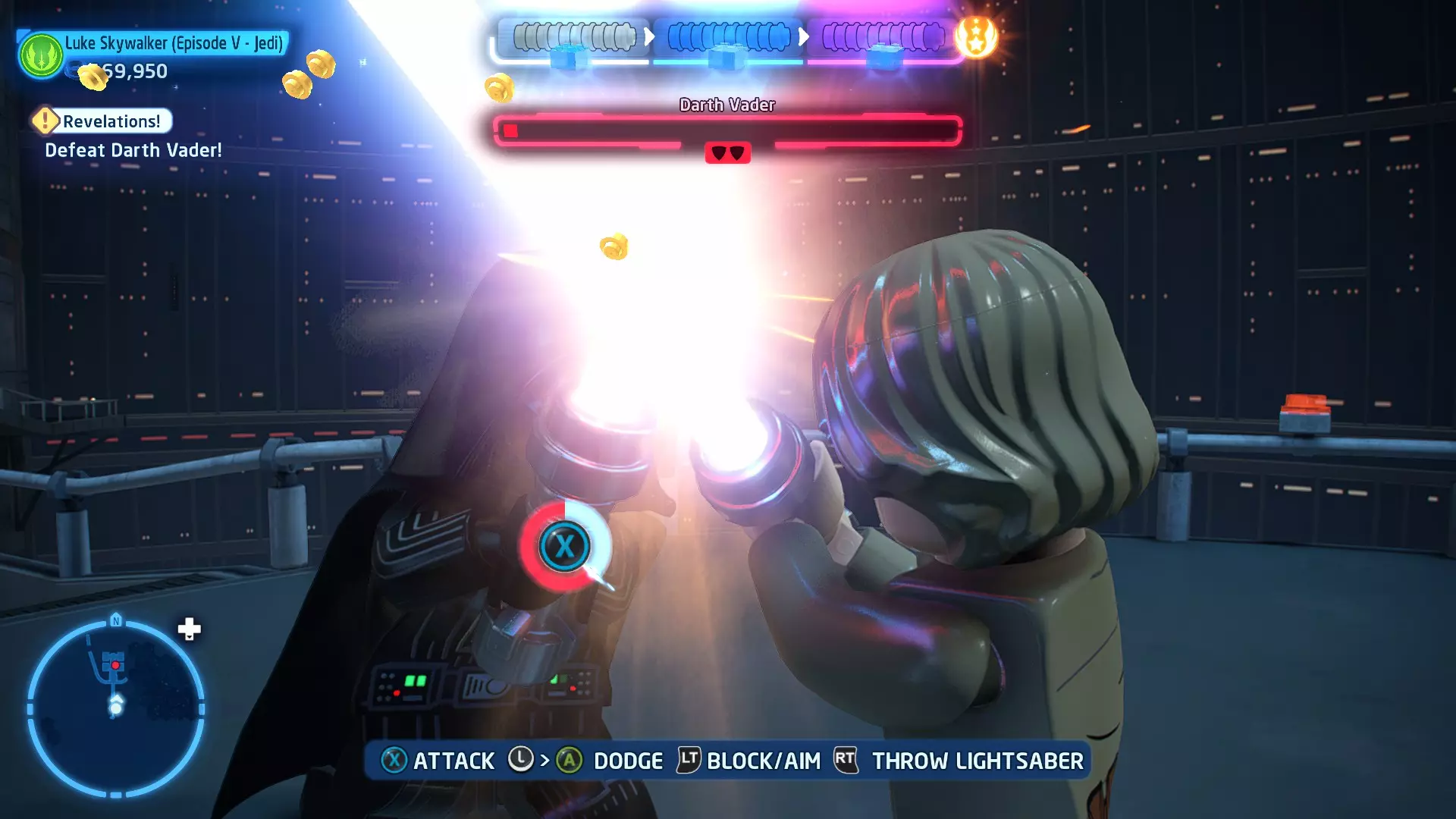 这应该相当简单。确保避开帕尔帕廷的闪电攻击,以及伦武士的重型攻击。最好采取防御性决斗,只在安全时发动攻击。如果对此感到困难,可以考虑从【核心升级】菜单中购买【额外生命值】升级。