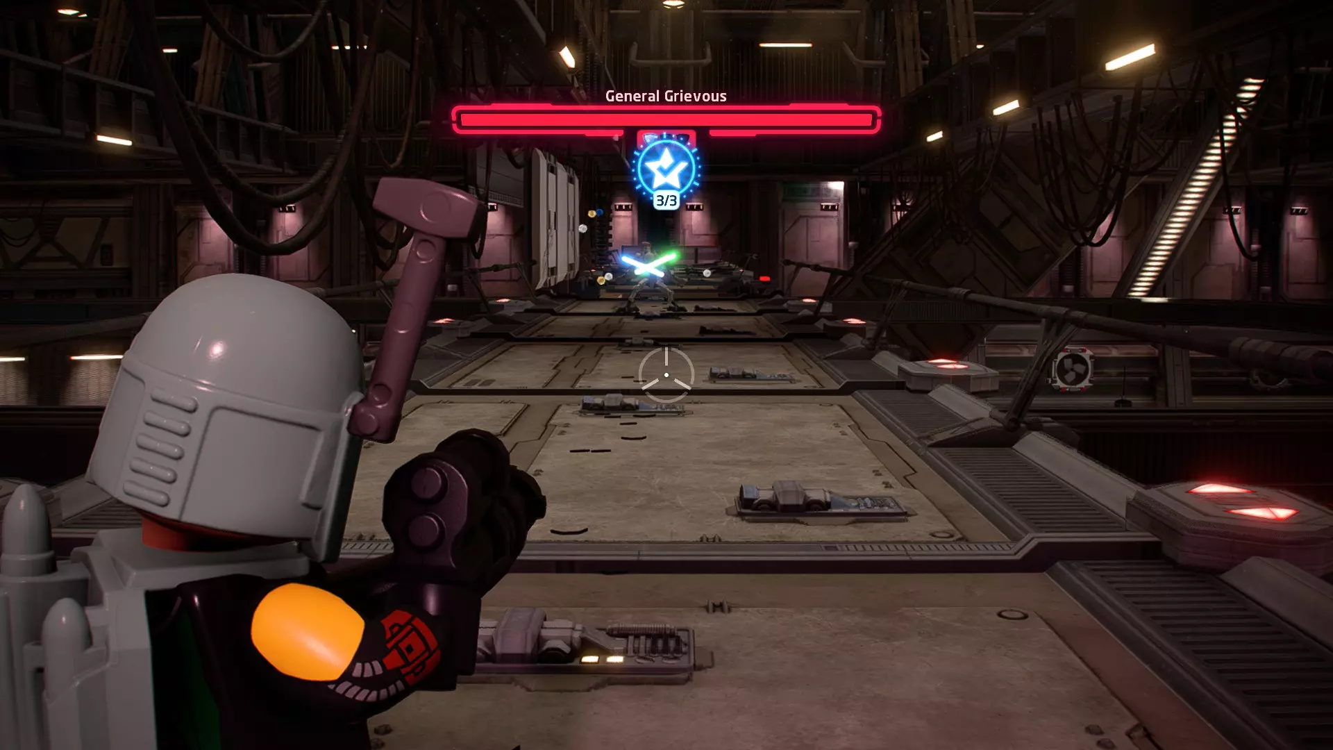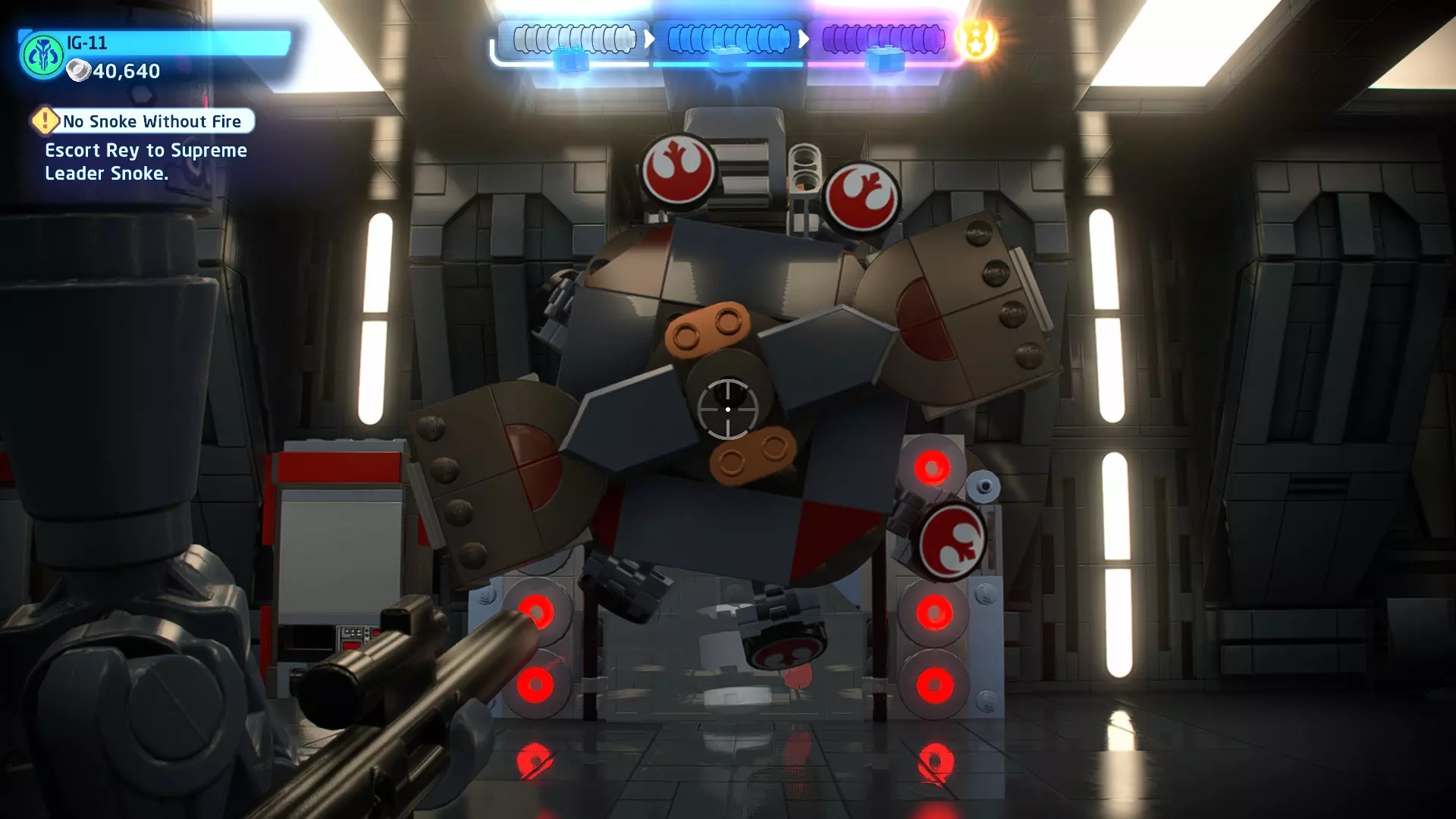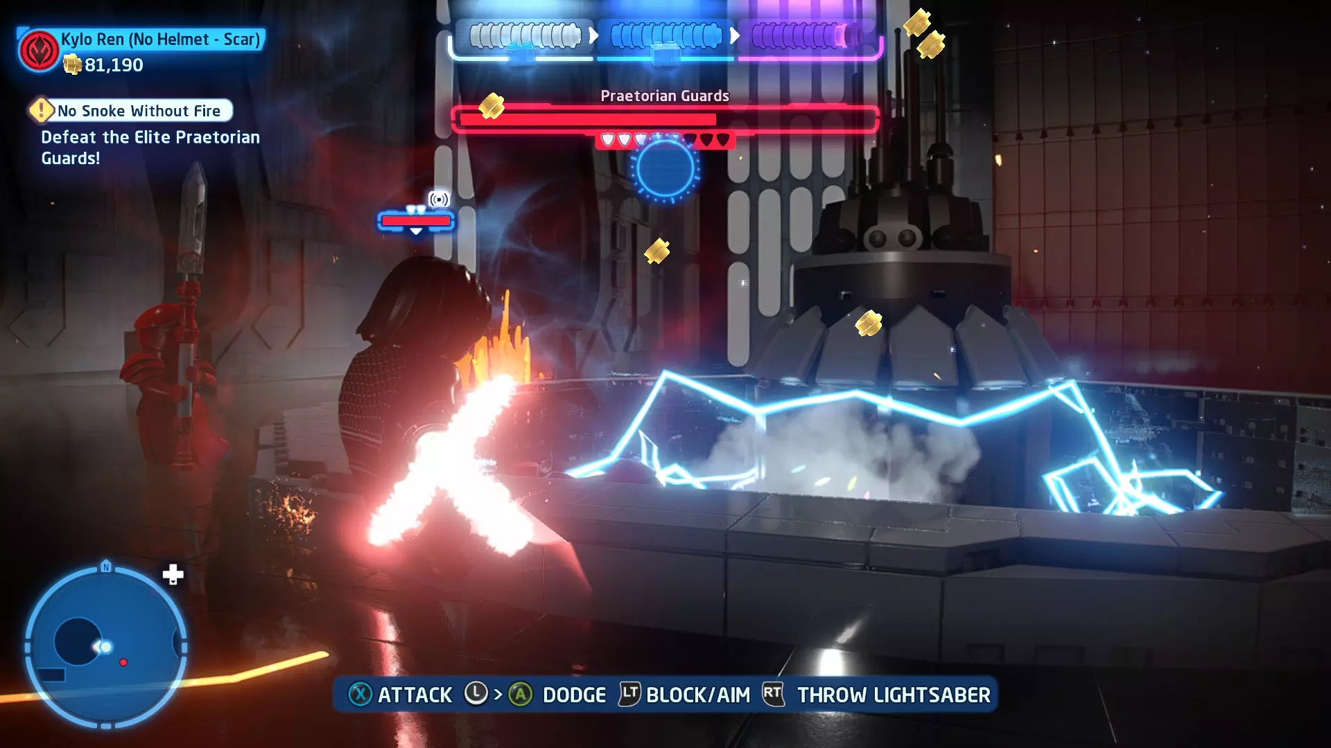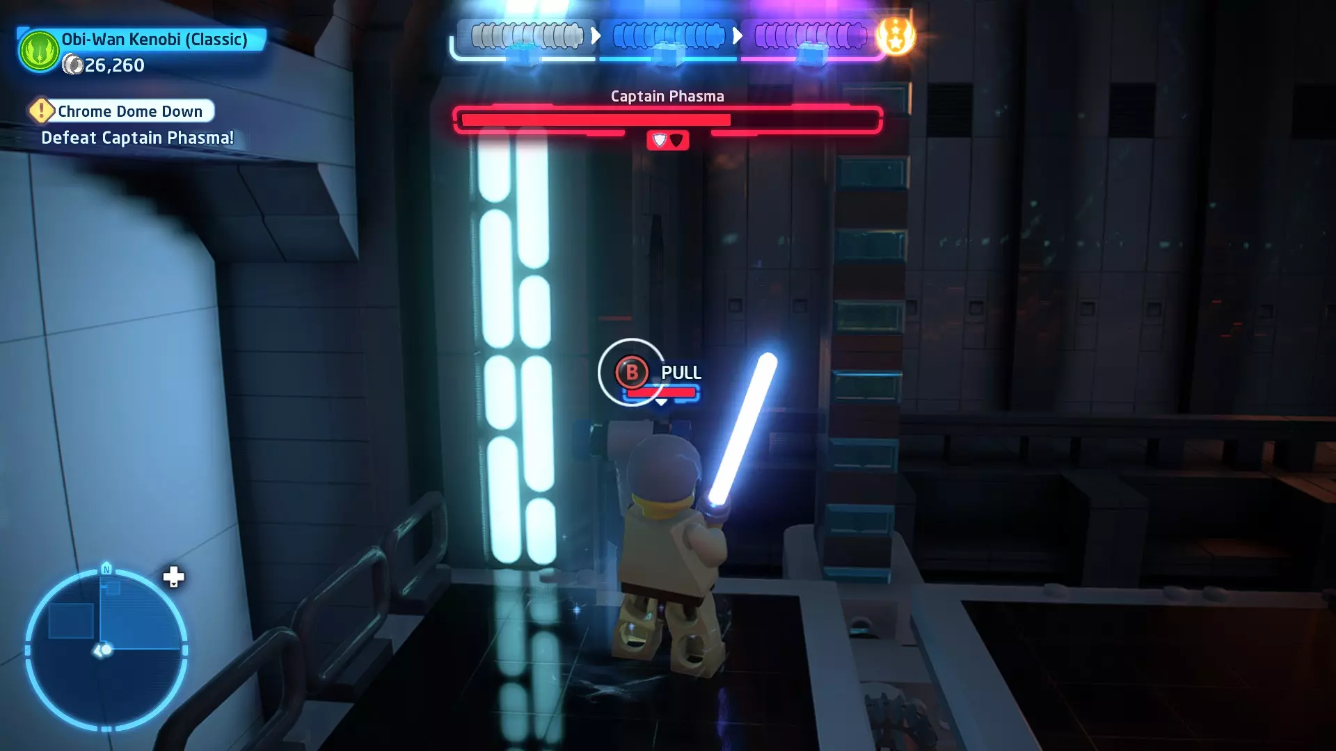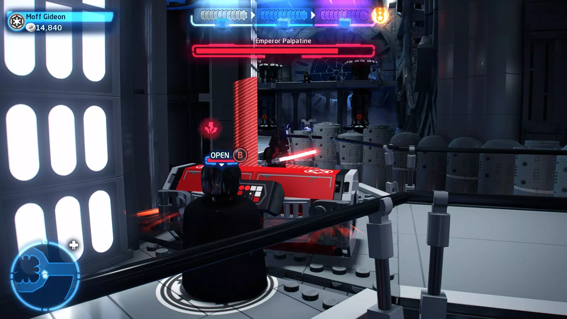 这应该相当简单。确保避开帕尔帕廷的闪电攻击,以及伦武士的重型攻击。最好采取防御性决斗,只在安全时发动攻击。如果对此感到困难,可以考虑从【核心升级】菜单中购买【额外生命值】升级。
