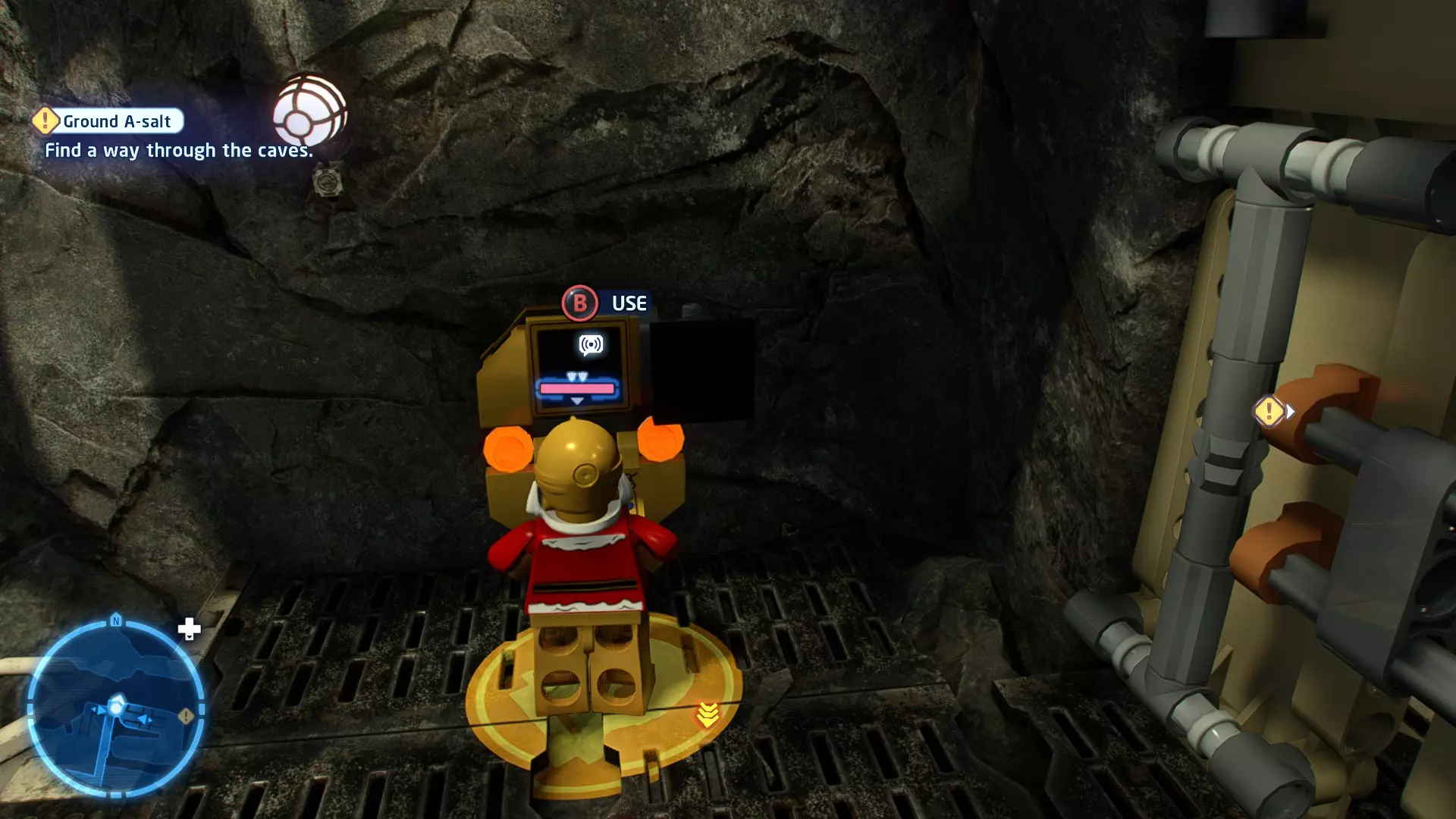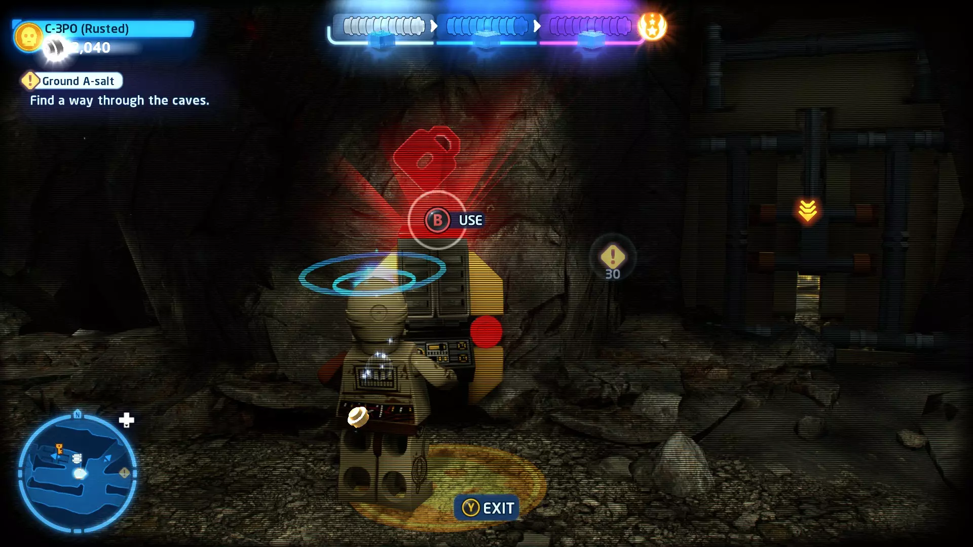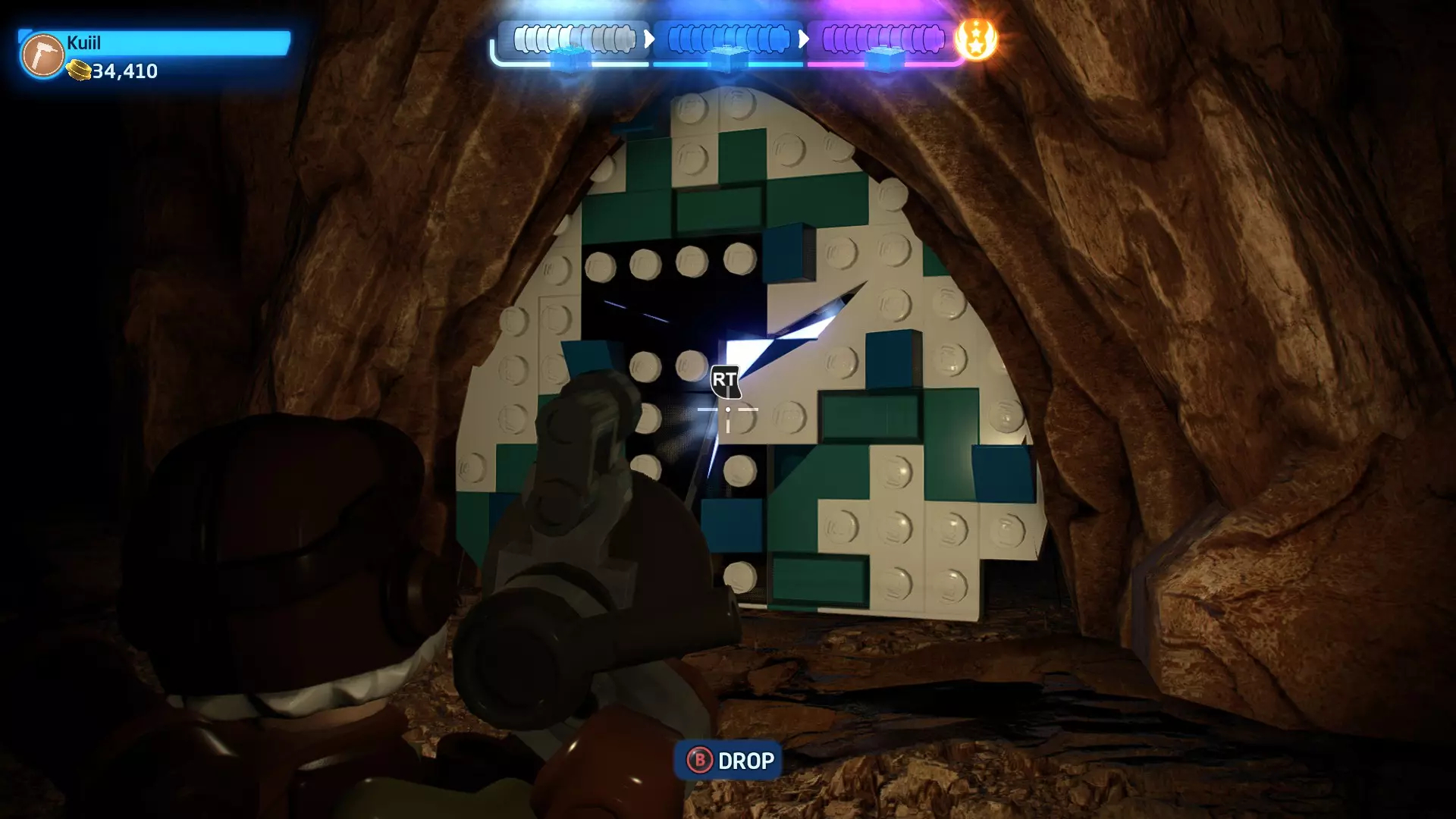 摧毁它以露出另一块拼图,然后使用原力将其放置到图案上的正确位置。完成图案后,你就能收集到这个迷你套件。 迷你套件3 - 塌陷洞穴