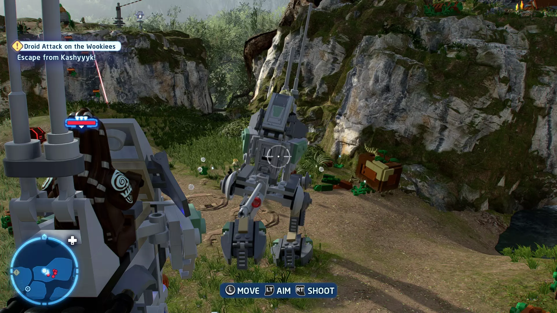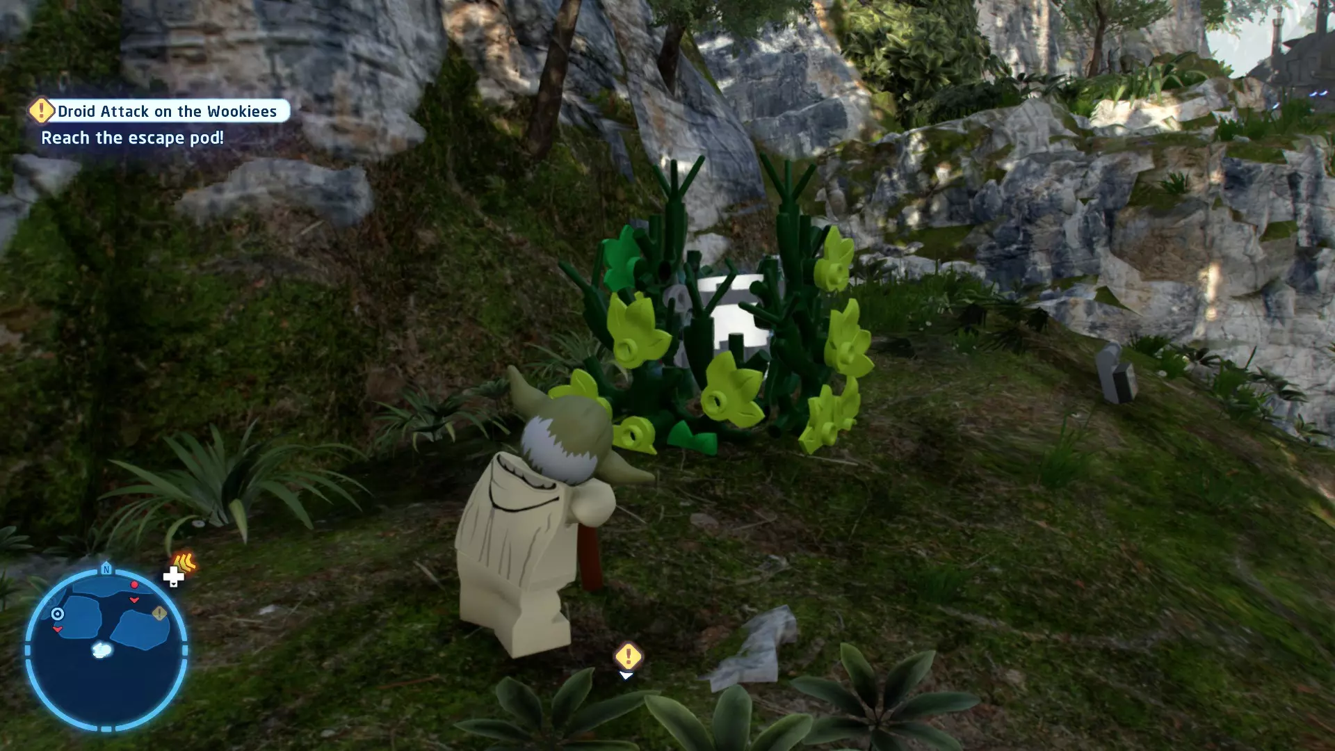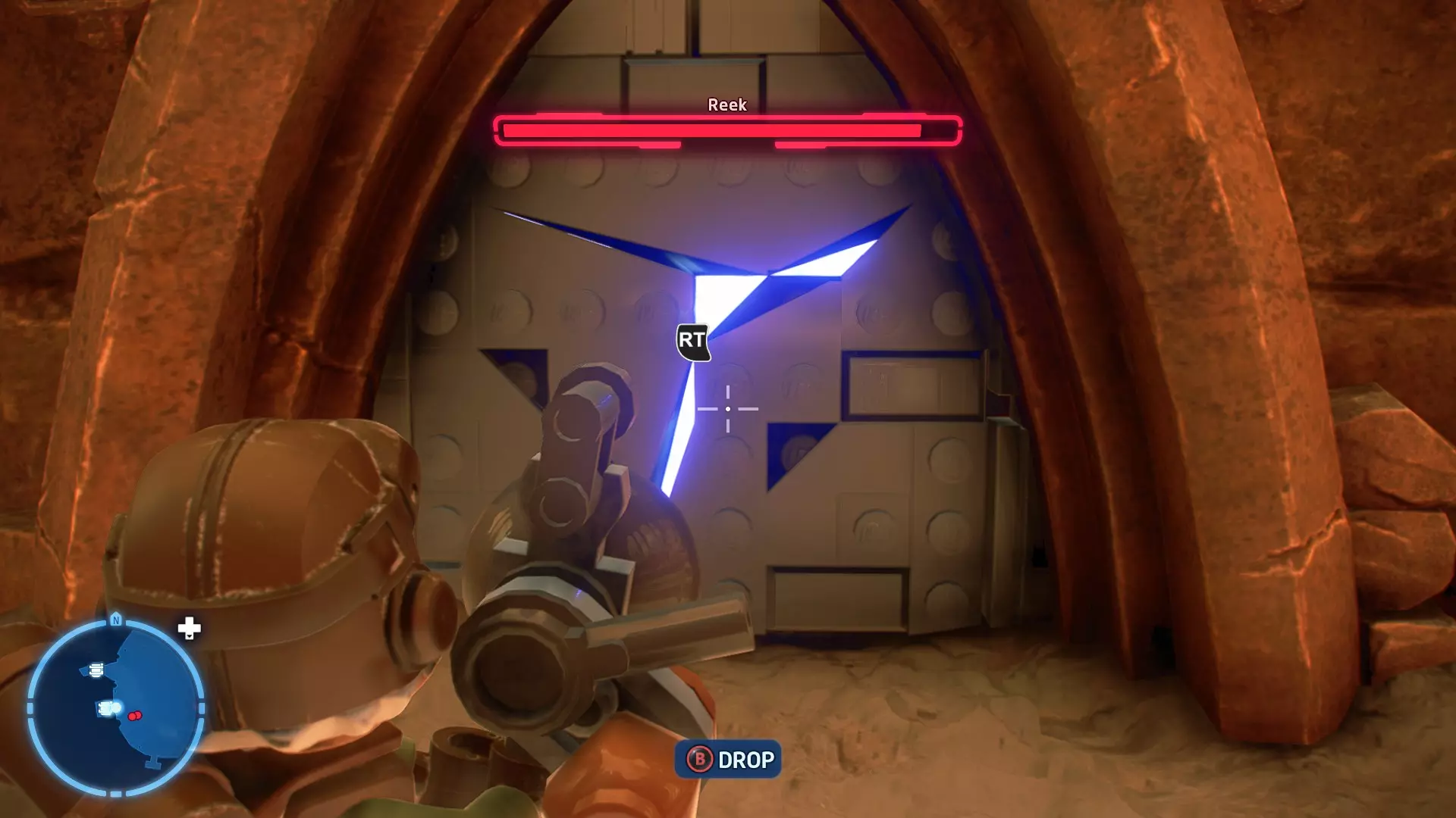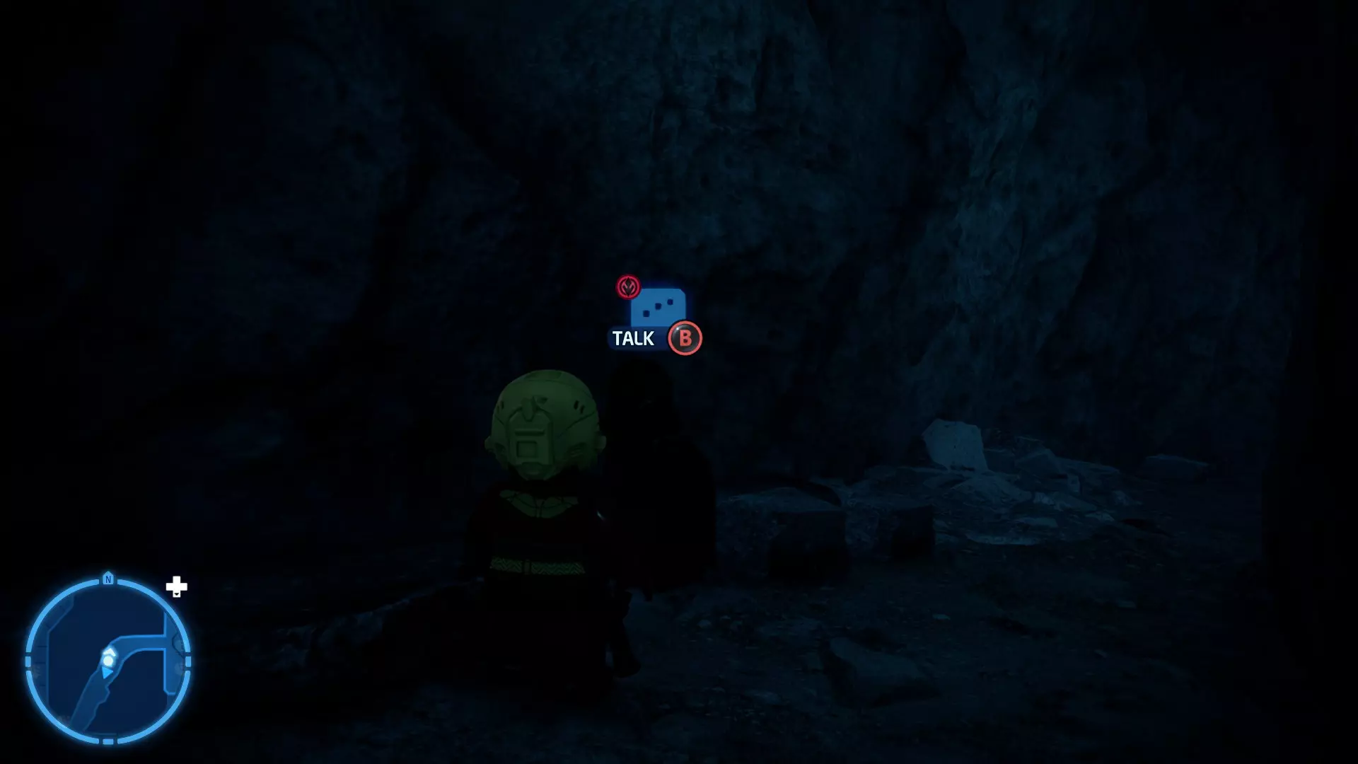穿过洞穴后,你会在一片空地上追上沃尔普斯兽。在前方路径的左侧,你会发现一面有裂缝的墙壁。使用破拆爆能枪摧毁它,就能找到这个迷你套件。 微型飞船:凯洛·伦的穿梭机(微型) 地面突袭 - 关卡挑战 所需能力:抓钩、英雄、协议 挑战1 - 我能挖! 详情:一路打穿水晶洞穴