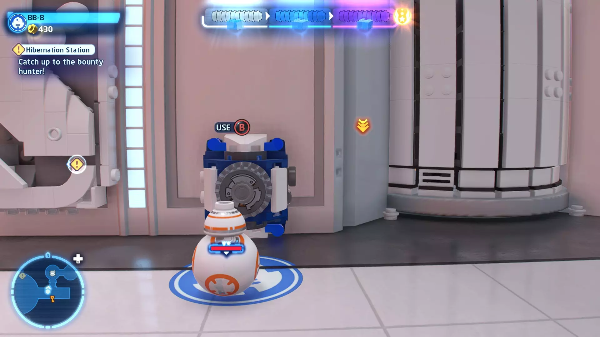 等级1(5个凯伯水晶):探测迷你套件和飞船 等级2(10个凯伯水晶):探测迷你套件、飞船和凯伯水晶 等级3(15个凯伯水晶):探测迷你套件、飞船、凯伯水晶和数据卡 吸引 studs:从更远的地方收集 studs