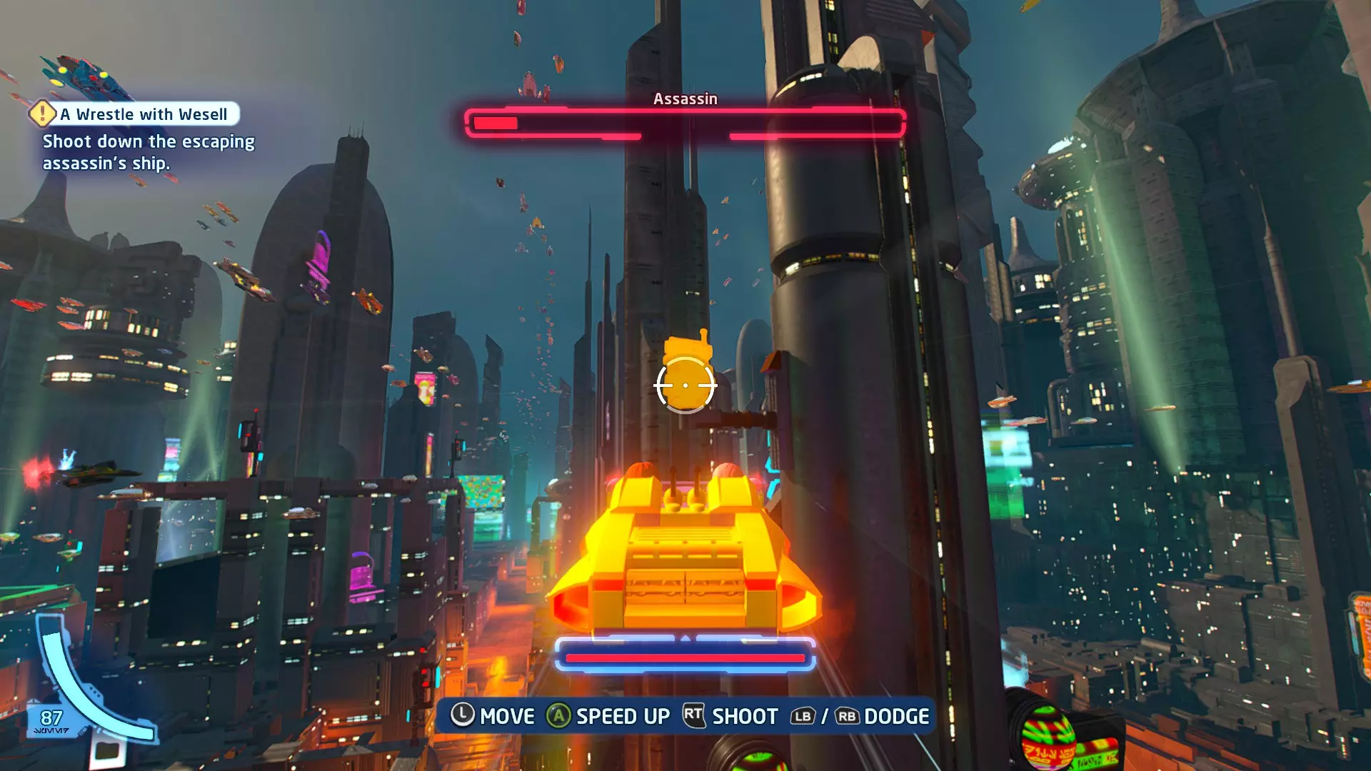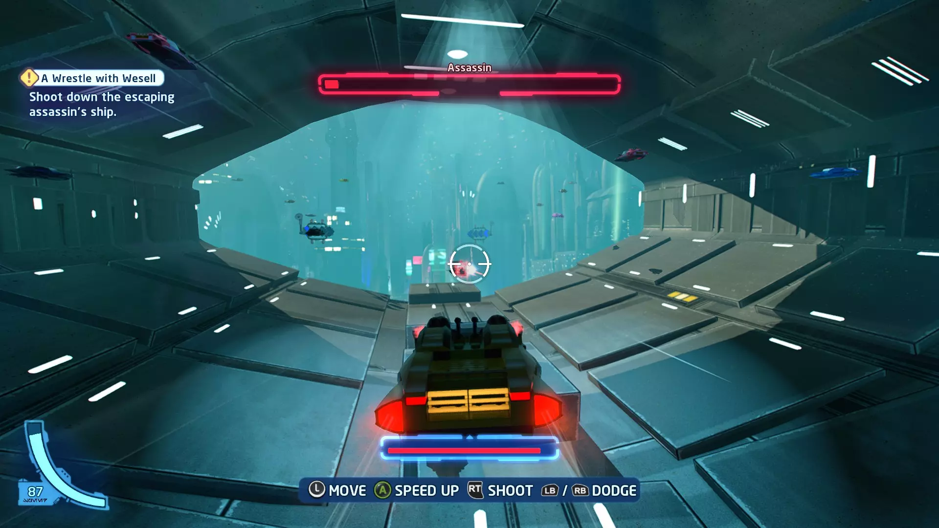 这个迷你套件出现在黄色泡泡中。射击它即可收集。 微型飞船:贸易联盟战舰(微型) 一条更大的鱼 - 关卡挑战 挑战1 - 这太疯狂了 详情:连续躲避3次奥皮海洋杀手的攻击