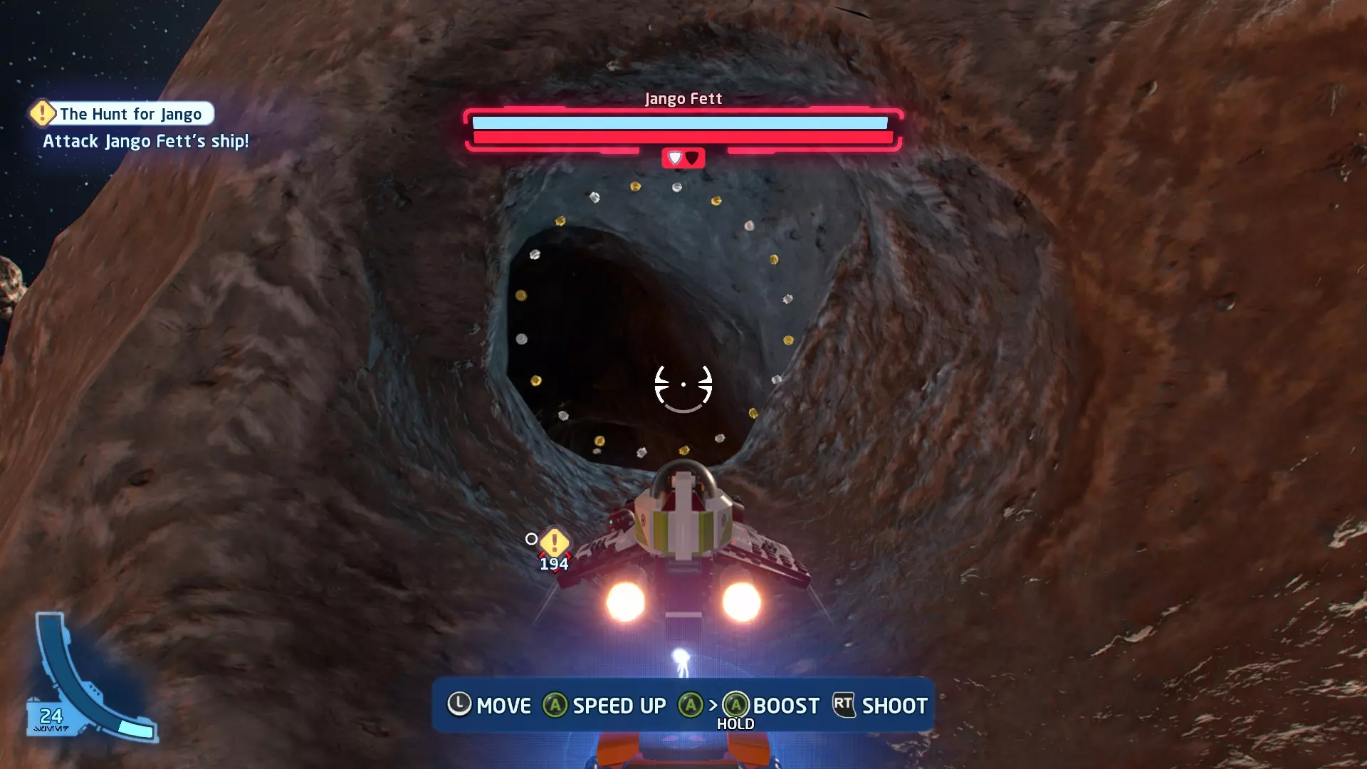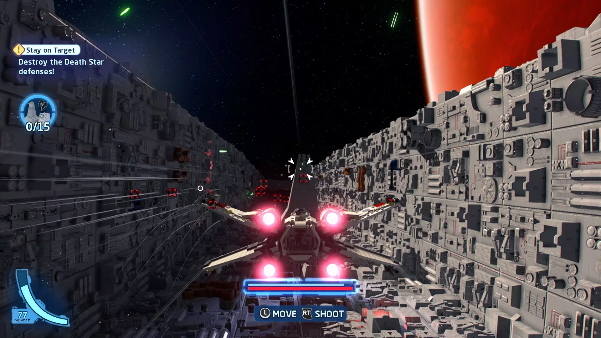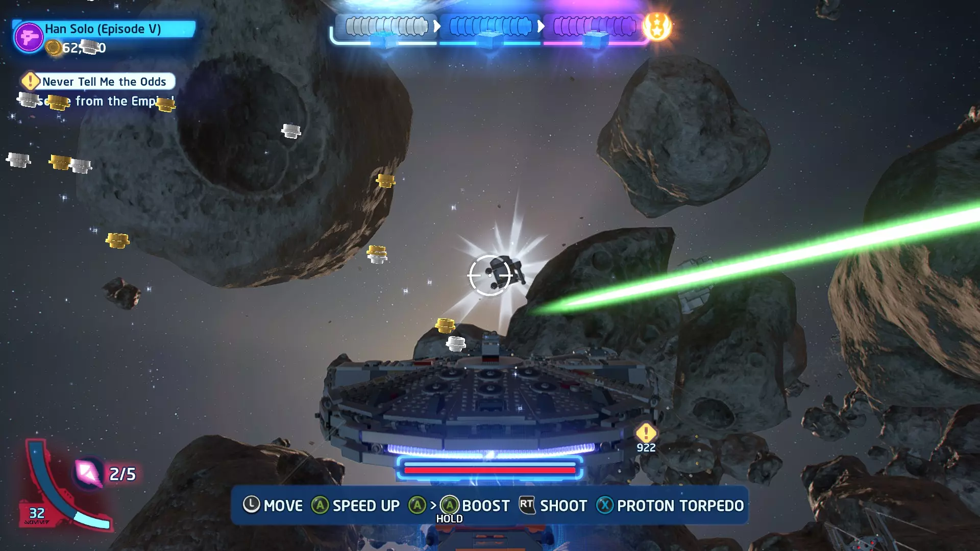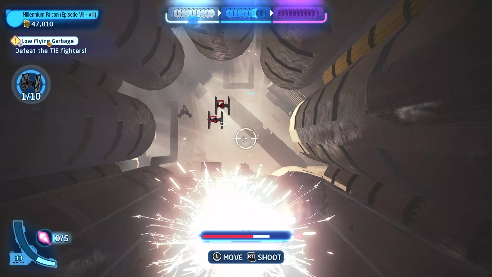 当你飞过隧道时,一架TIE战斗机会飞到你前方,携带【迷你套件】。摧毁TIE战斗机即可收集它。 迷你套件4 - 蒸汽启动!