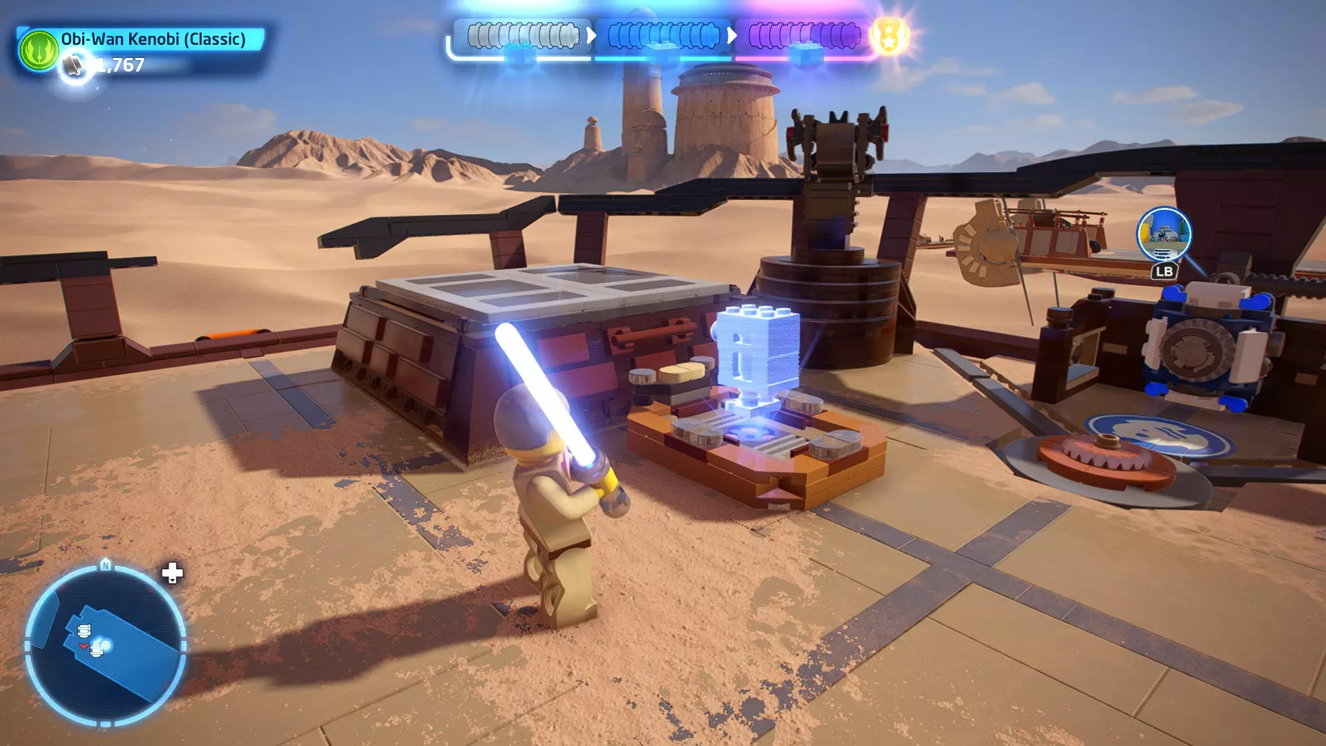 收集一定数量的 studs( studs 为游戏内收集物“积木”)将使你获得真绝地武士状态。与前作不同,本作中有三个不同的真绝地武士等级,完成每个等级都能获得一块凯伯水晶。填满银色进度条可获得一块凯伯水晶,填满蓝色进度条可获得第二块,填满紫色进度条可获得第三块。 迷你套件