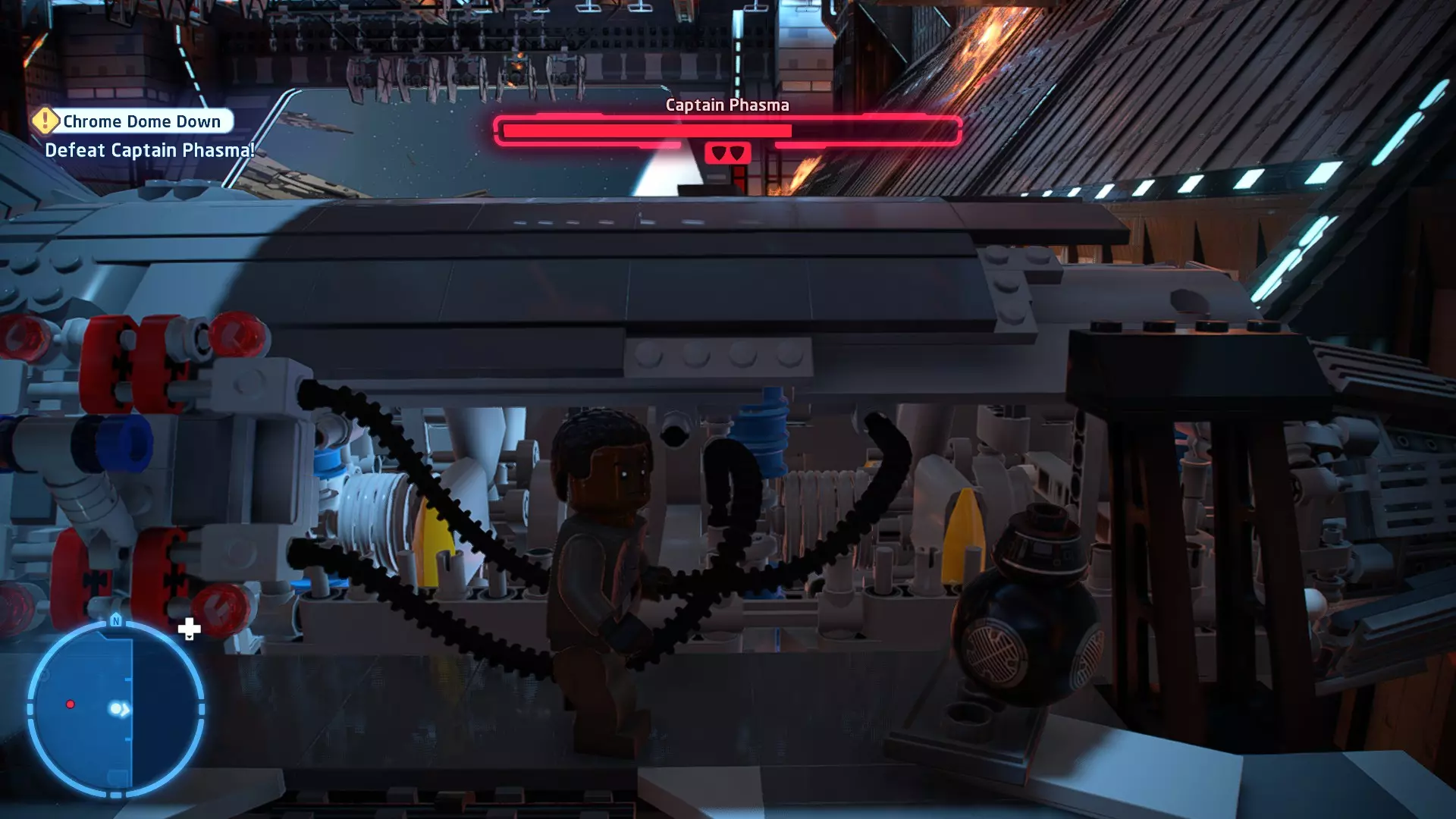 第二个机器人可以在法斯马队长战斗的第二阶段找到。在法斯马左侧的架子上,你会发现一架损坏的TIE战斗机。走上台阶到达架子顶部,就能找到第二个机器人。