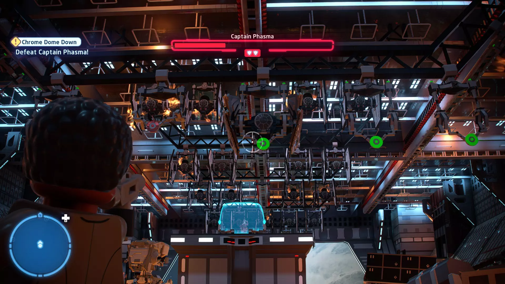 在与法斯马队长战斗的第一阶段,钛战机将沿着头顶的传送带移动。等待钛截击机出现,当它飞到法斯马上方时,射击其下方的绿色目标。 挑战2 - 法斯马真棒! 详情:用9种独特方式对法斯马队长造成伤害