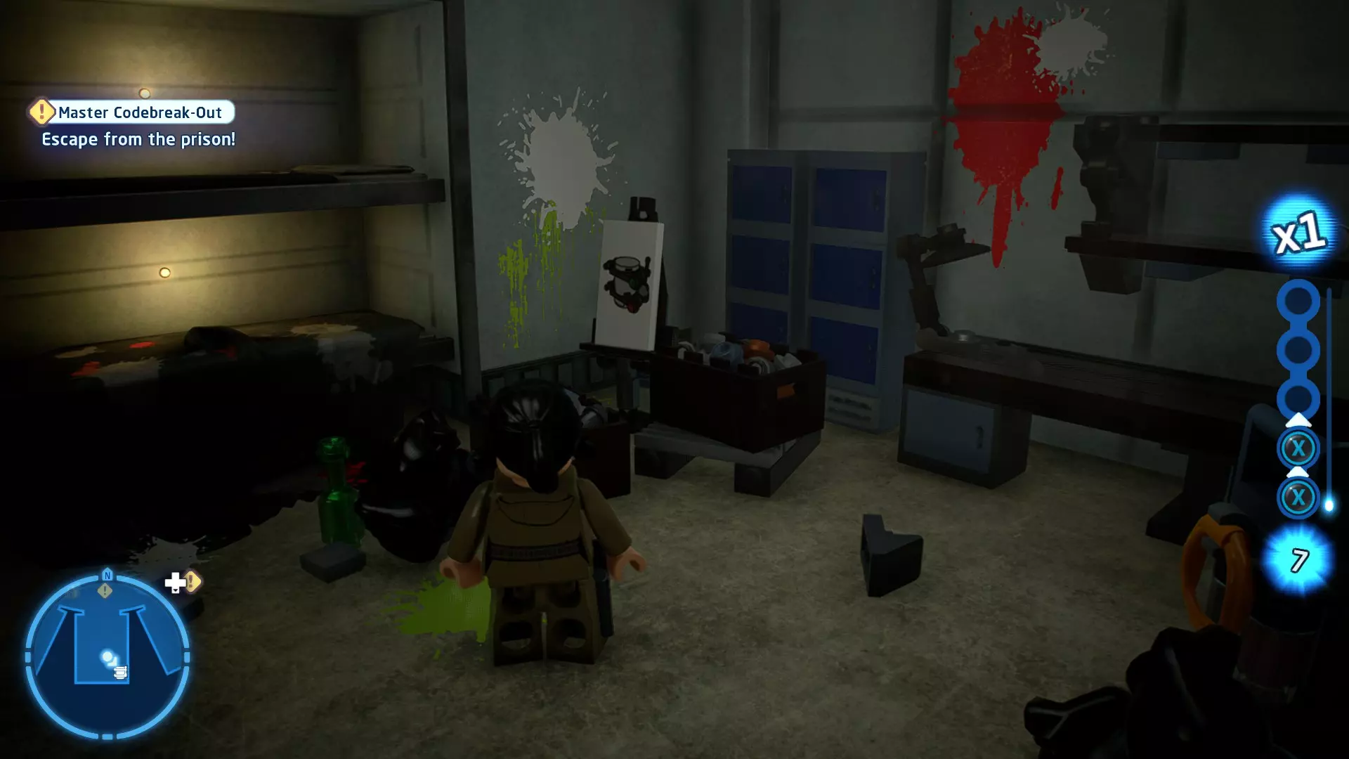 要完成此挑战,请使用【清空庭院】方法(参见故事模式)前往巴布的工坊。如果遇到困难,在自由游玩模式中使用反派角色会更容易完成。 挑战3 - 正中靶心 详情:用爆能枪摧毁UA-TT的探照灯