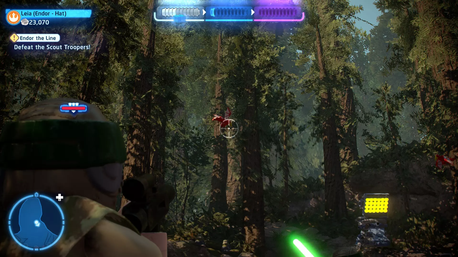 拥有此能力的角色可以进行远程攻击。你最常使用此能力来击中圆形白色目标,但只要在射程内,你可以远程摧毁大多数物体。光剑也可以投掷并用于击中目标,但爆能枪的射程要远得多。 角色职业:绝地、英雄、无赖、赏金猎人、黑暗面、反派 小型