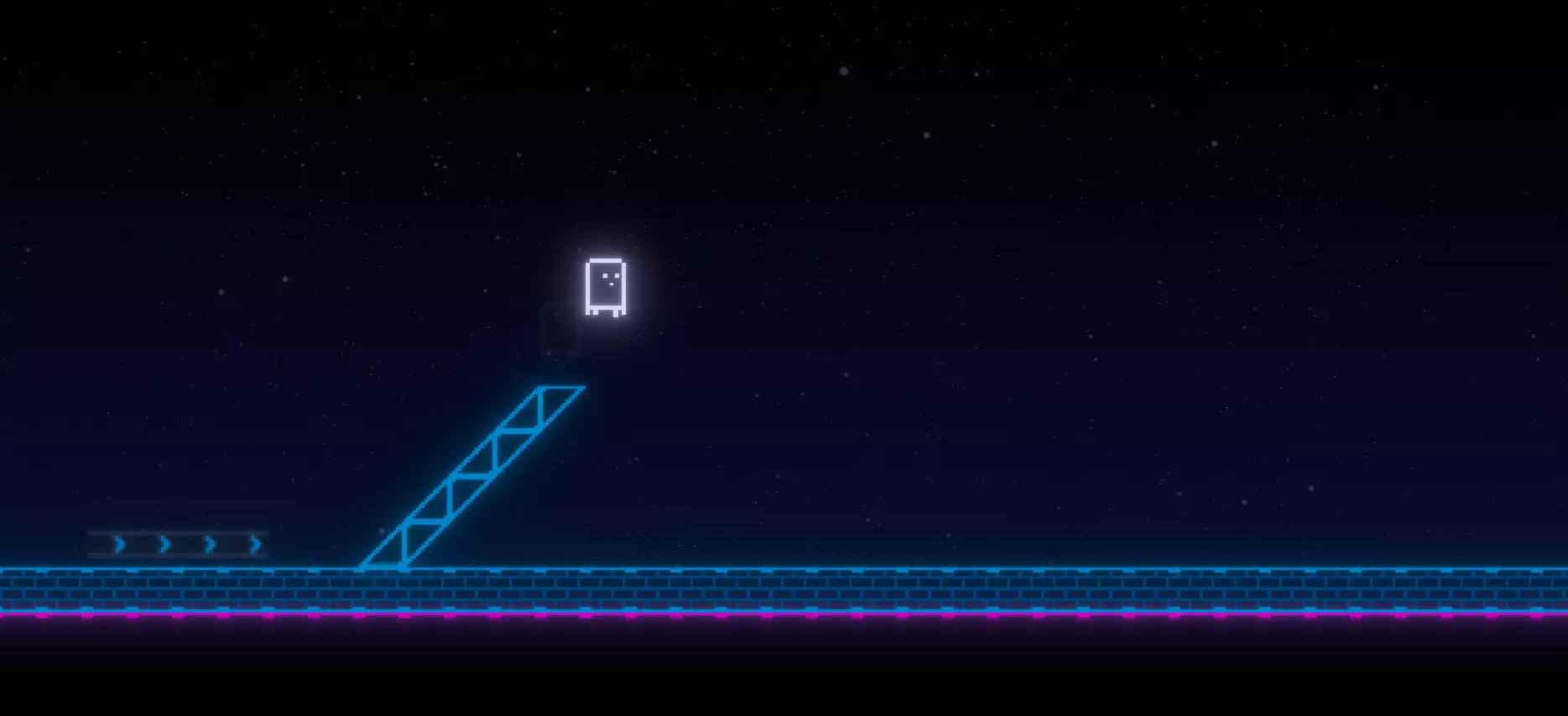 【通用地砖】斜坡 尽管斜坡可归为基础建造地砖类别,但在此我想特别提及它们。毕竟,斜坡是encrypt游戏玩法中非常重要的一部分。 地砖信息 层级:基础地砖 可交互:否 可旋转:是 对玩家造成伤害?否 不透明度:100% 为什么斜坡如此特别?其实从名称中就能看出。但斜坡并非一开始就被设计为斜坡。实际上,它们最初只是用于圆角处理。当然,现在你仍然可以这样使用,但在开发早期我们就发现,将其用于跳跃能极大地丰富游戏玩法。因此,我们保留了这个想法。现在几乎没有关卡不使用这种游戏机制,所以你最好知道如何运用它。 如何正确使用斜坡?斜坡越长,产生的潜在跳跃就越长、越快。 不过,这至少在大约3个斜坡的情况下是成立的,超过这个数量后,你通常会达到最大速度和跳跃高度。 在斜坡末端以最大速度尽可能远地起跳,就能实现最高的跳跃。 所以你要做的是:至少进行1单位的助跑,并尽可能晚地起跳。如果起跳太晚,你会从斜坡后方掉下去;如果起跳太早,你就无法跳得那么高和远。