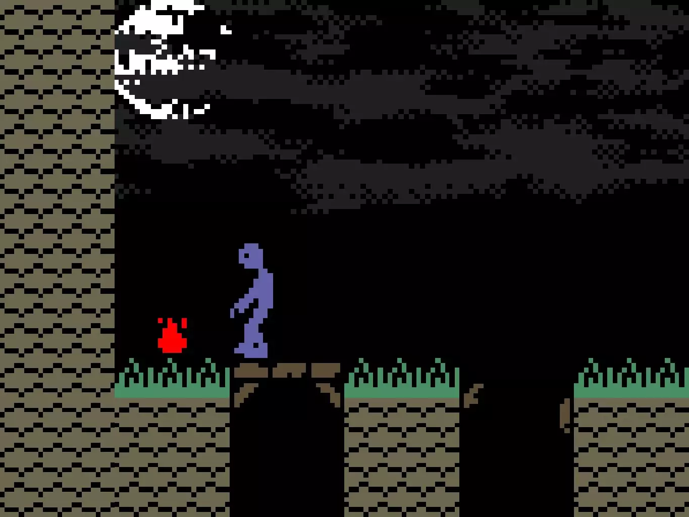 你需要跨过一个深坑。拿起火焰,然后向右返回。拿起火焰后切勿按空格键!!!