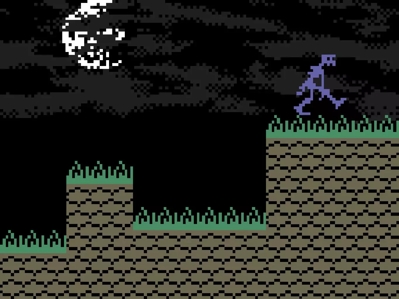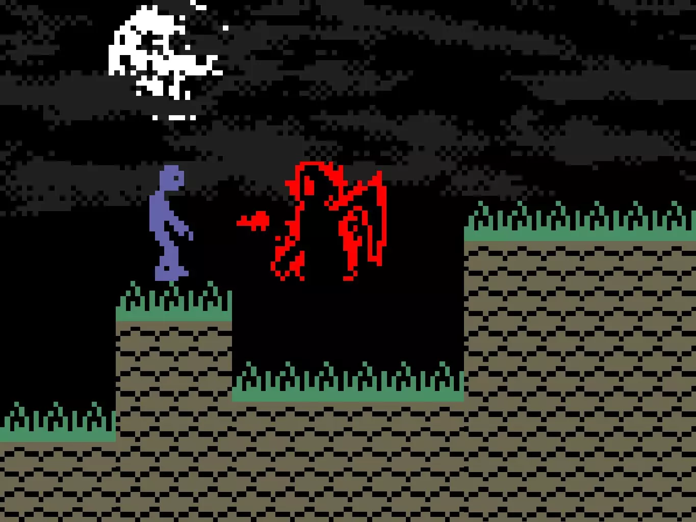 第二个 Boss 一直向右走,直到遇到第二个 Boss。当你进入画面后,他就会向你移动。跳到草地上的柱子上。当他与你处于同一水平位置时,向他发射三团火焰。