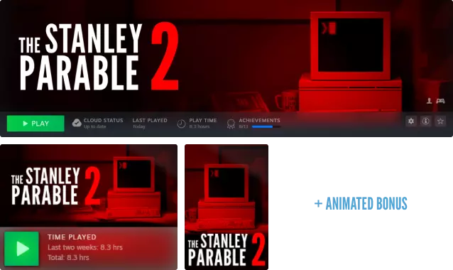 Steam 游戏封面图? 在我收集纹理素材时,我觉得可以制作一些 Steam 游戏封面图。既然如此,何乐而不为呢? 特别感谢那位提供菜单背景视频的人。