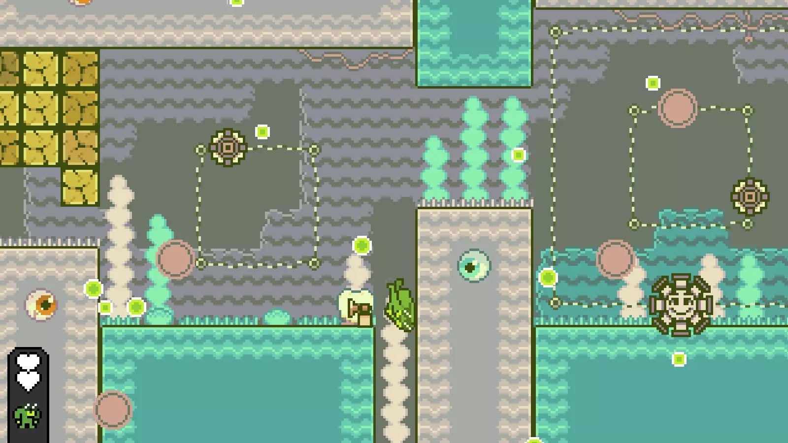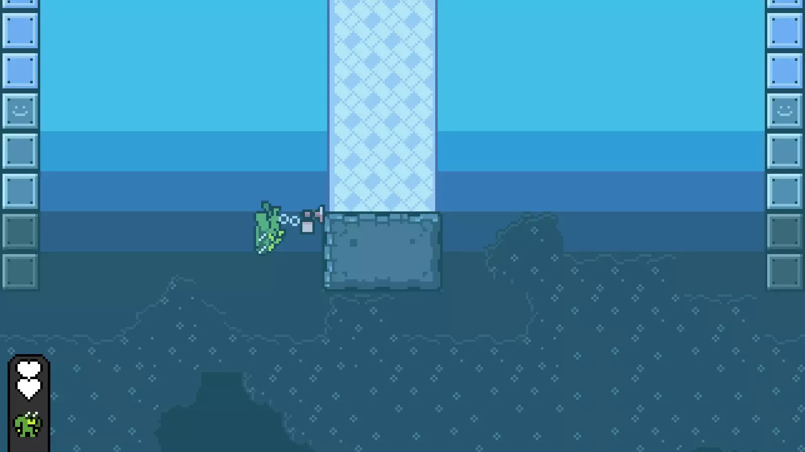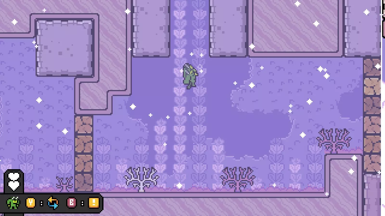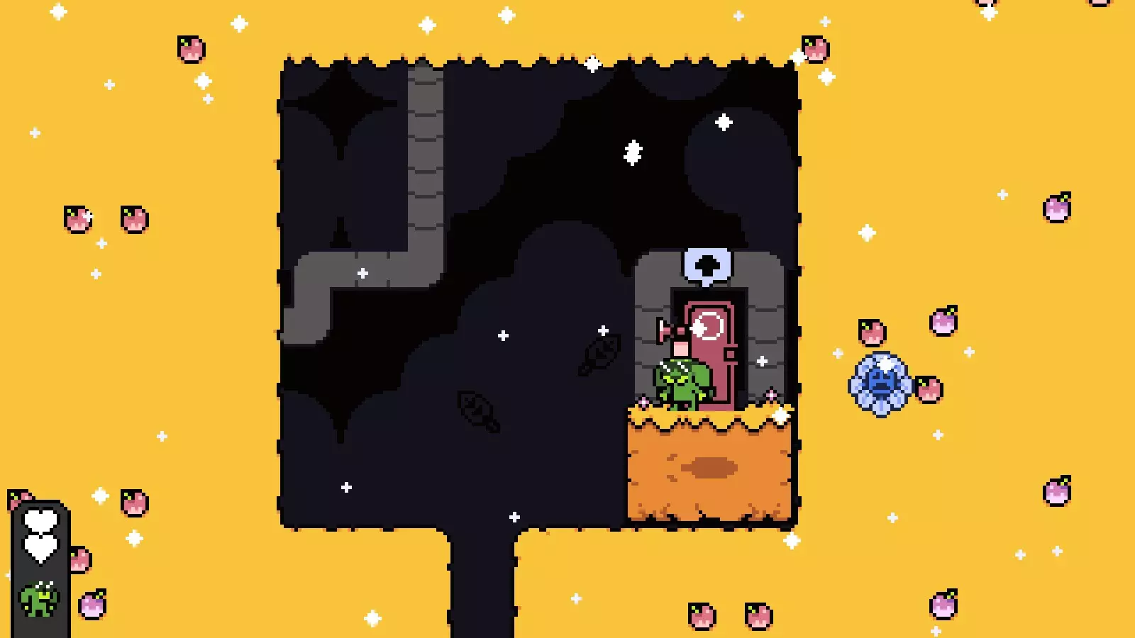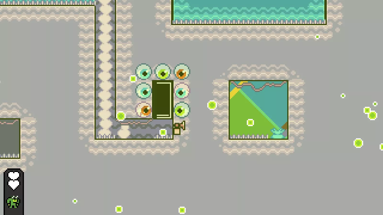 温暖湖泊: 前往第六个房间,经过笑脸先生后,找到一个向下的1格宽洞穴。