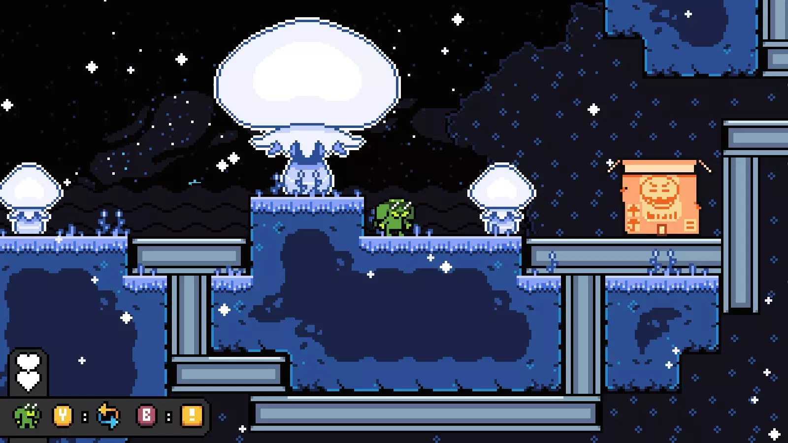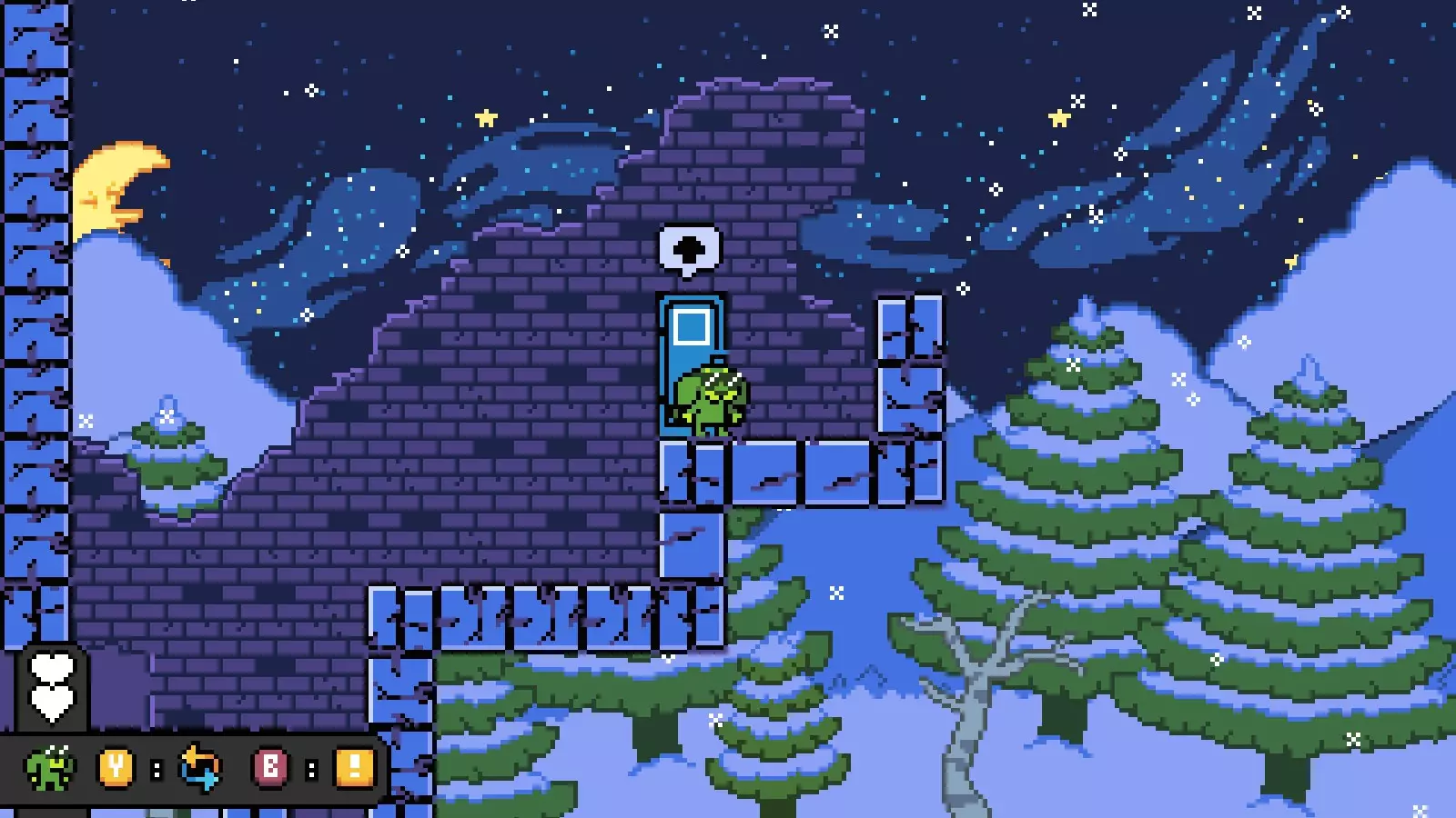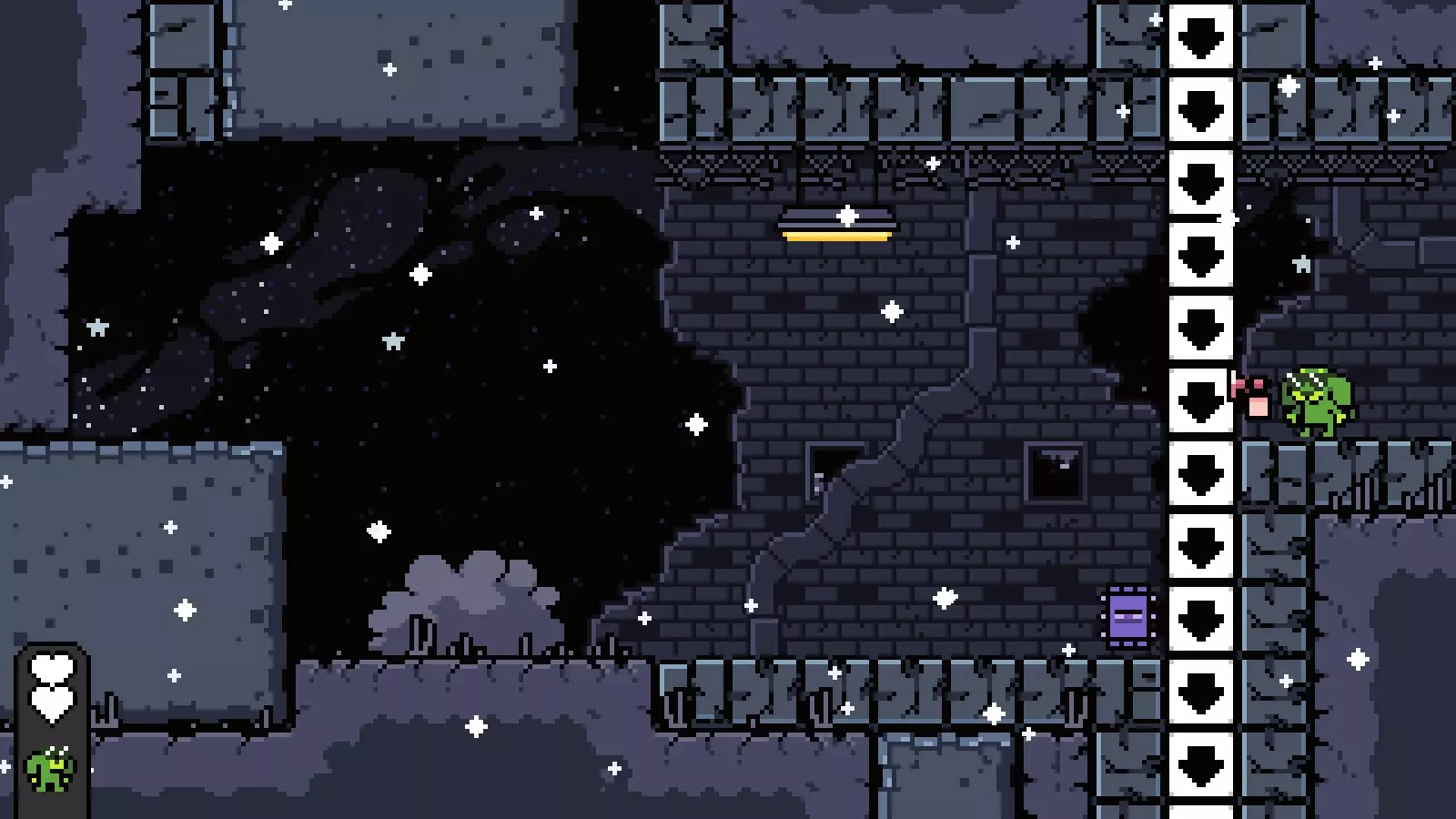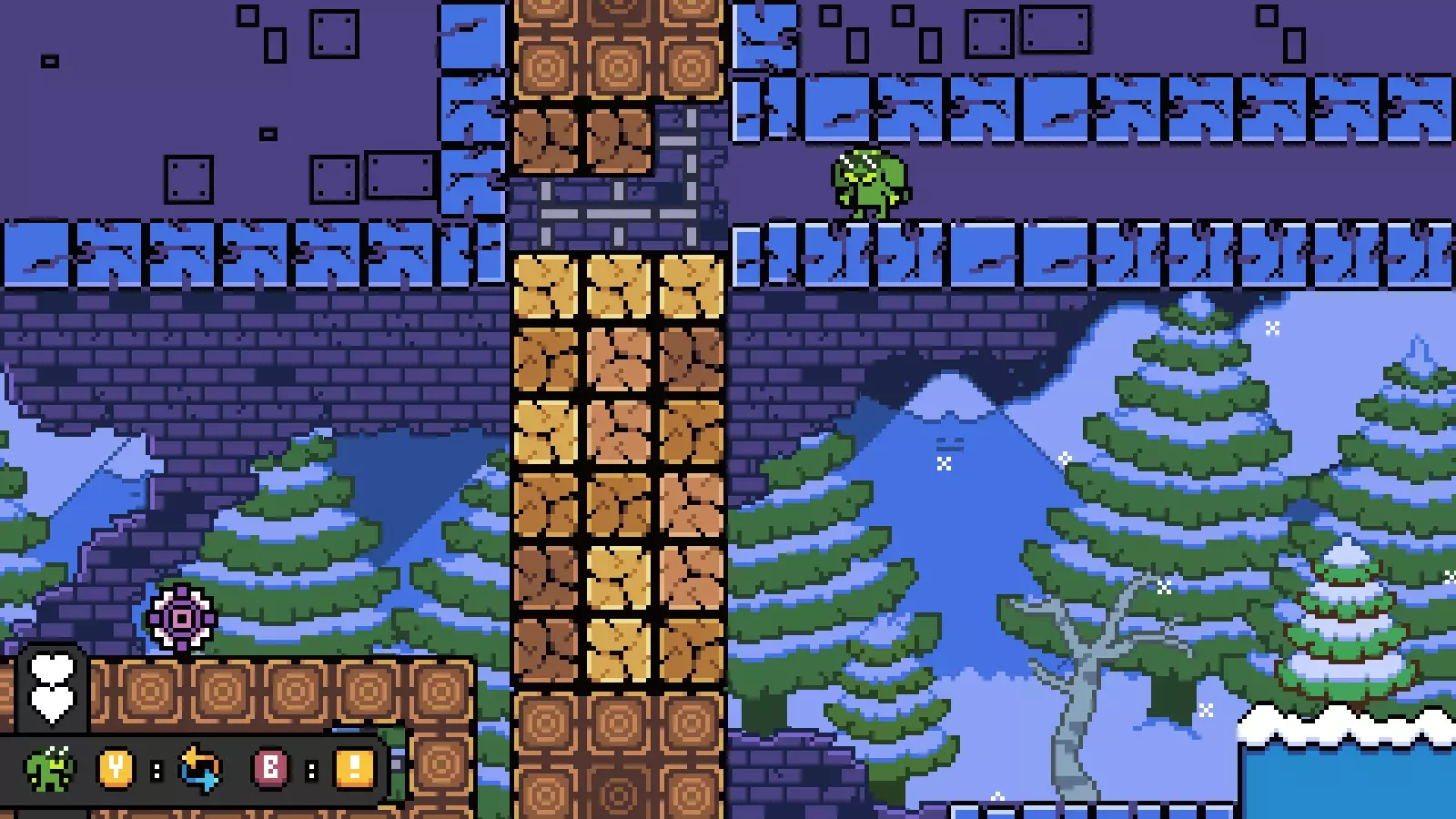 然后向右走进入下一个房间,爬上一些可破坏的方块,到达宝箱所在位置的上方。