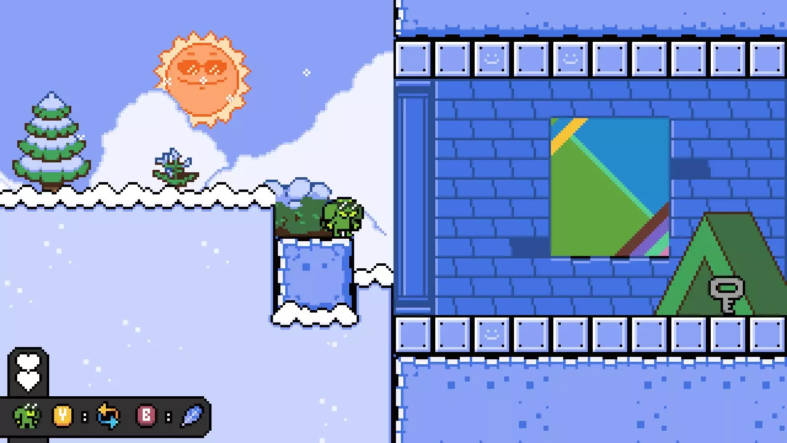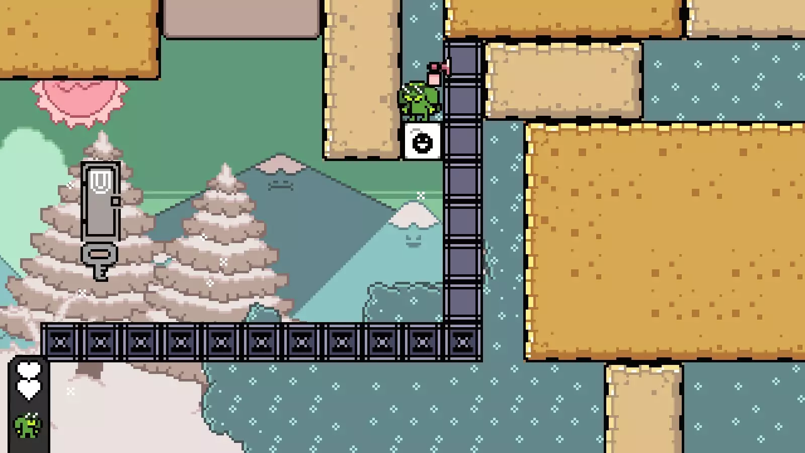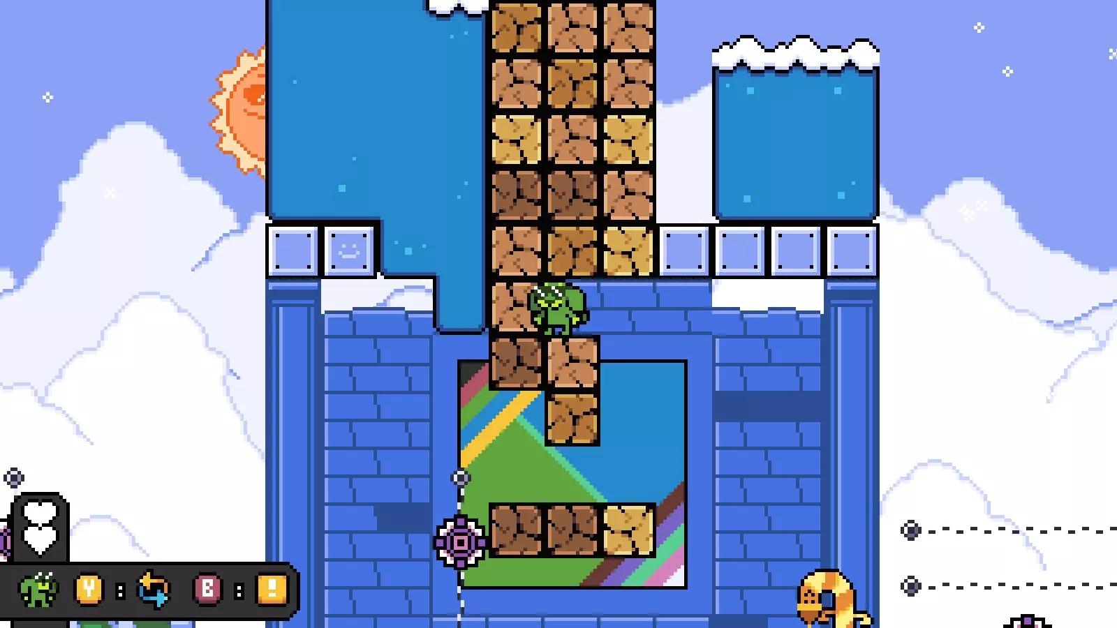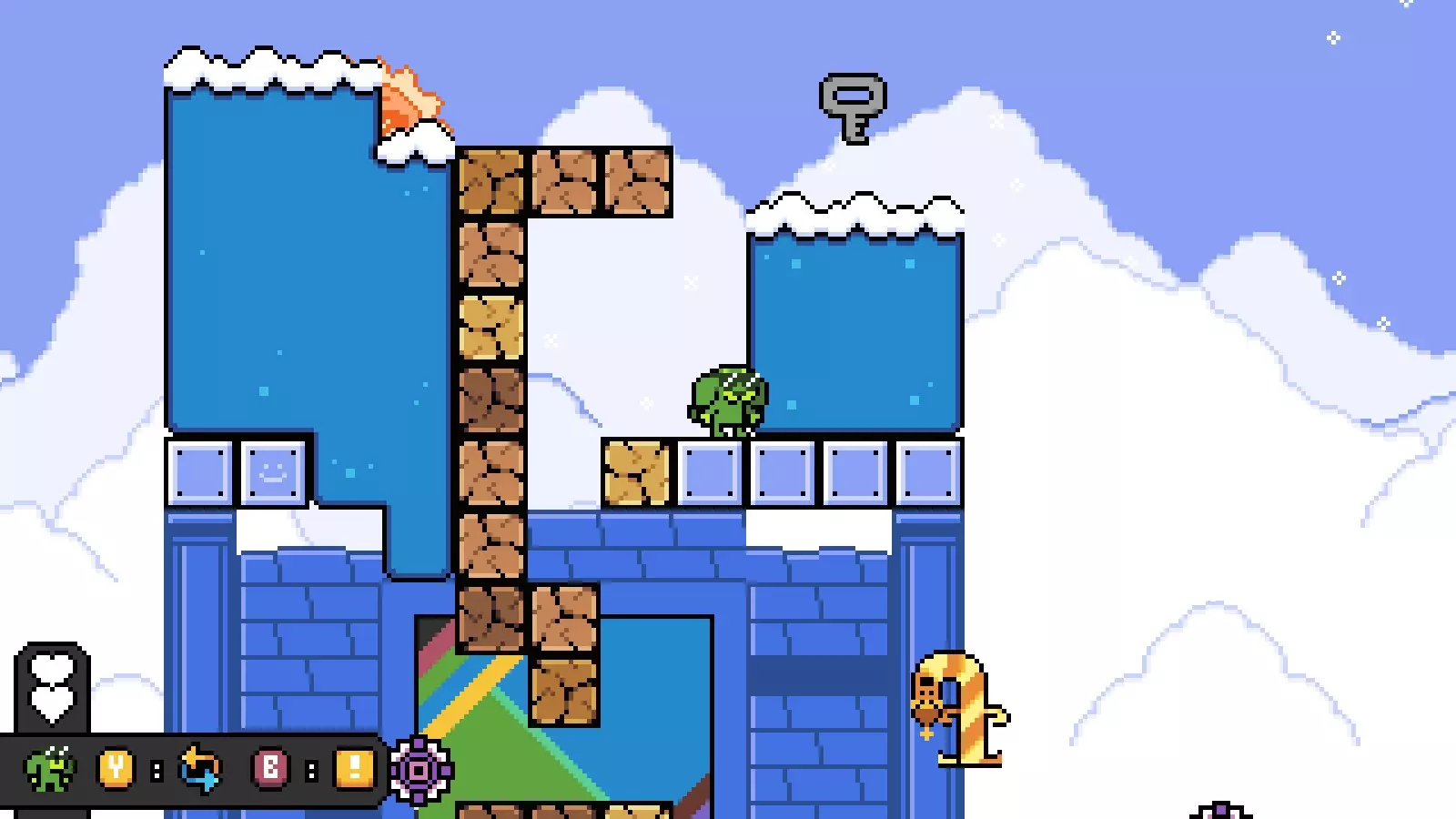 然后向右走,直到看到钥匙,击败它并打败洛基/通过该关卡,以获得通往【禁止穿鞋、禁止赤膊、禁止入内】的路径。 世界2/高山 没有关卡需要任何能力。 移动桥梁: 在第一个房间,前往可破坏方块塔并到达它们的顶部。