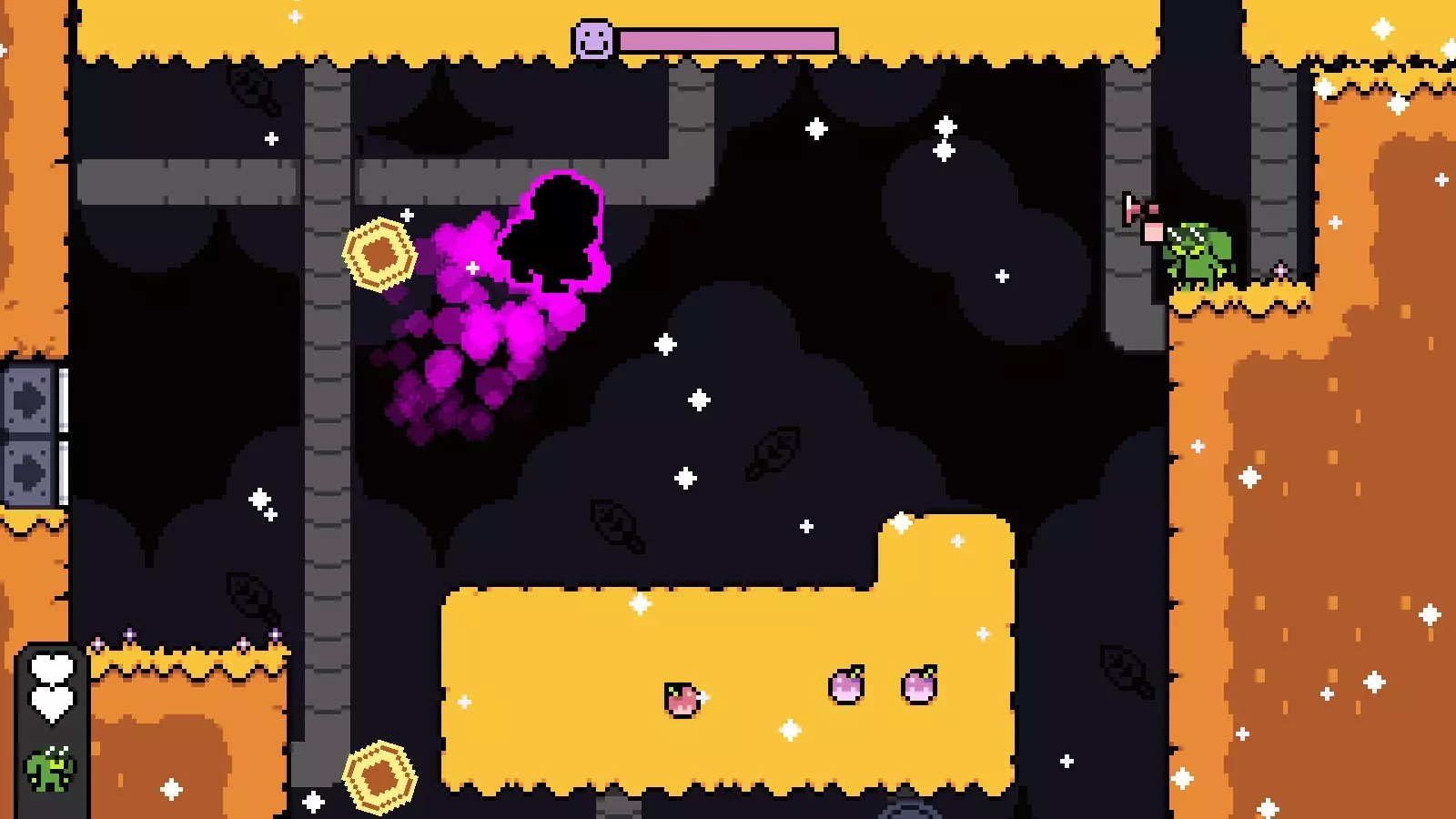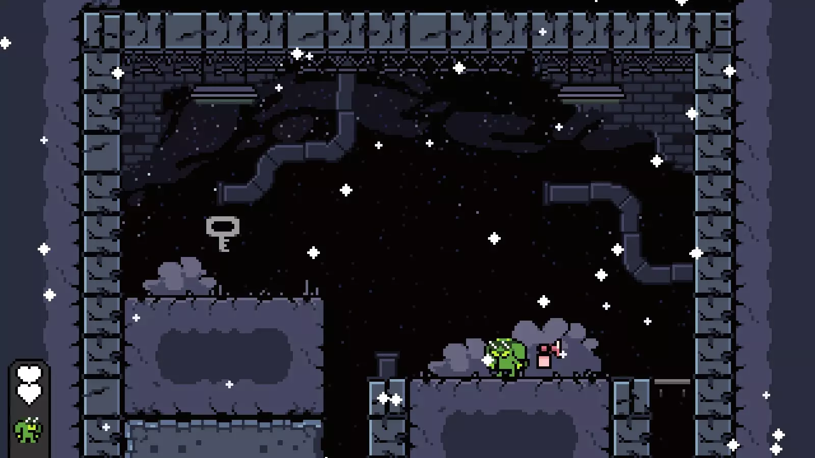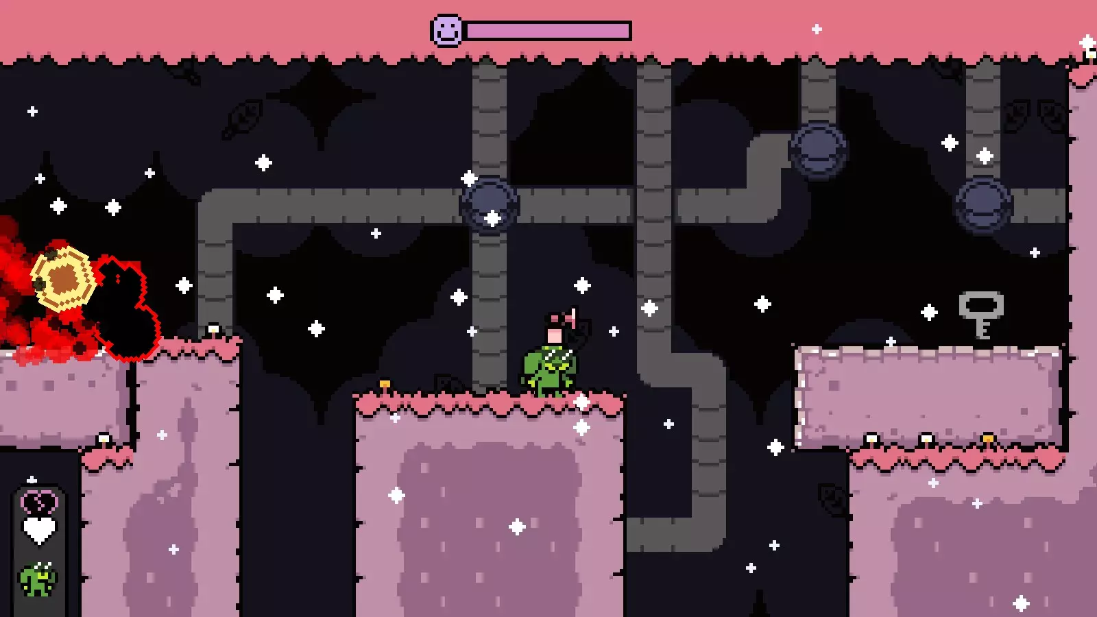 然后穿过左边的洞,向上进入下一个房间,接着击败钥匙即可通过该关卡。