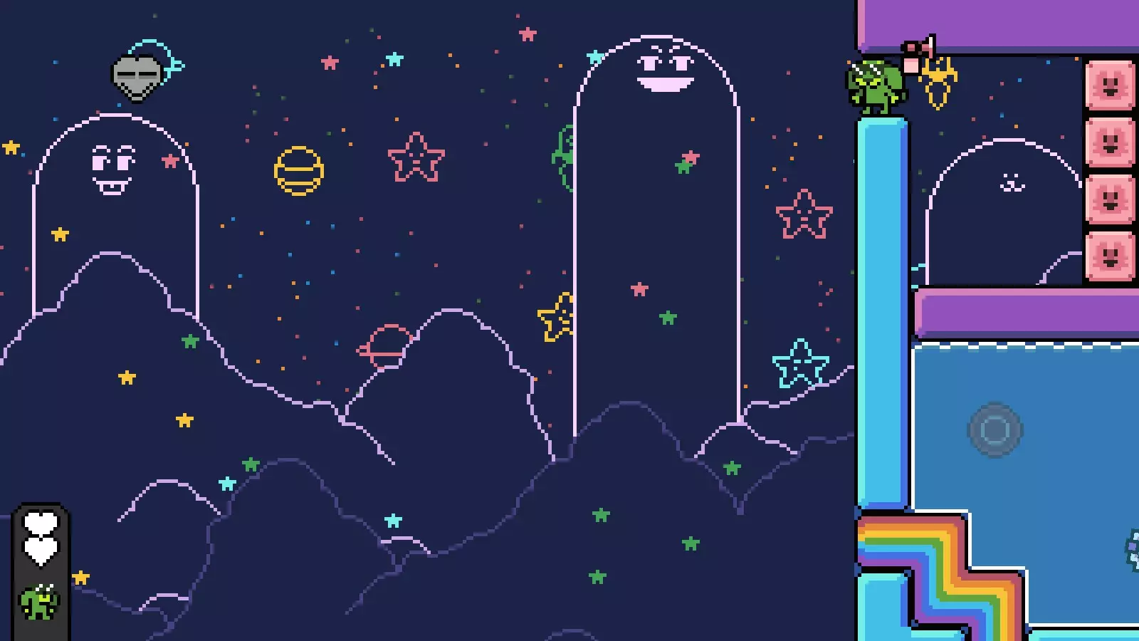 然后带着心形物品通关该关卡,你将获得【Billi' Ocean】和【Secret Exit】的钥匙。 方块需要你: 从出生点向左走,穿过隐形平台。