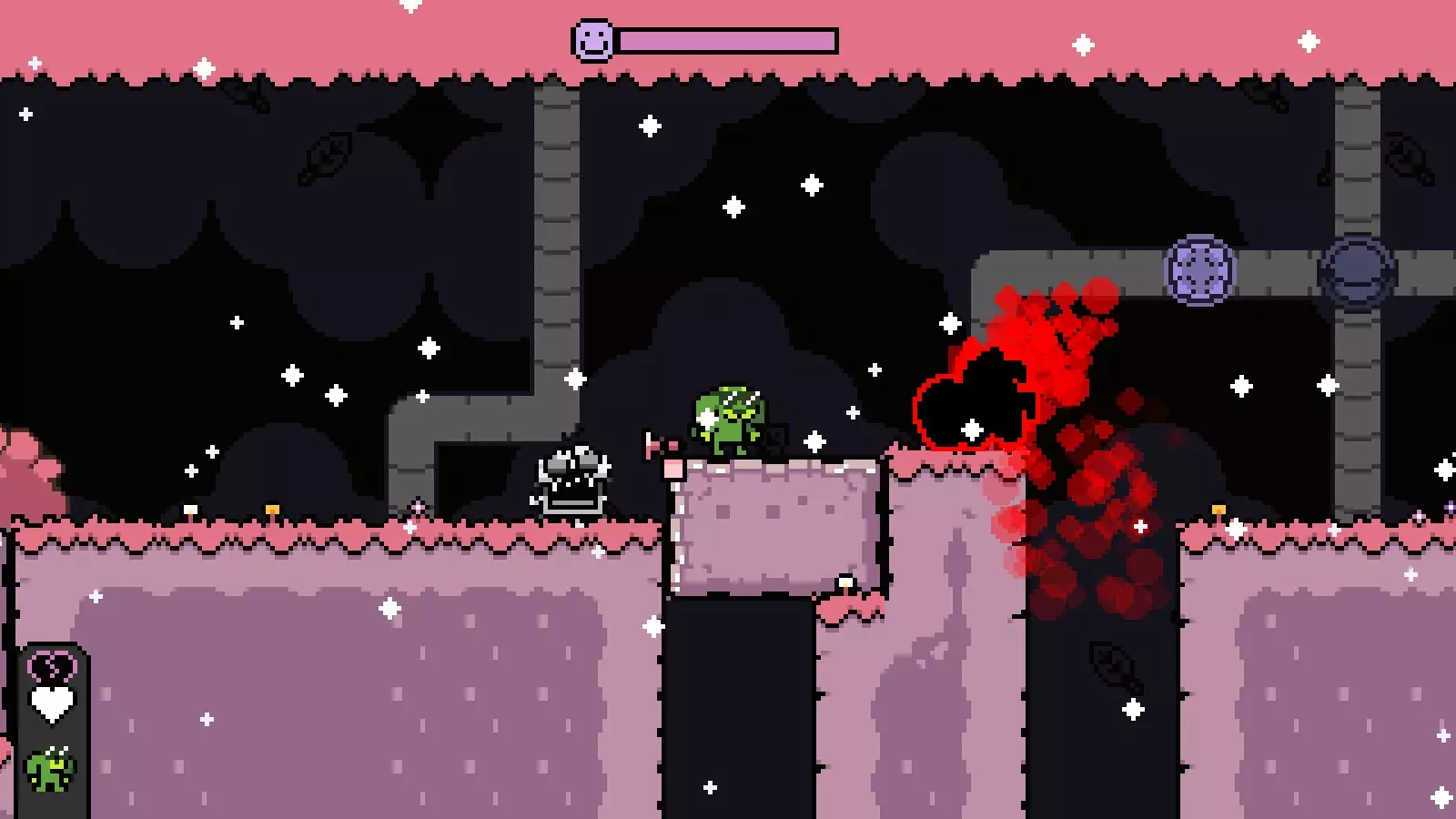击败它和小Boss以达成【Dude, What's your Problem?】成就。 放弃: 需要弹跳和跳跃能力。(我认为) 在关卡开始时,你需要从猫身上弹跳。