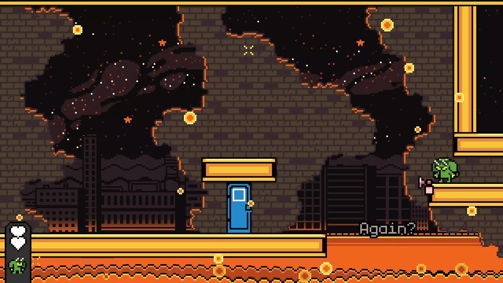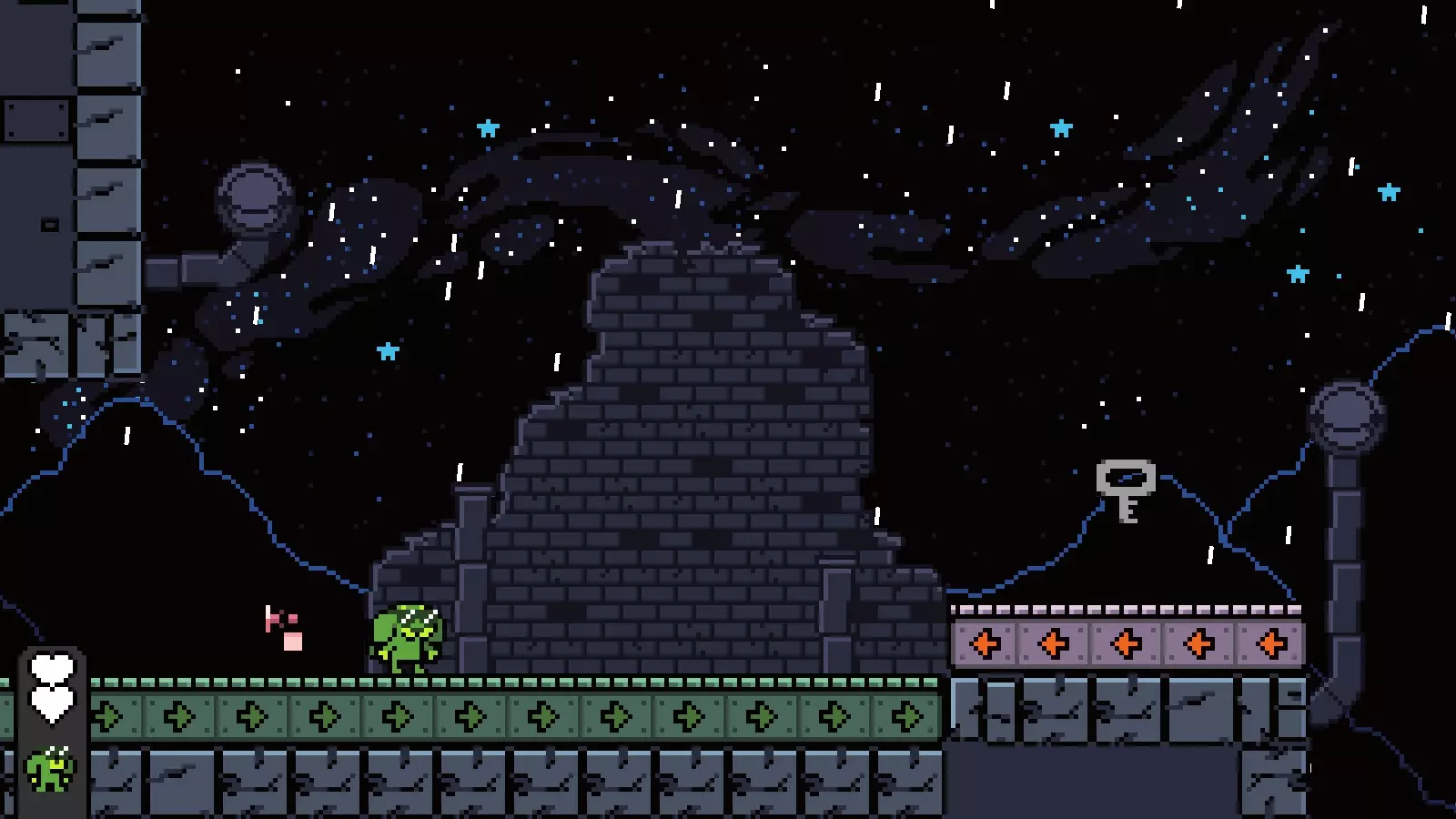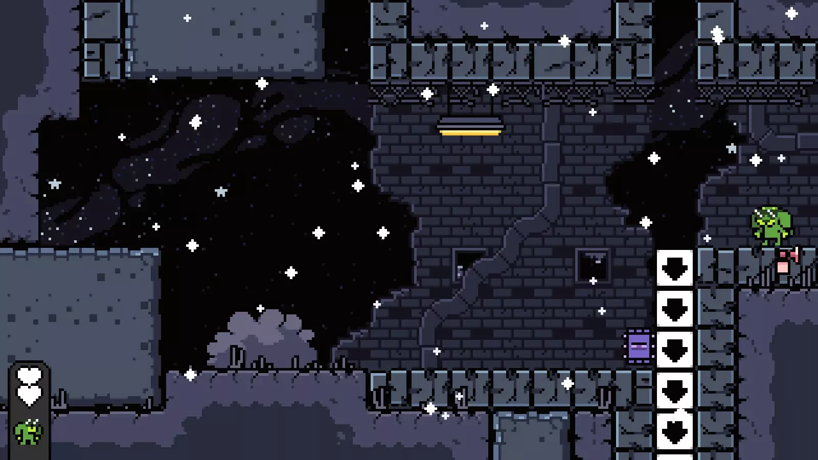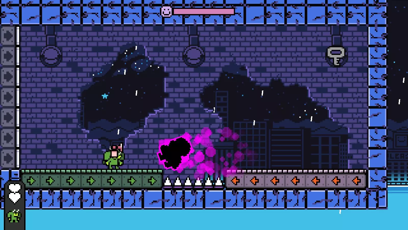 最后你需要跳上屏幕左上角的小平台,然后进入下一个有钥匙的房间。击败钥匙并完成该关卡,即可前往【Going Down】。