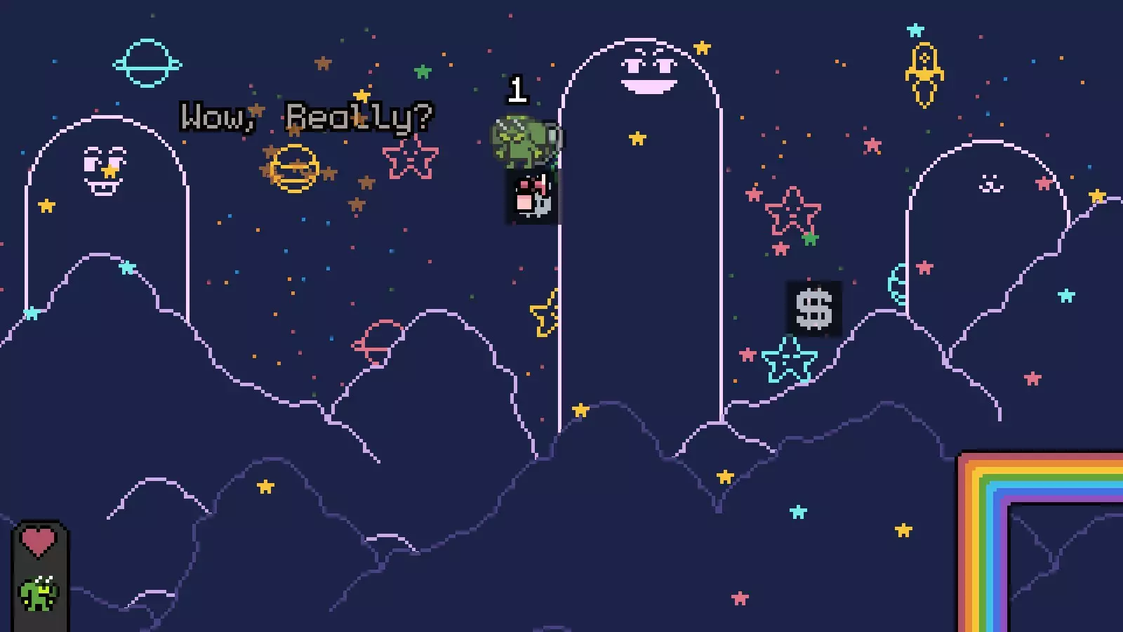 击败钥匙并战胜小Boss以解锁【Dude, Your Attitude Sucks】 自然真美: 需要【漂浮】或【跳跃】(我认为)来获取其他房间的金币,或许还需要用它们来触及钥匙。 前往有小Boss的最终房间,然后一直向右走。