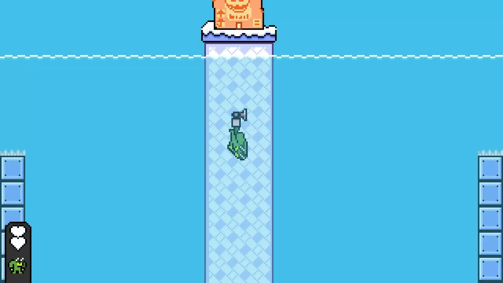 然后击败关键目标并通关以解锁【漂浮之水】。 漂浮之水: 前往第四个房间,看到笑脸先生后继续前进一小段,找到向上通往宝箱的两格宽洞口。
