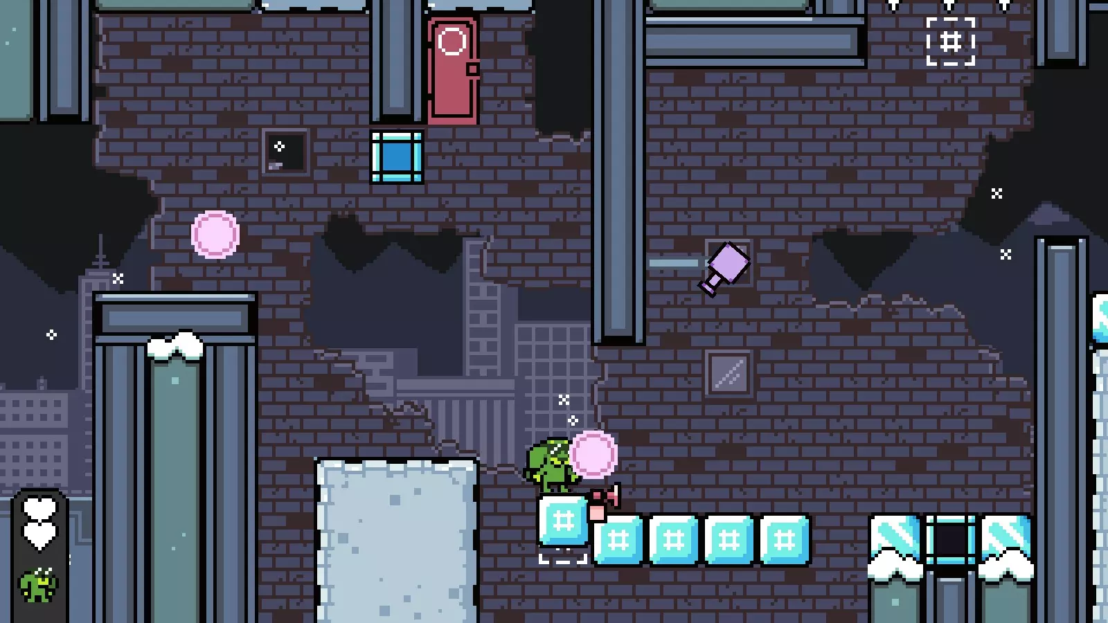 《死亡之土》:前往第三个房间并激活红门下方的冰块。站在离门最近的冰块上,当冰块与门处于同一水平高度时,向上跳入1格宽的洞口。