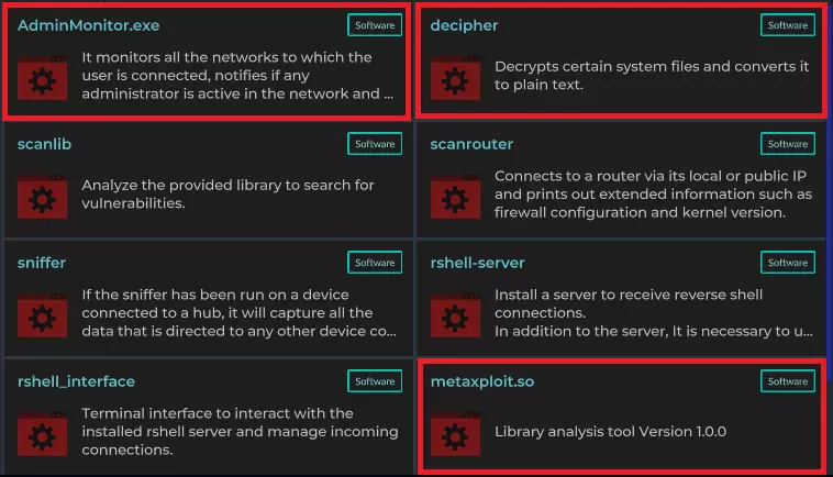 确保保存此IP。访问时,前往工具并获取AdminMonitor.exe、decipher和metaxploit.so的副本。AdminMonitor应保存至/usr/bin,decipher保存至/bin,metaxploit.so保存至/lib。