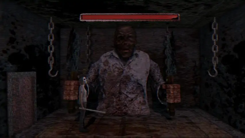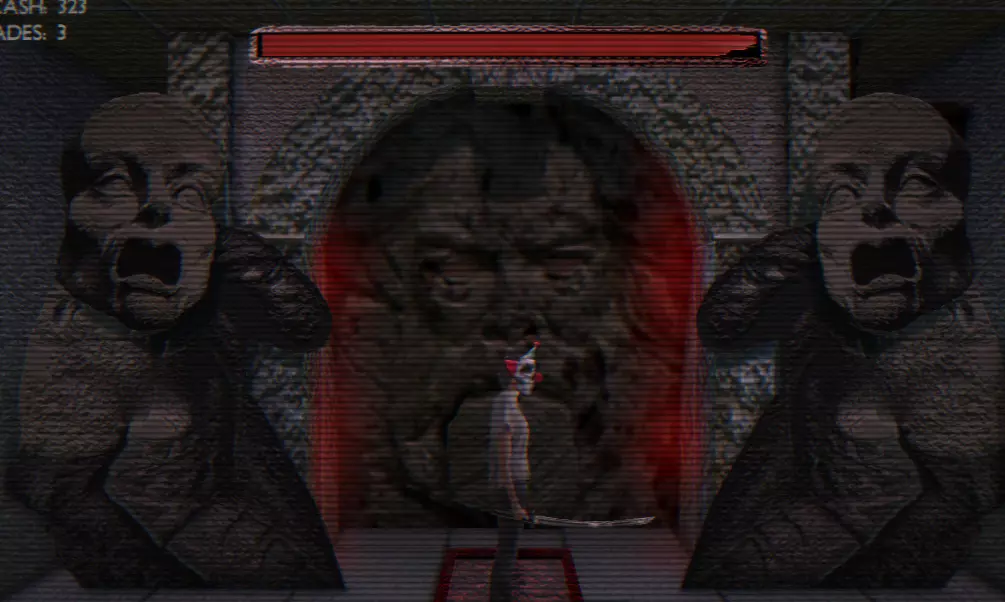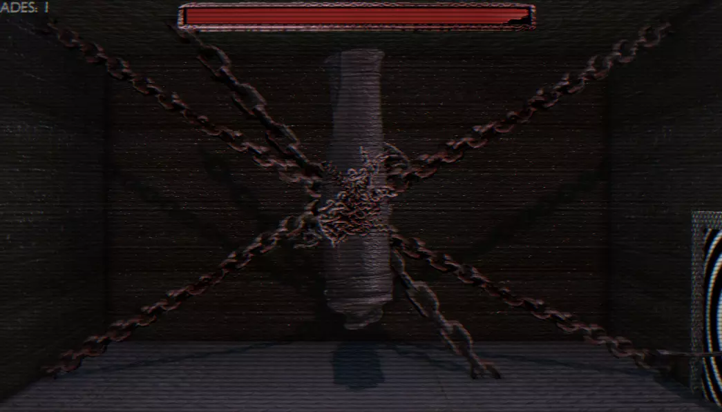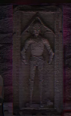 【大门】由两尊雕像和中间一张巨大的脸组成,这张脸会不断喷出对你造成伤害的血液,你必须左右闪避。我不确定这种情况是否一直发生,但我在屏幕上看到过【干扰】字样弹出,并且在与 Boss 战斗时,有一个无头电锯男会追着我。不确定这是否只针对 Boss 出现,还是可能在任何时候随机发生。 【巨型头骨】