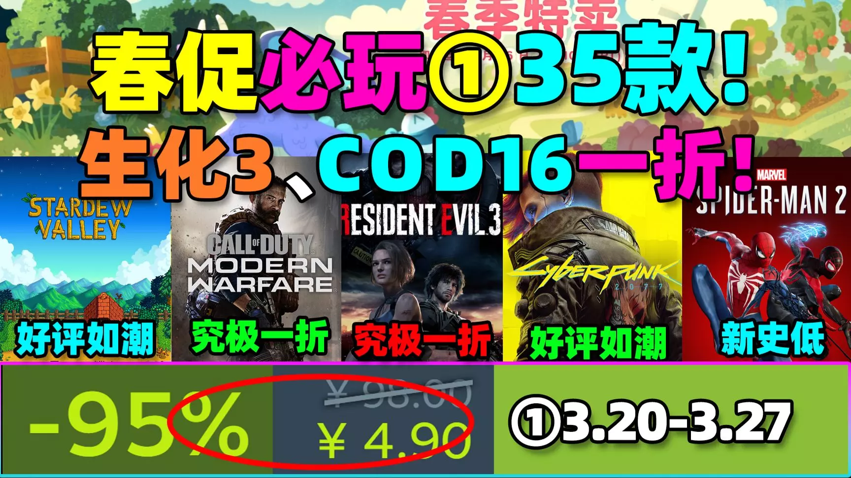 震撼春促!!!《生化3》《使命召唤16》《漫漫长夜》一折核爆拉满!Steam春促必玩35款新史低/史低游戏!超级大厂打破祖宗之法!蜘蛛侠、消光、寂静岭通通都有!
