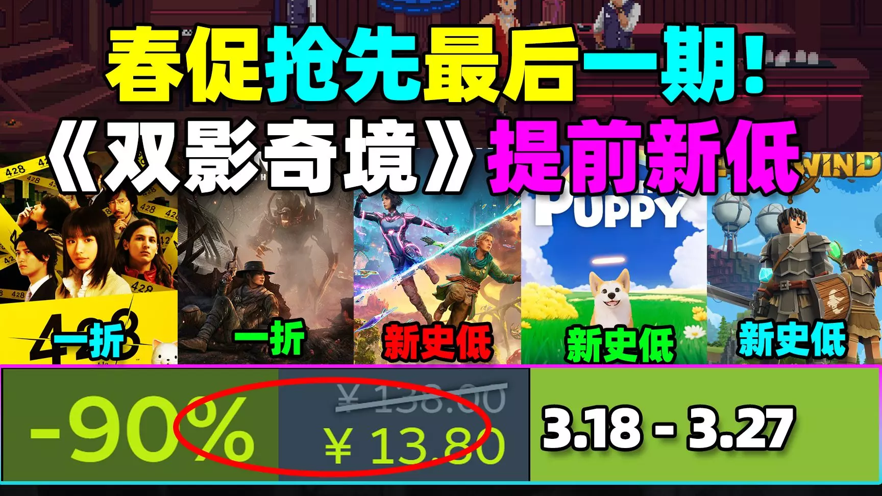 春促前最后一期!!!这款十几万评价依旧好评如潮的神作新低啦!还有两款一折经典!Steam春促抢先16款新史低/史低游戏!《双影奇境》《堕落之主》都新低!