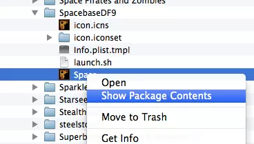 在SpacebaseDF9文件夹中,你会看到一个名为Space的新图标。右键点击它并选择显示包内容。