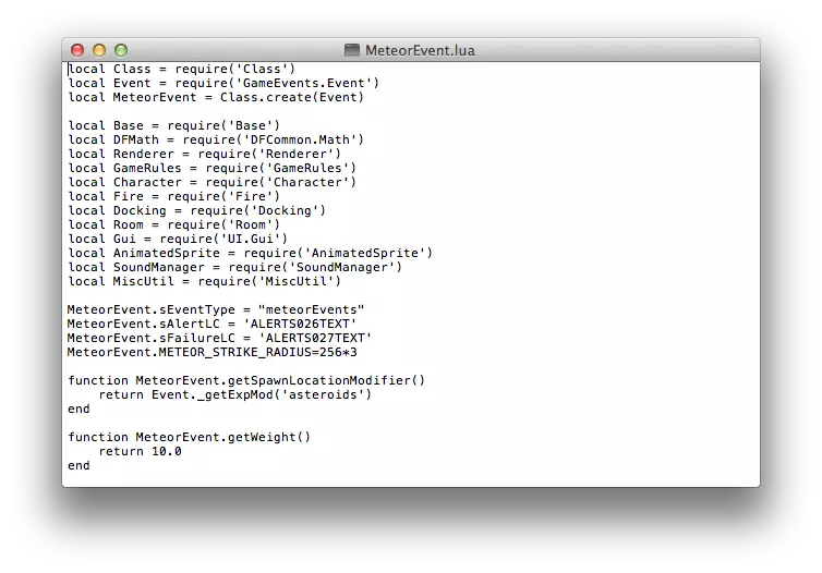 B. 编辑陨石事件脚本 使用文本编辑工具打开MeteorEvent.lua文件后显示如下内容: