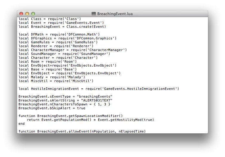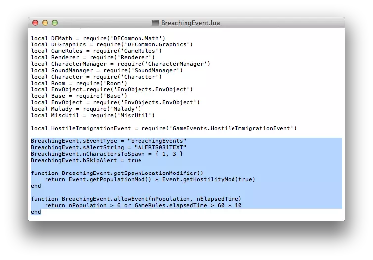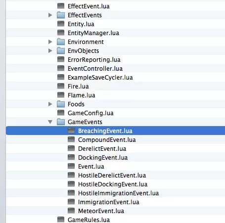 关闭窗口并运行游戏。 警告:当我调整这些设置时,殖民者加入的速度超过了我的回收器所能容纳的速度。我的氧气消耗得非常快,所以我建议要么在找到解决方法或替代方案(或者弄清楚到底发生了什么)之前不要调整回收器,要么逐渐接受新殖民者。分散布置你的回收器,建造更大的房间(如果你启用了额外初始物质的技巧),不要让殖民者在初始房间聚集太多(尽管这可能无法避免)。 延迟突袭者突破事件(BreachingEvent.lua) A. 找到BreachingEvent.lua文件 是不是厌倦了在你开始扩建基地时突袭者就出现?希望能暂时抵挡住他们,直到你有机会建立起合适的防御吗?没问题,稍作调整就能实现! 包含袭击者突破事件的脚本位于Scripts目录下的一个子文件夹中;找到GameEvents文件夹,然后选择BreachingEvent.lua文件即可。