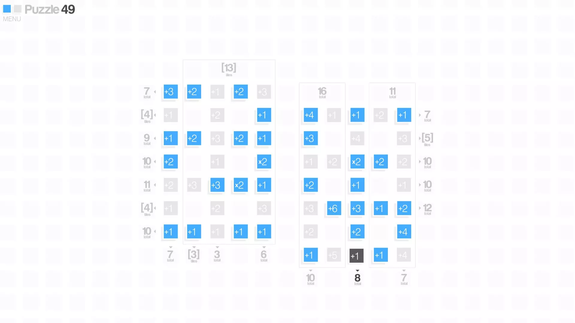 本指南将展示如何通关《CrossCells》的各个关卡。未点击/未高亮的方块是完成该关卡时你需要点击的最后一个方块。谜题1-10